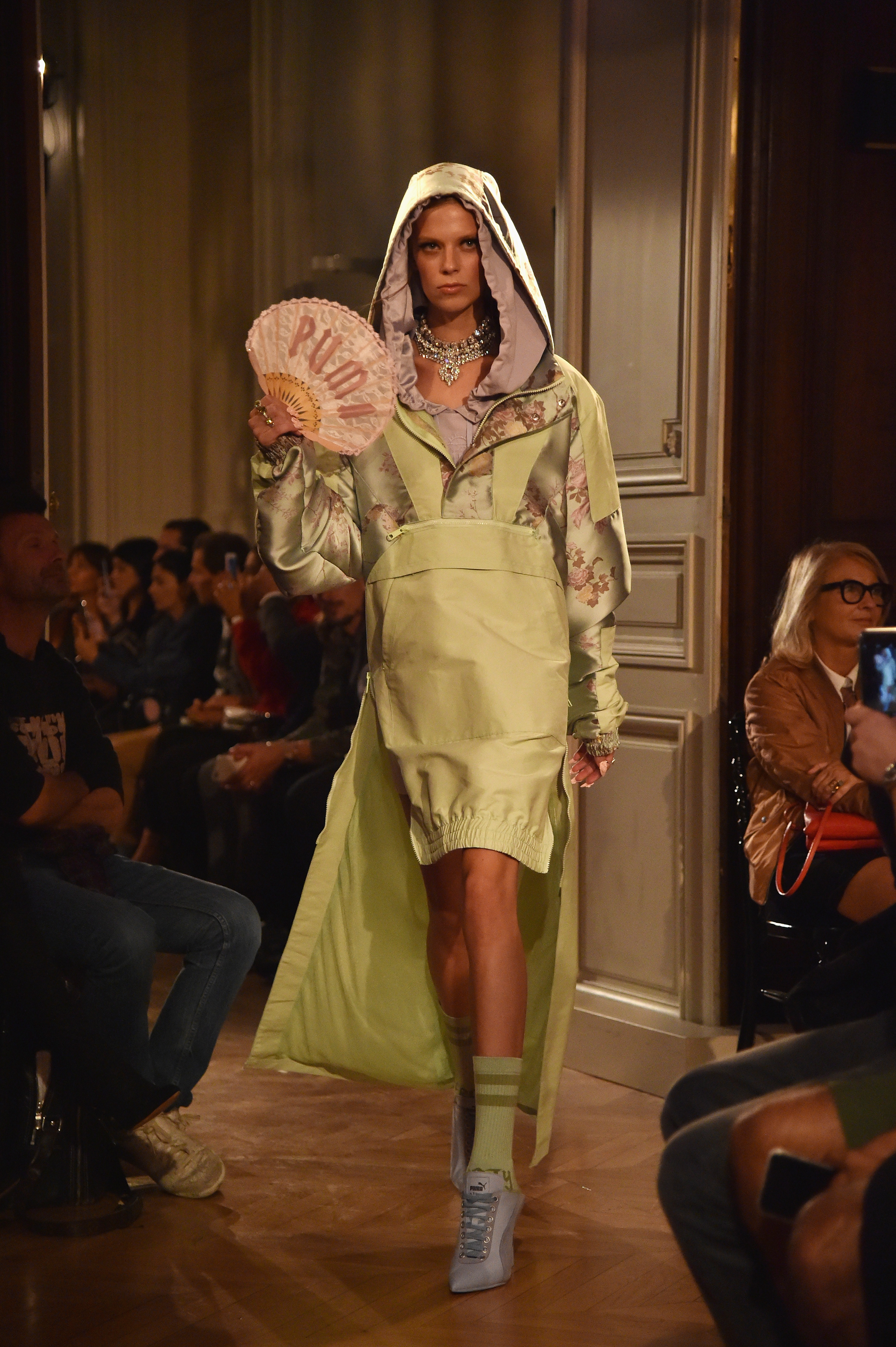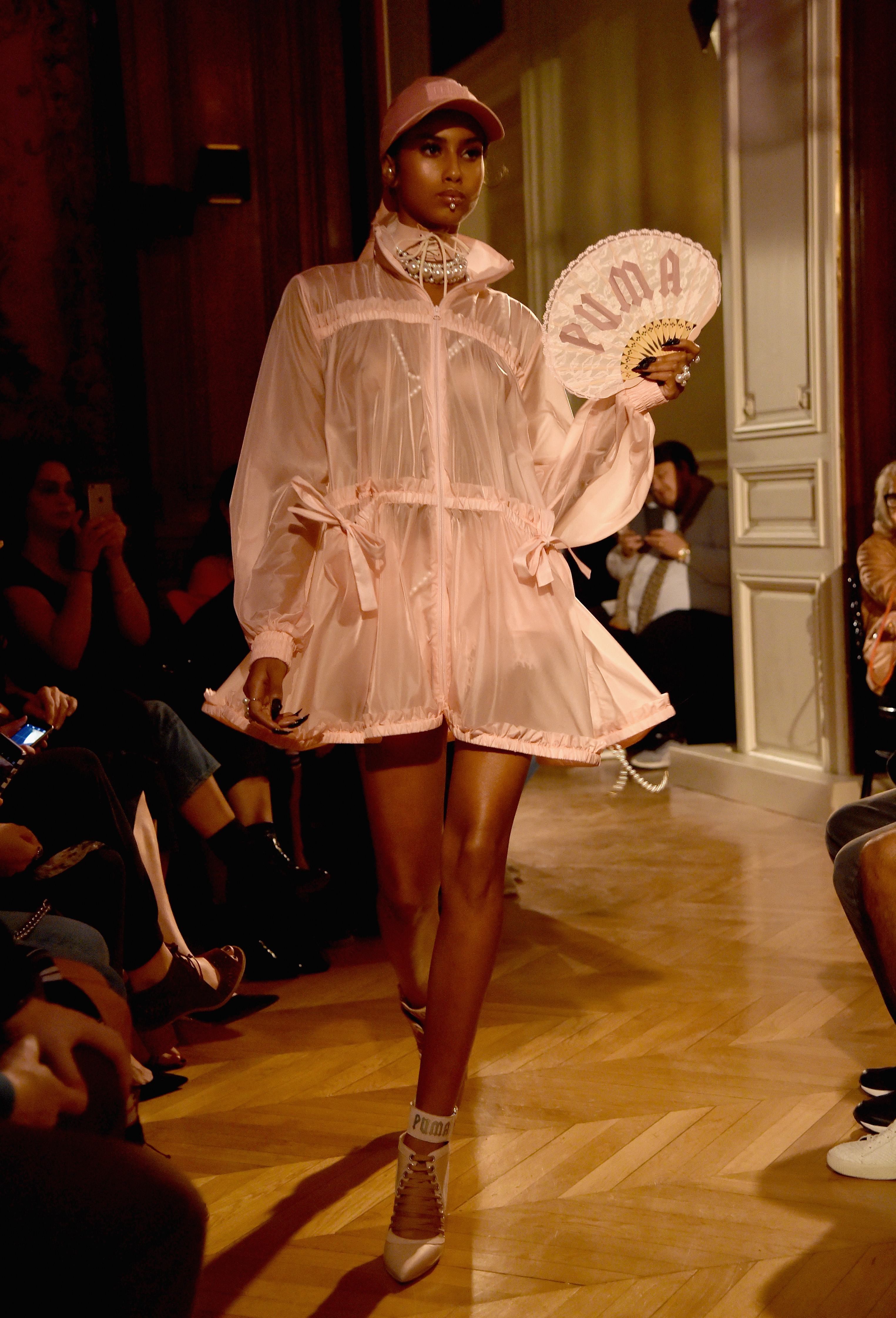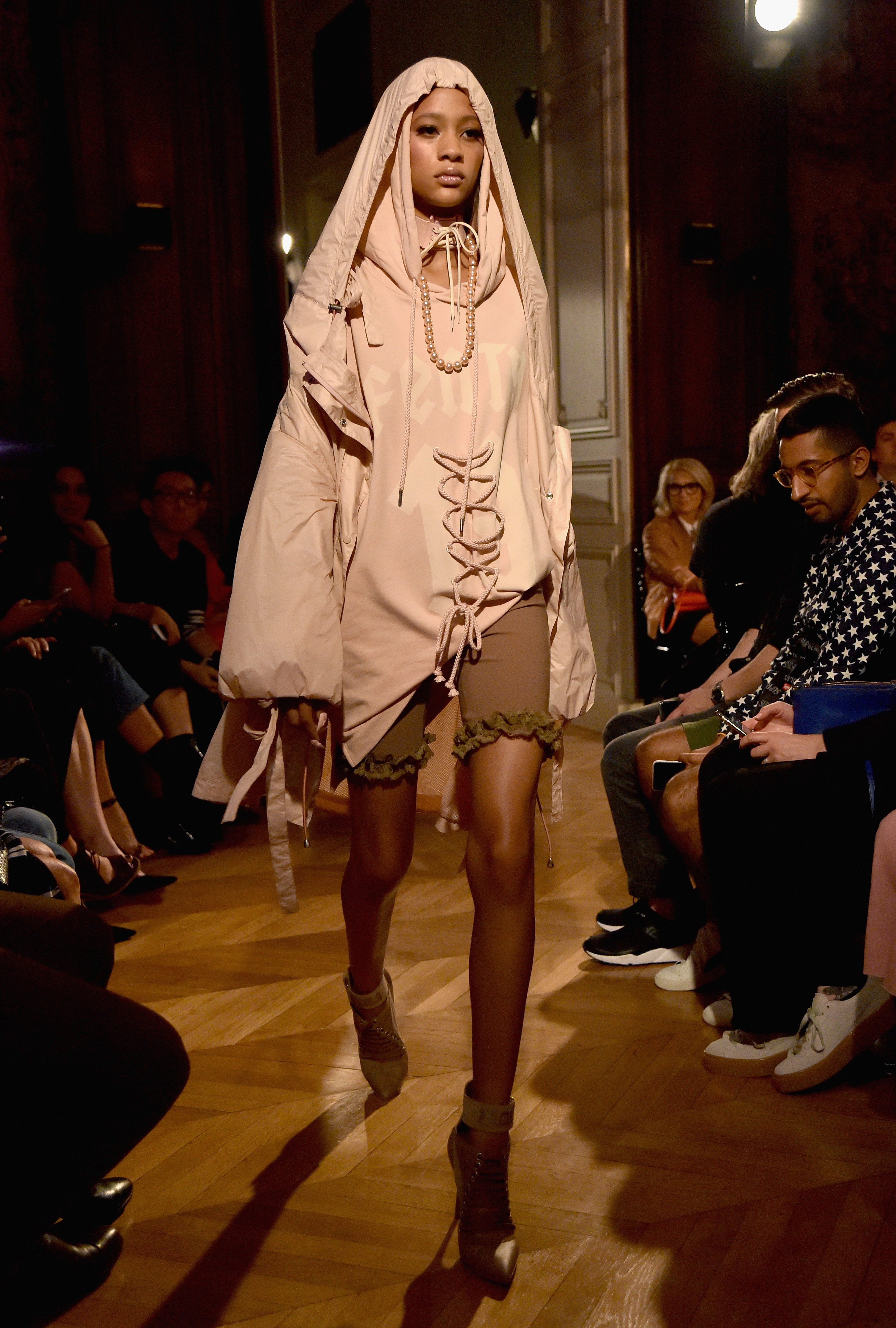 - PARIS, FRANCE – SEPTEMBER 28: A model walks the runway during FENTY x PUMA by Rihanna at Hotel Salomon de Rothschild on September 28, 2016 in Paris, France. (Photo by Jacopo Raule/Getty Images for Fenty x Puma)