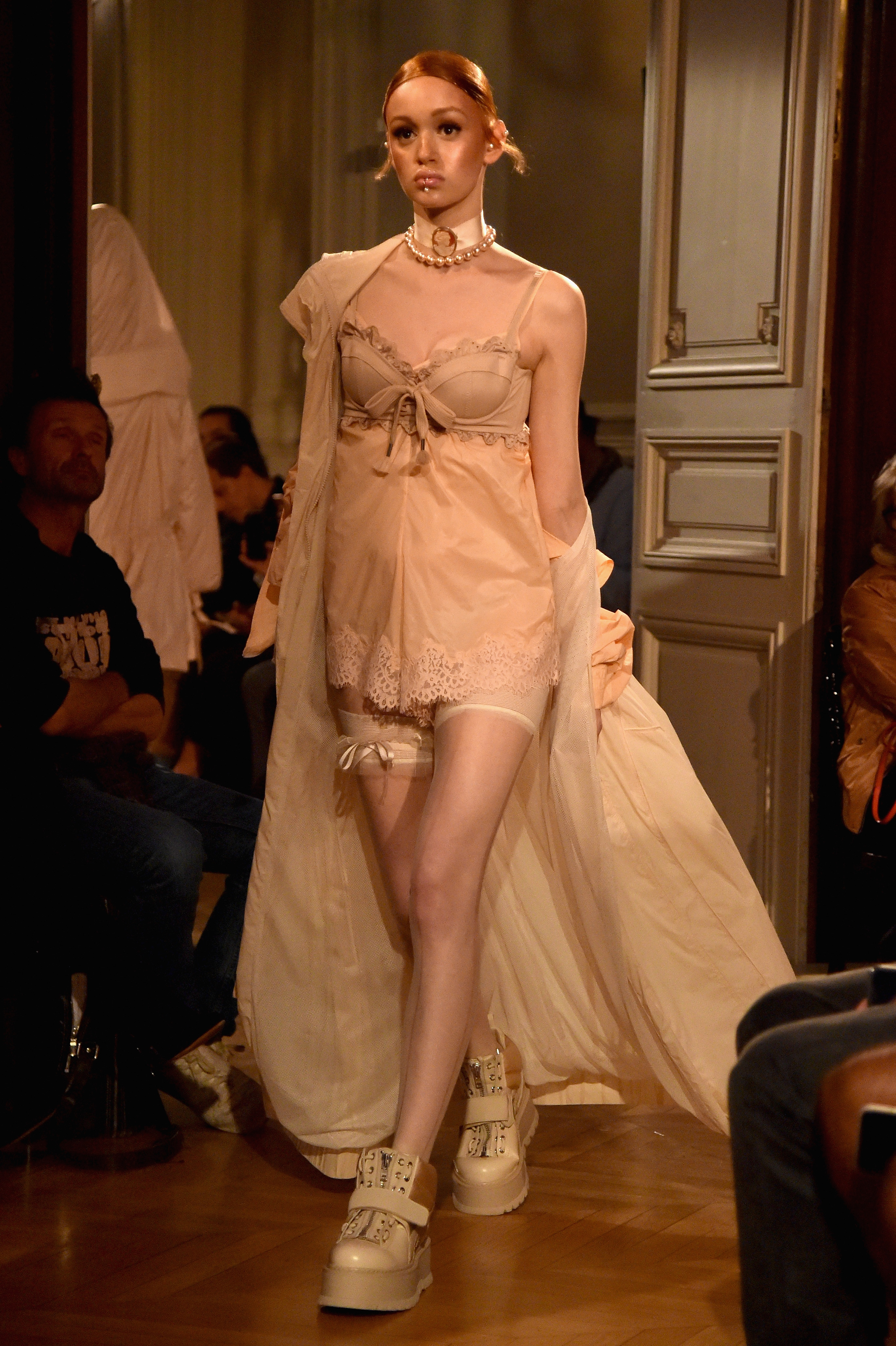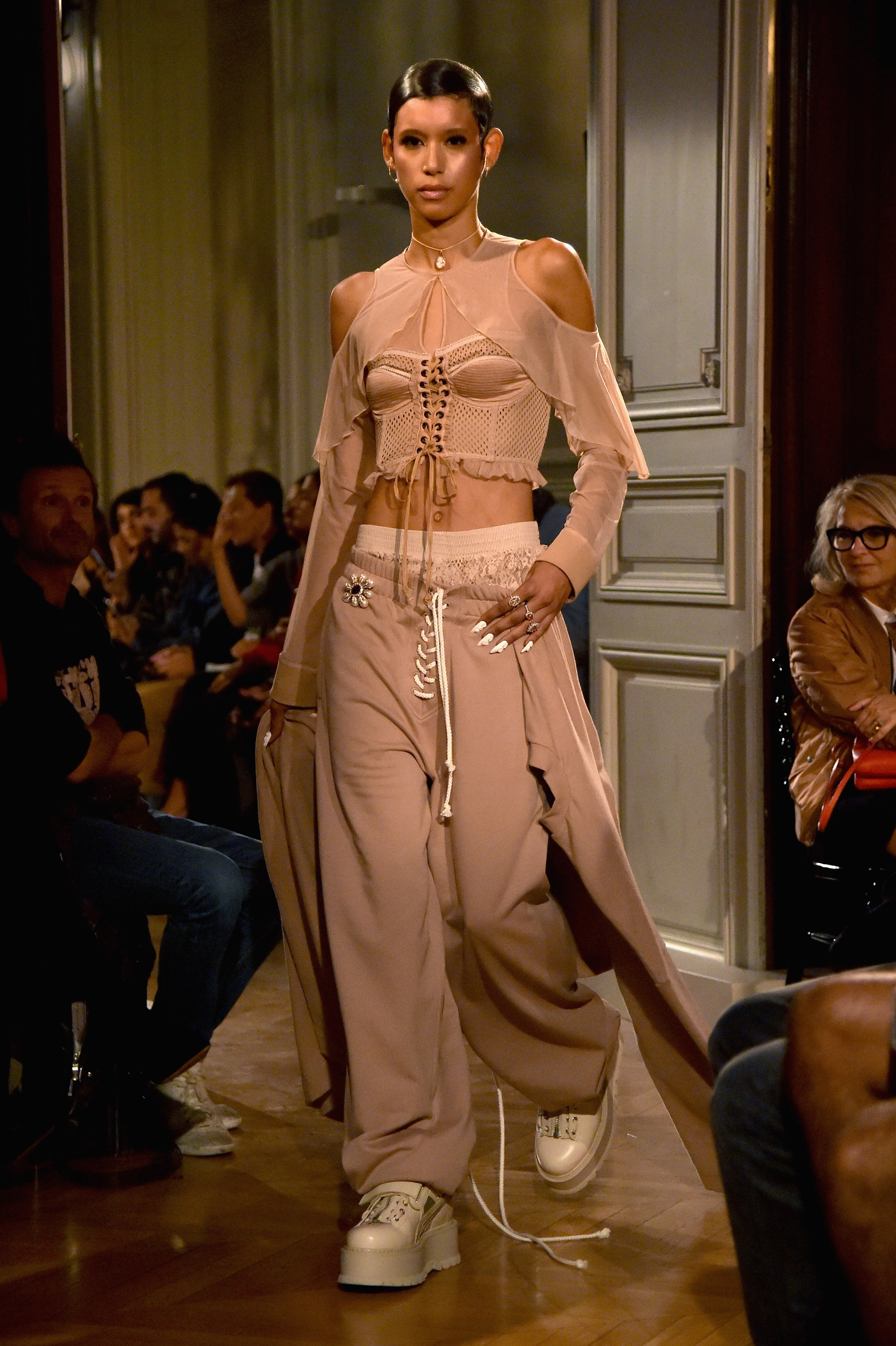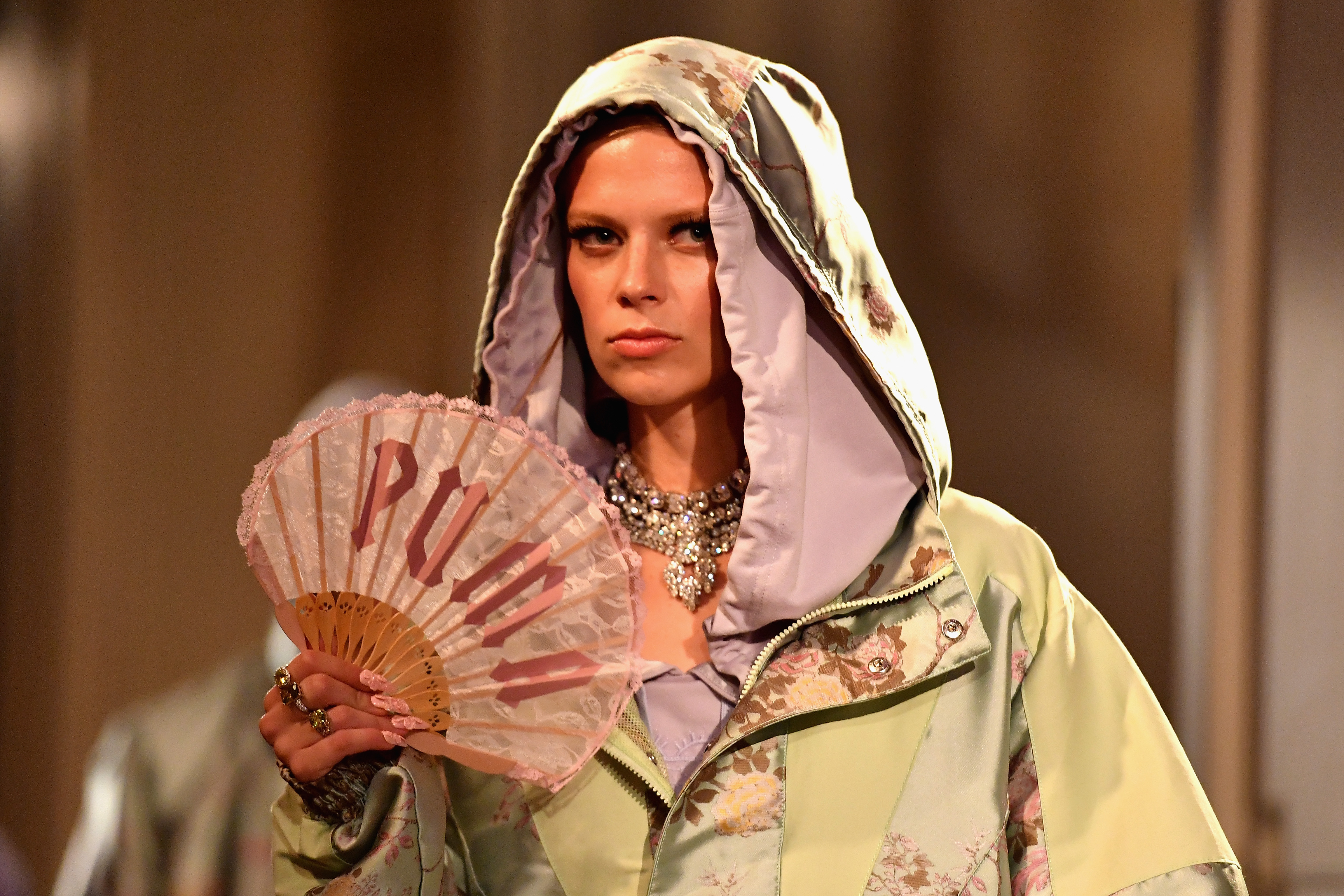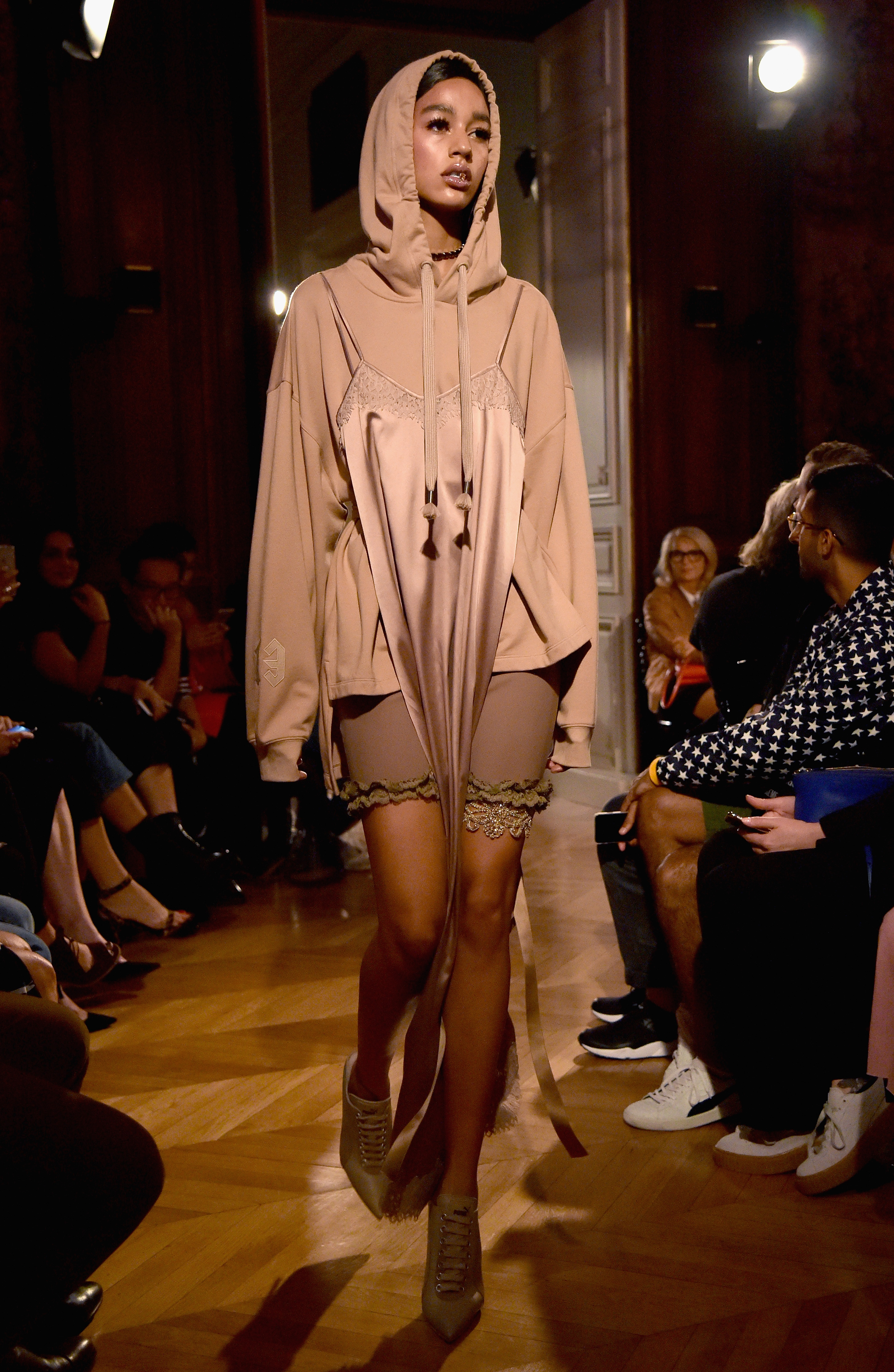 - PARIS, FRANCE – SEPTEMBER 28: A model walks the runway during FENTY x PUMA by Rihanna at Hotel Salomon de Rothschild on September 28, 2016 in Paris, France. (Photo by Jacopo Raule/Getty Images for Fenty x Puma)