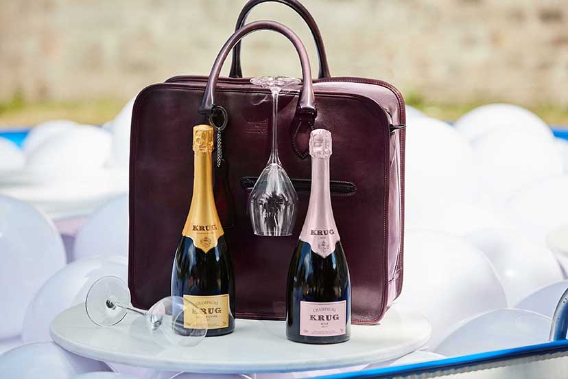 Les Maisons Berluti et Krug s’unissent et présentent une collection de deux sacs en édition limitée, réinterprétation de l’emblématique « Un Jour » de Berluti, spécialement conçue pour transporter le Champagne Krug.