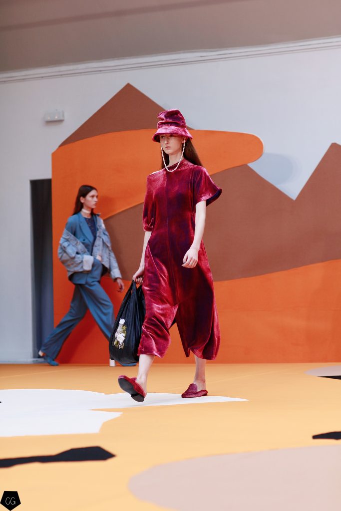 La volonté de cette collection est de s’affirmer comme une extension de l’identité personnelle, embrassant la diversité et l’individualité avec la personnalisation et la customisation en ligne de mire. L’attitude de la collection est 90’s et grunge, un vent de liberté et d’anticonformisme pour UUSI FANTASIA. Les coupes sont amples, les volumes exagérés, les inspirations college et moto sont aussi présentes. Côté matières et couleurs, ont voit beaucoup de jacquard de soie, des vetements au toucher vintage, le laine fluide, du viscose brillant, et du velour bicolore.