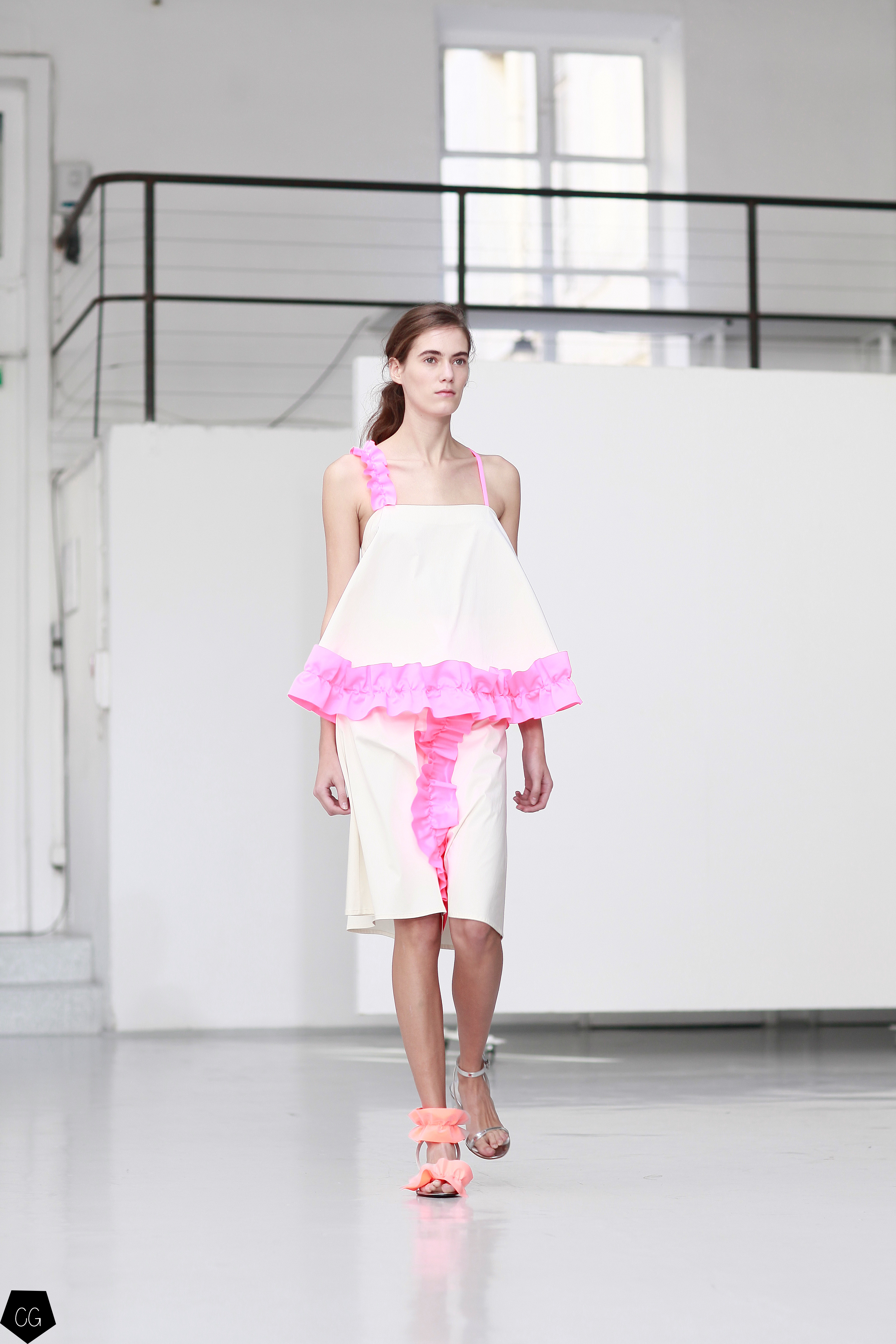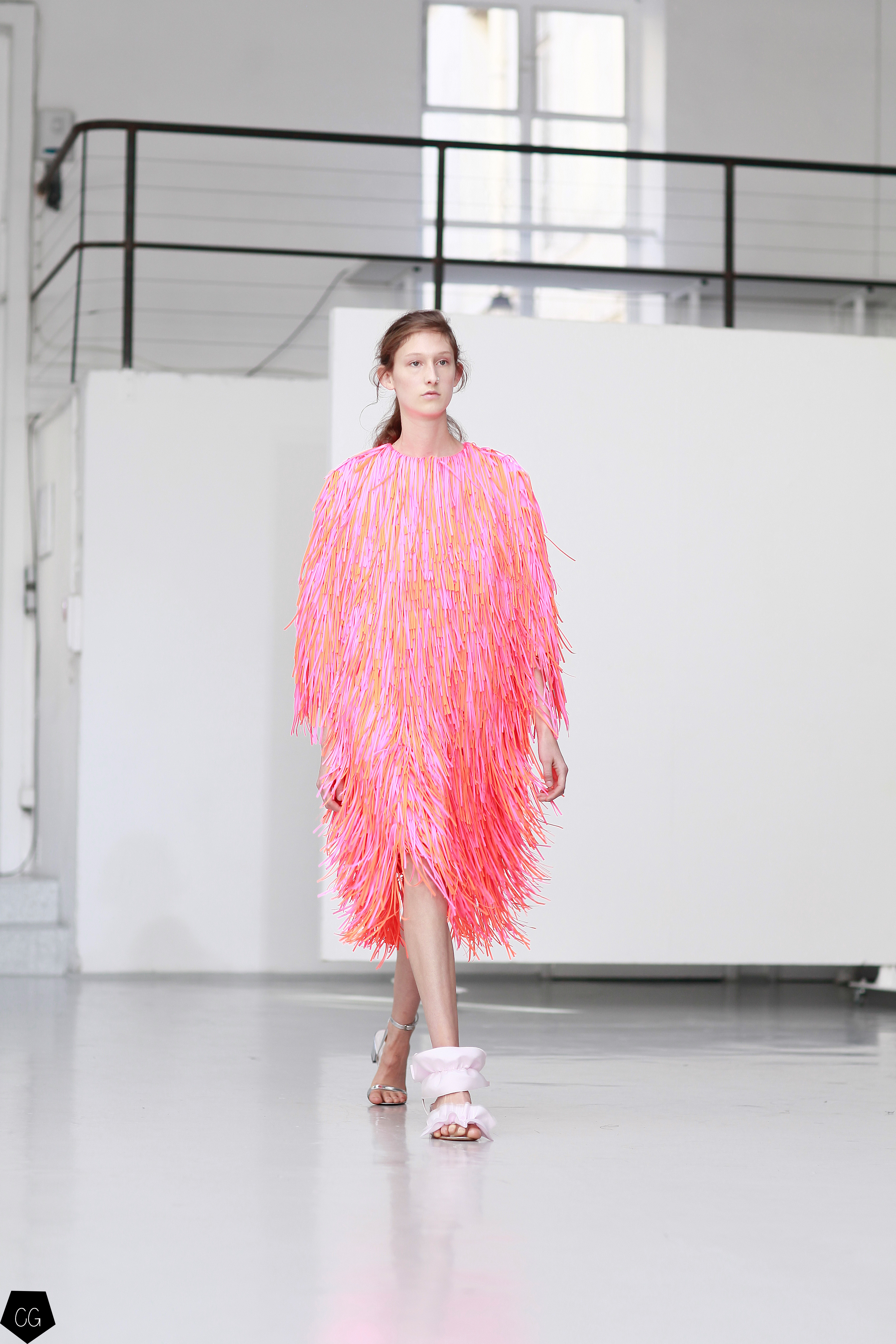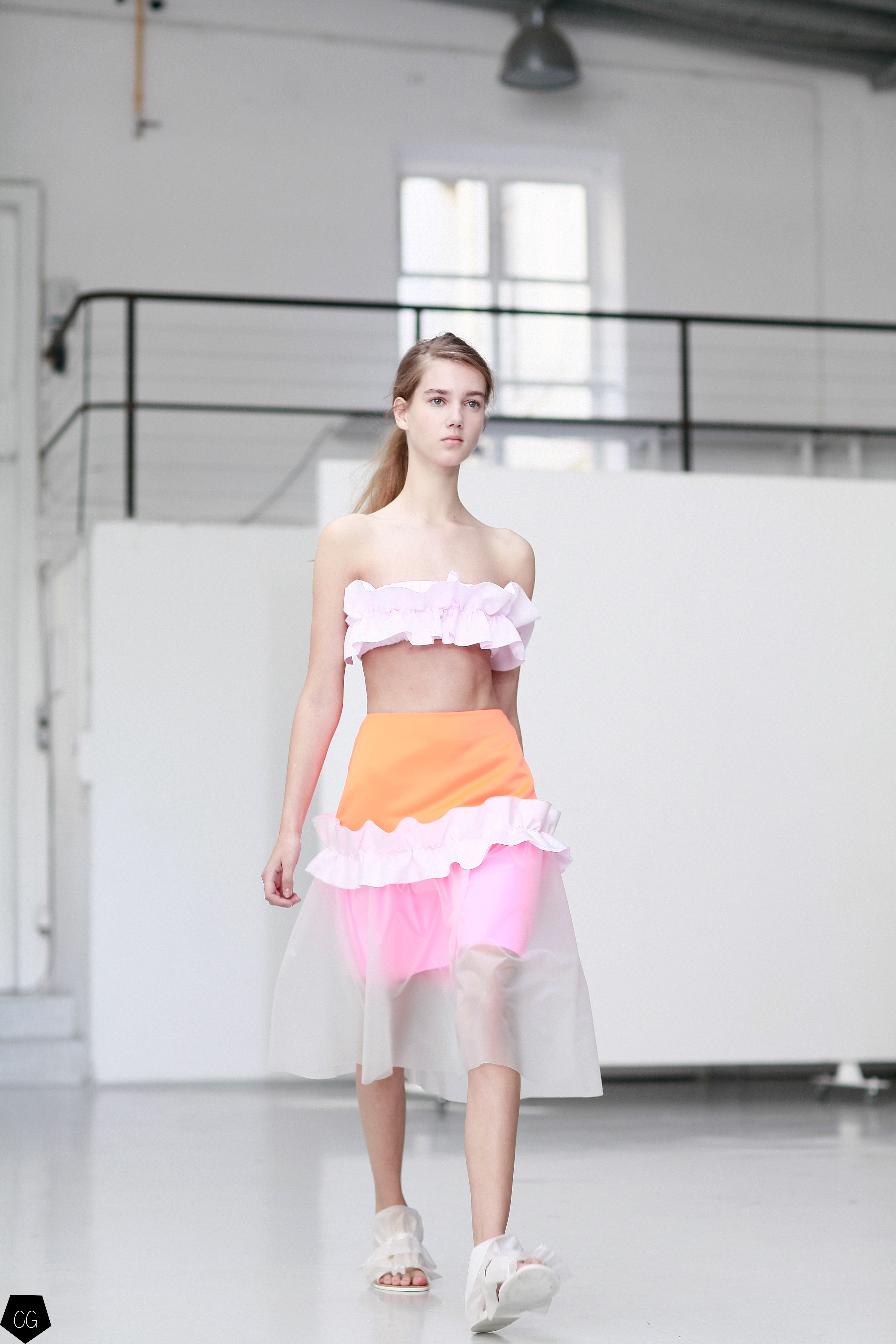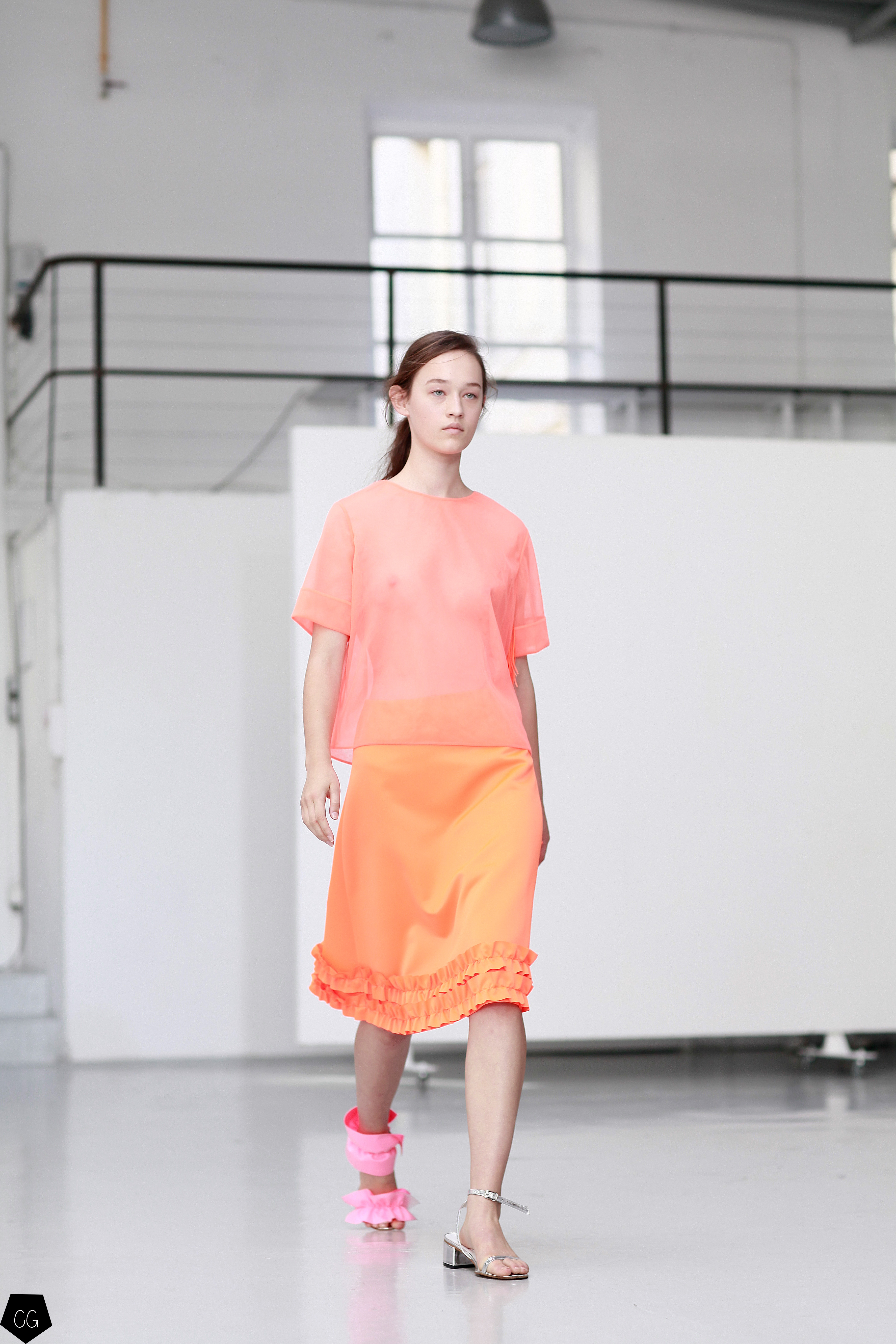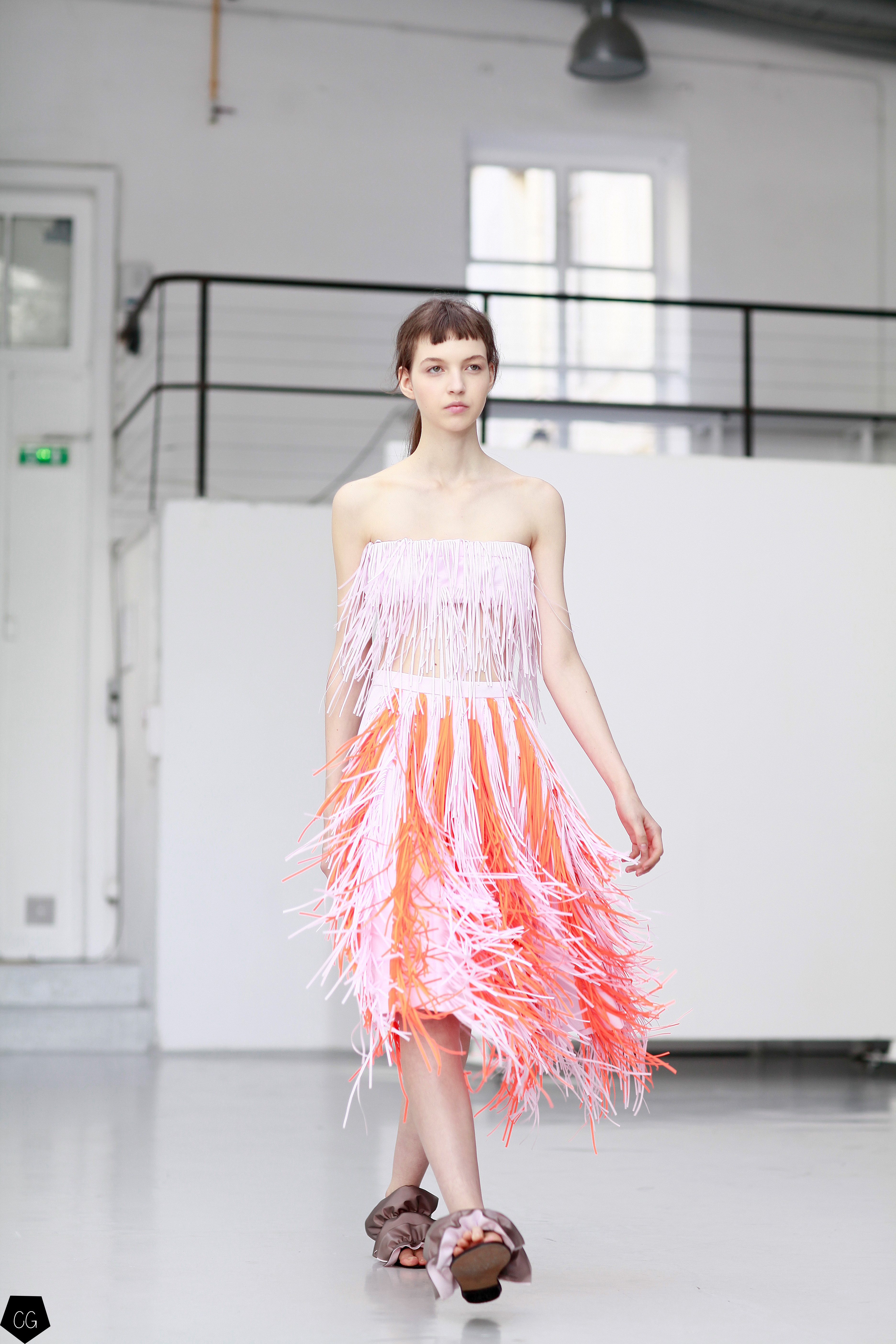 Julie Paskal a présenté sa collection printemps été 2017 appel « Sans Titre » lors de la fashion week de Paris. Julie Pascal nous revèle sa vision de l’abstraction en utilisant des formes simples et des couleurs. Son inspiration au niveau des couleurs est puisée dans l’oeuvre “Ohne Titel (Streifenbild)” du peintre allemand Sigmar Polke. Les trois lignes contrastées dessinées sur le fond gris du tableau correspond représentent avec simplicité l’esprit de cette collection. Couleurs acides, coupes au laser, rappel de la Goa Trance, des champignons hallucinogènes de la periode 90’s. Julie Paskal tente de recréer un monde païen ou la femme est la mère et elle réunit la beauté et l’amour. Tout un programme !