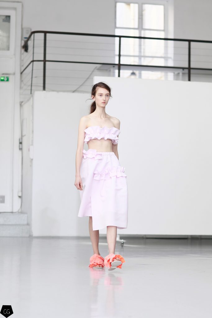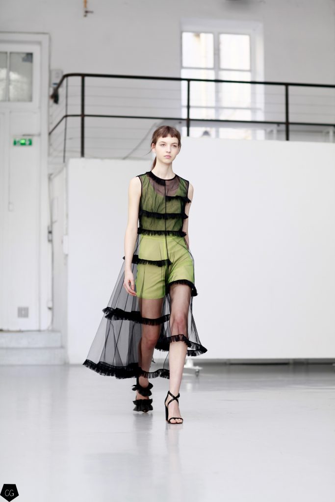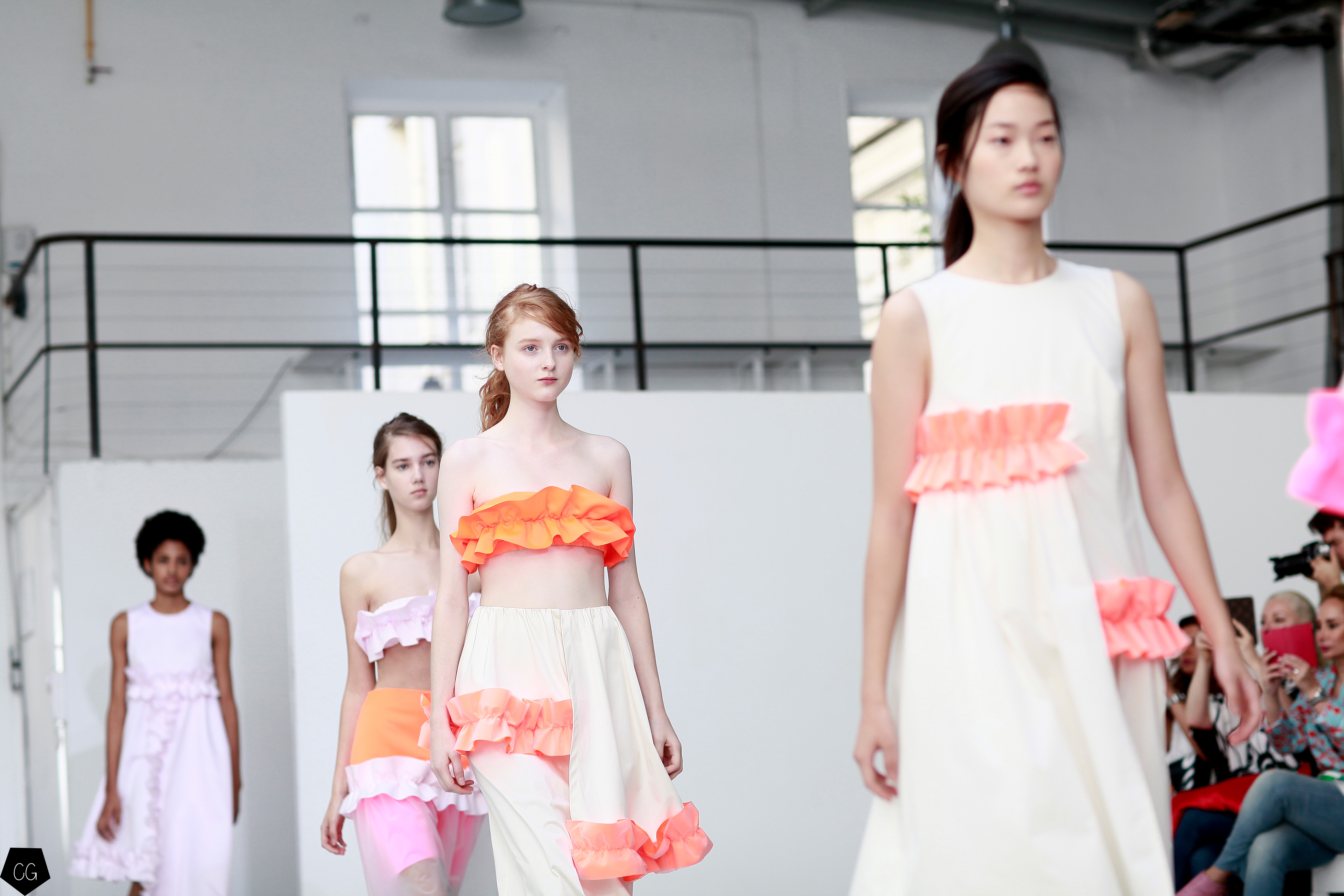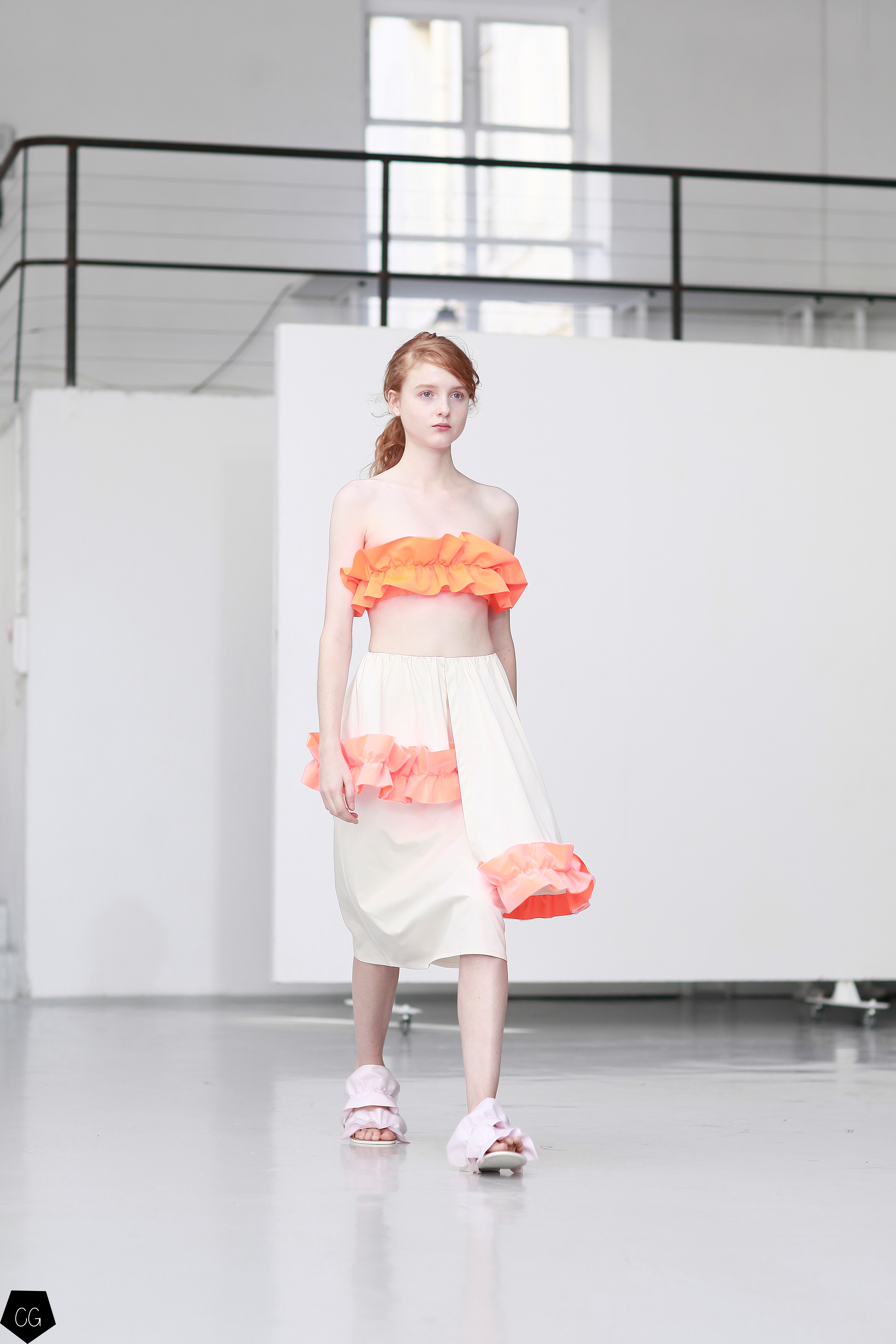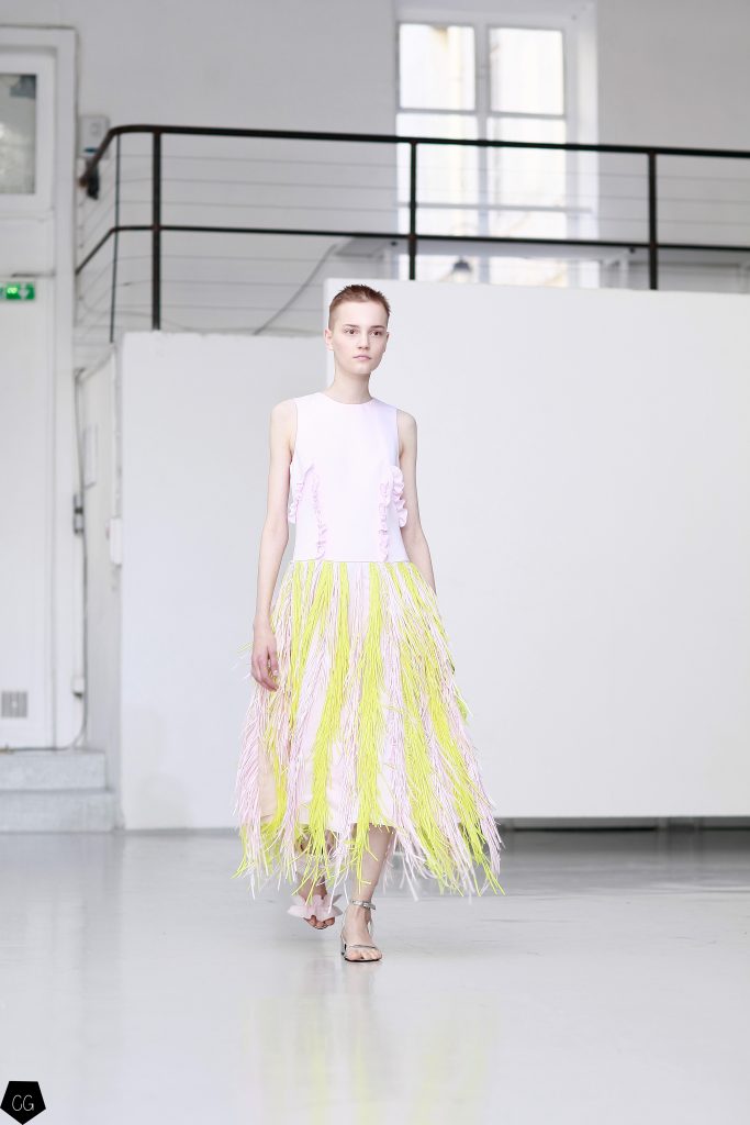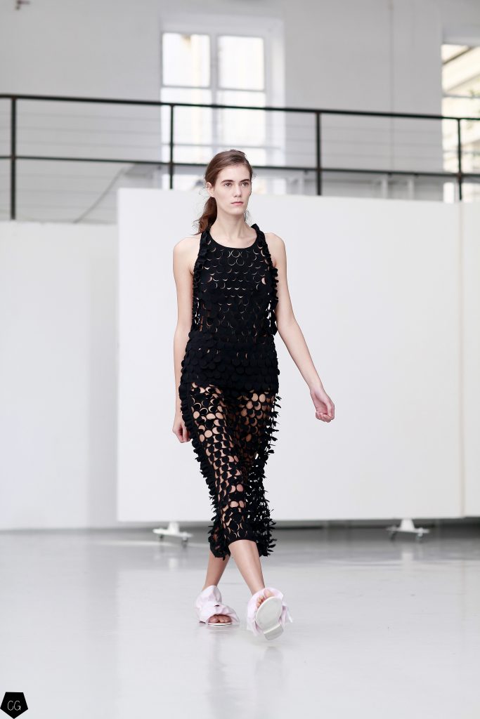 Julie Paskal a présenté sa collection printemps été 2017 appel « Sans Titre » lors de la fashion week de Paris. Julie Pascal nous revèle sa vision de l’abstraction en utilisant des formes simples et des couleurs. Son inspiration au niveau des couleurs est puisée dans l’oeuvre “Ohne Titel (Streifenbild)” du peintre allemand Sigmar Polke. Les trois lignes contrastées dessinées sur le fond gris du tableau correspond représentent avec simplicité l’esprit de cette collection. Couleurs acides, coupes au laser, rappel de la Goa Trance, des champignons hallucinogènes de la periode 90’s. Julie Paskal tente de recréer un monde païen ou la femme est la mère et elle réunit la beauté et l’amour. Tout un programme !