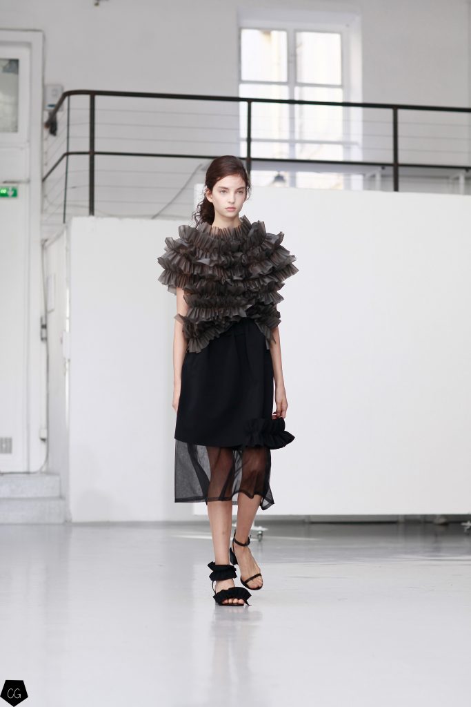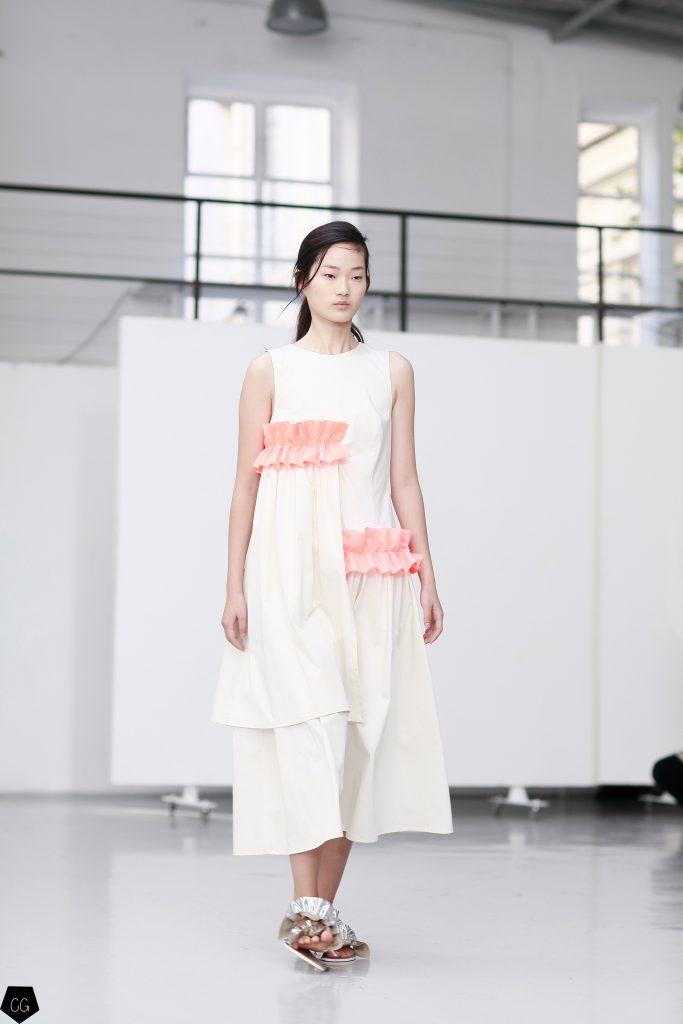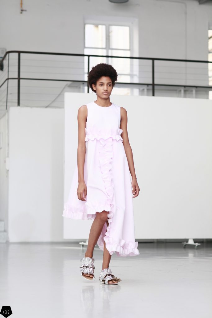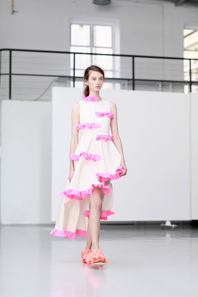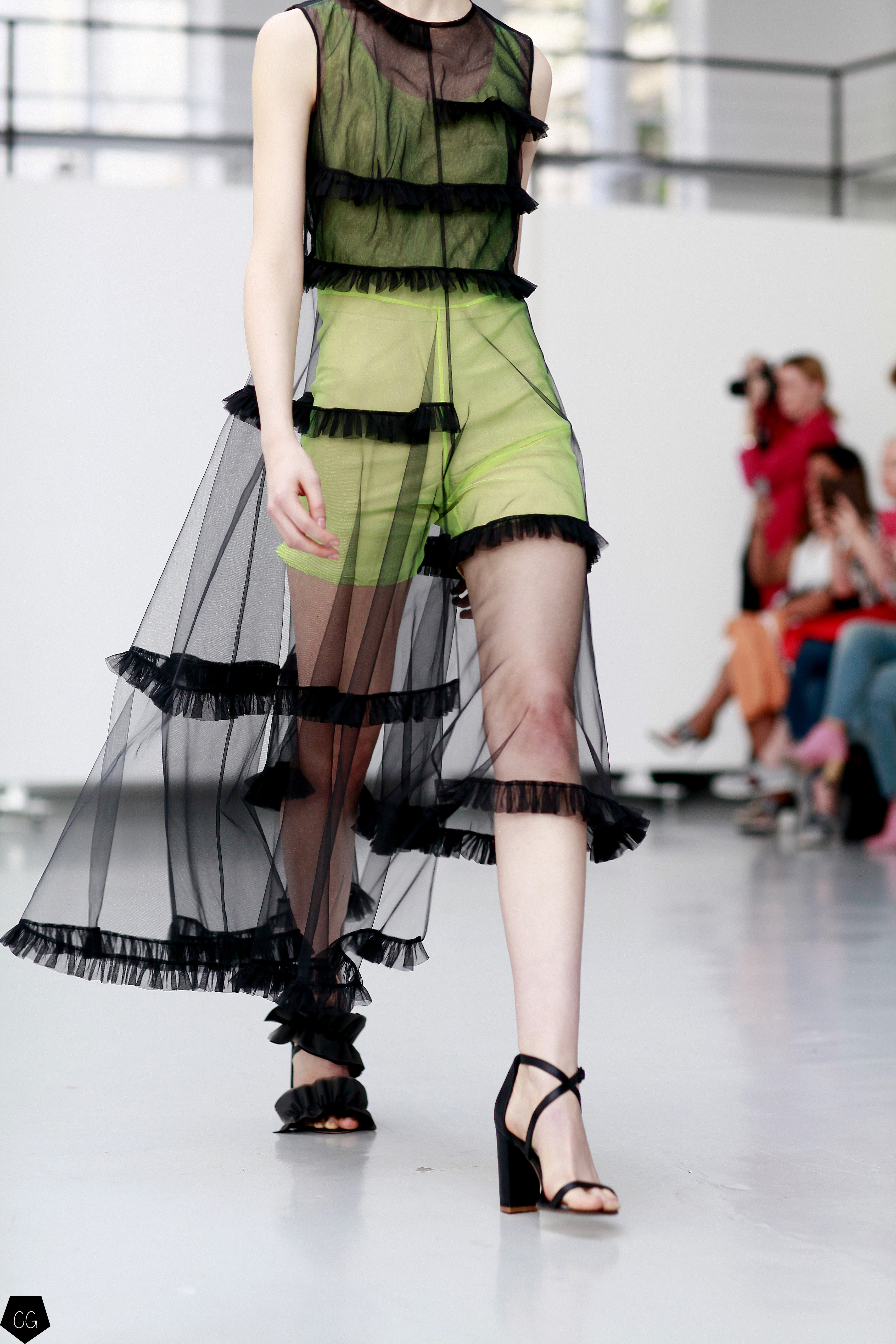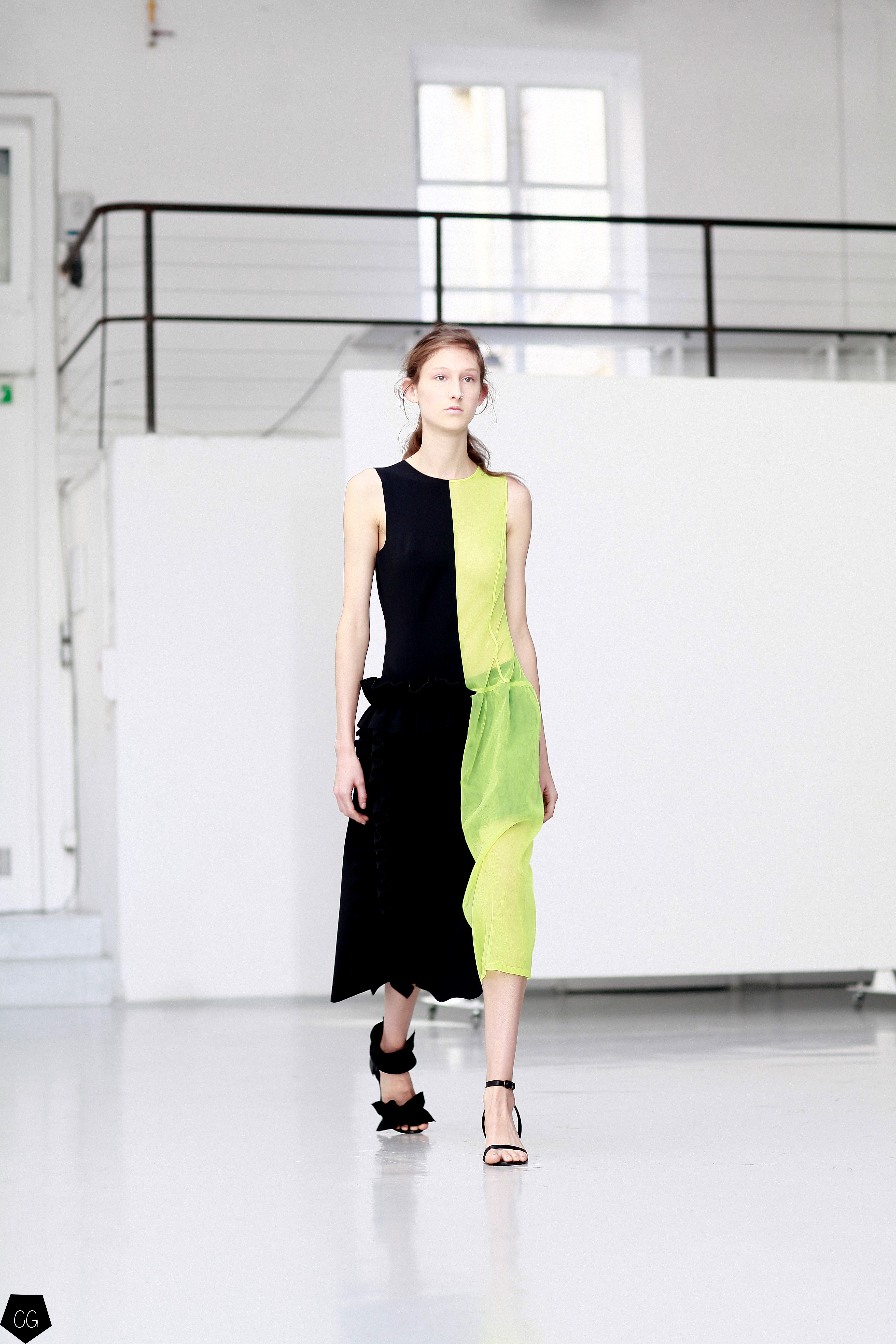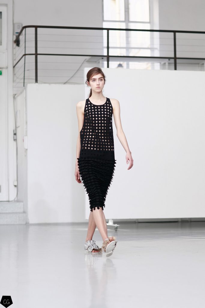 Julie Paskal a présenté sa collection printemps été 2017 appel « Sans Titre » lors de la fashion week de Paris. Julie Pascal nous revèle sa vision de l’abstraction en utilisant des formes simples et des couleurs. Son inspiration au niveau des couleurs est puisée dans l’oeuvre “Ohne Titel (Streifenbild)” du peintre allemand Sigmar Polke. Les trois lignes contrastées dessinées sur le fond gris du tableau correspond représentent avec simplicité l’esprit de cette collection. Couleurs acides, coupes au laser, rappel de la Goa Trance, des champignons hallucinogènes de la periode 90’s. Julie Paskal tente de recréer un monde païen ou la femme est la mère et elle réunit la beauté et l’amour. Tout un programme !
