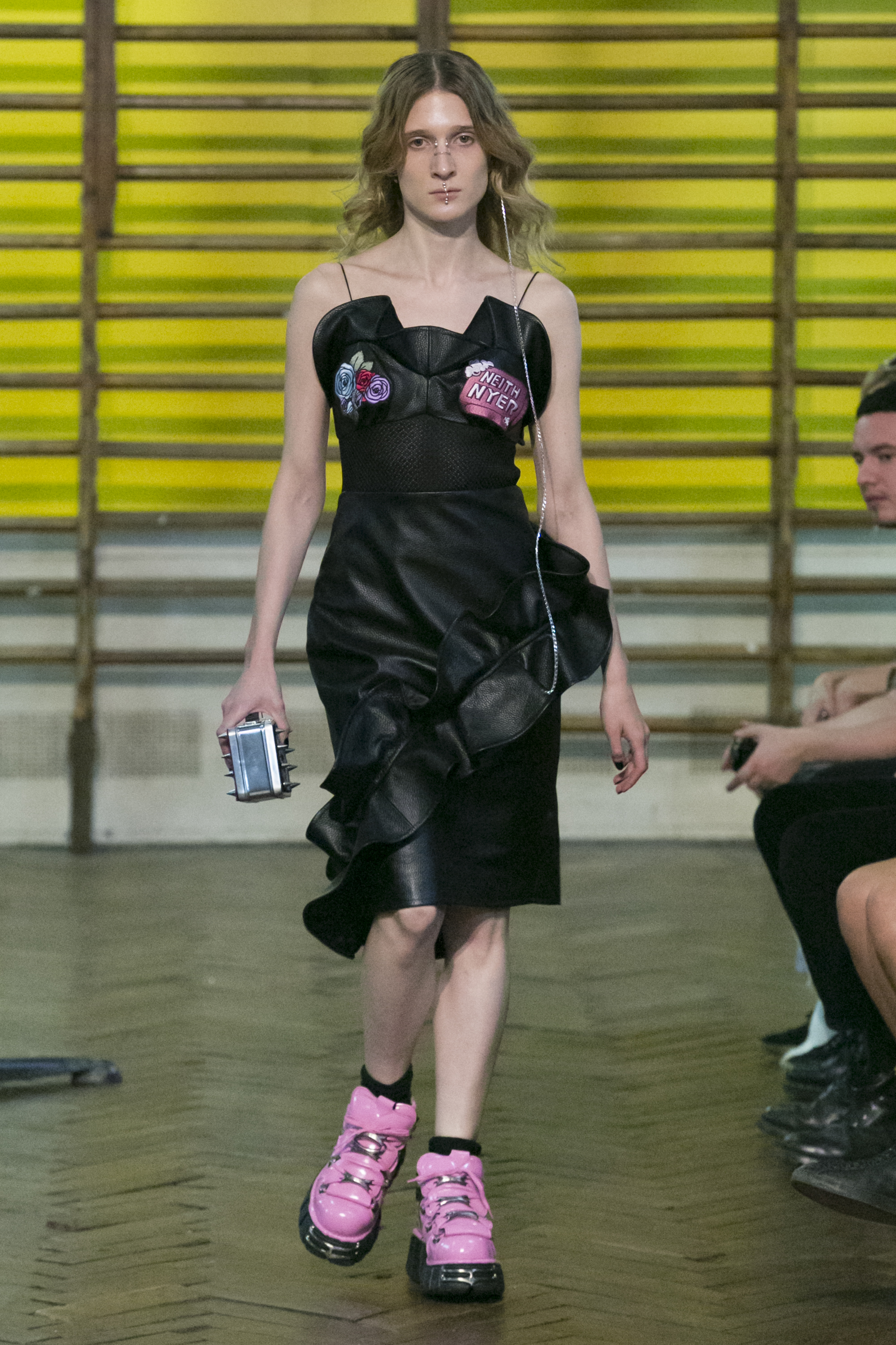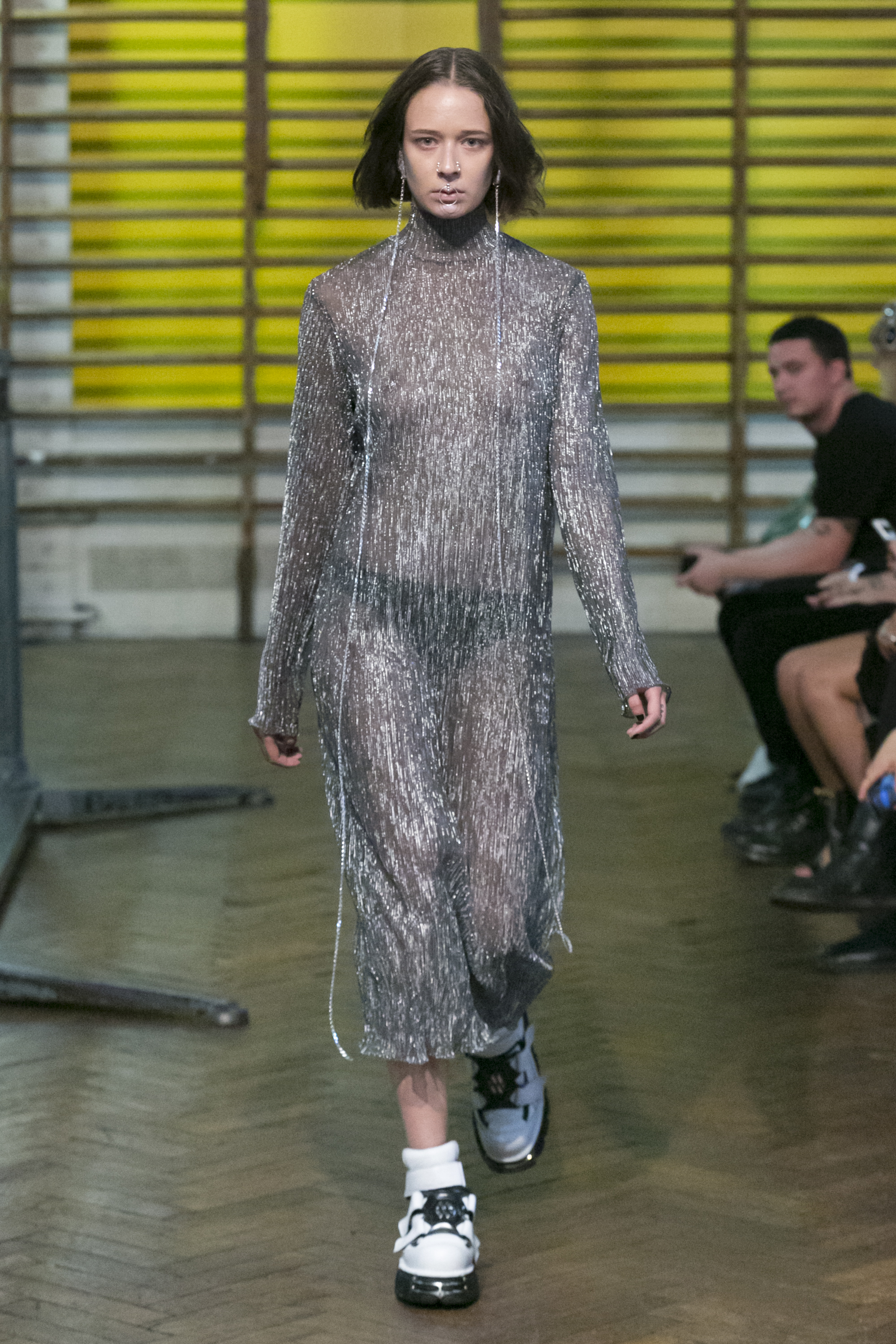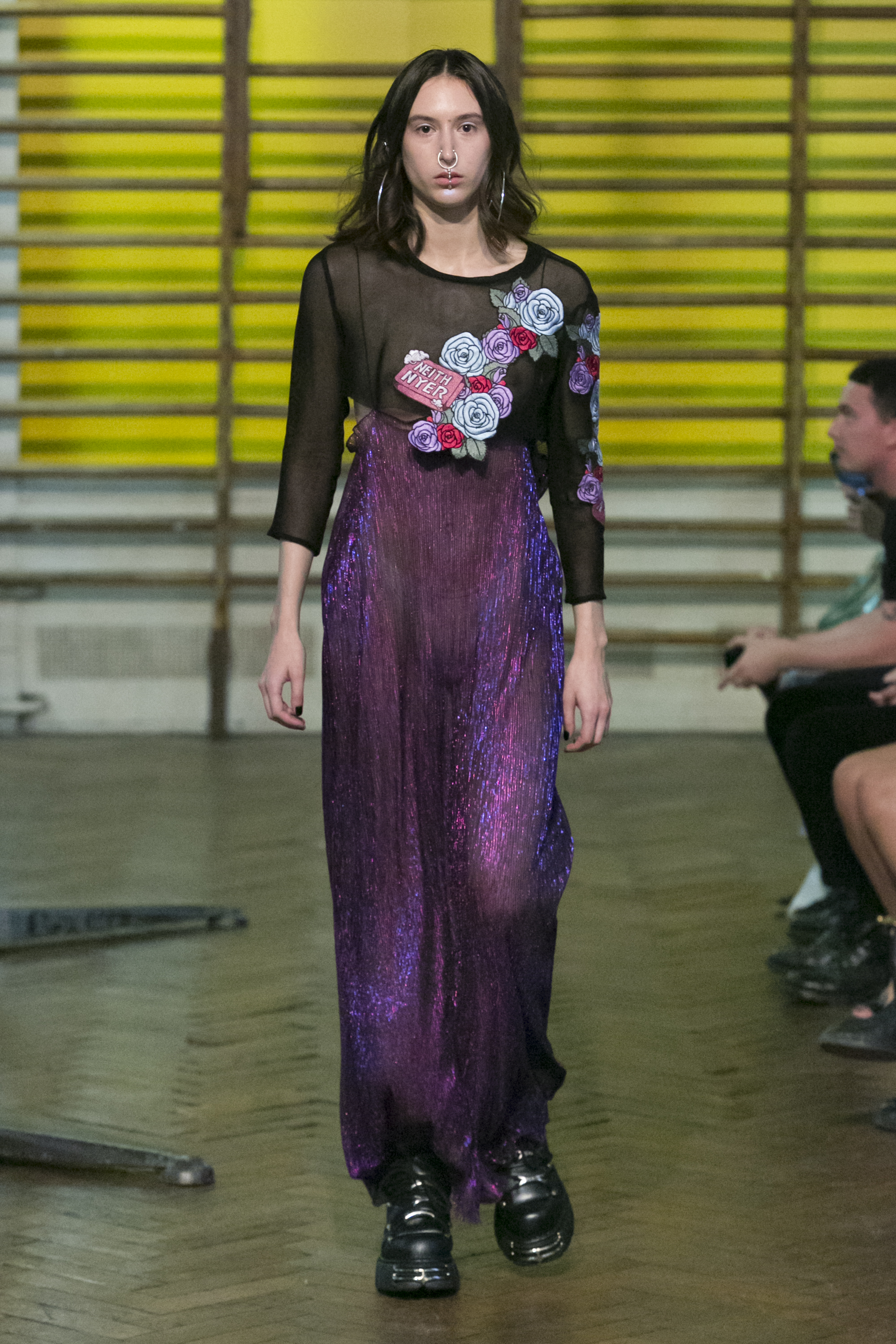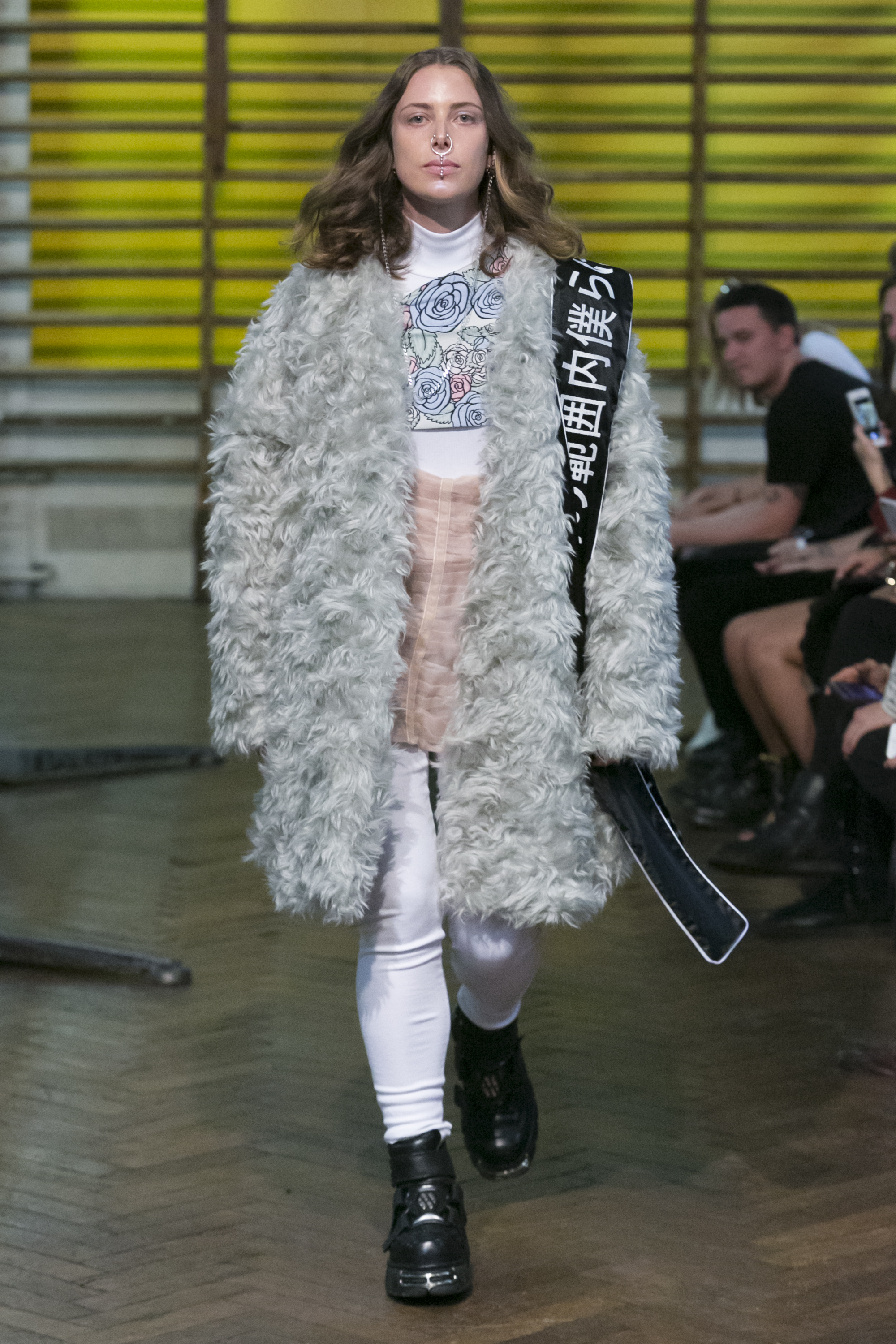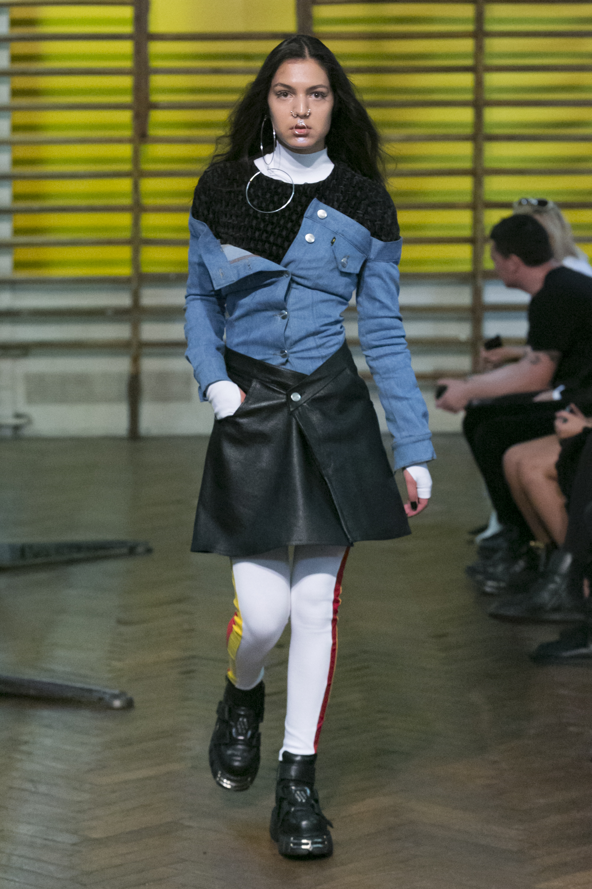 Une collection sous le signe du millénaire et de la culture, de l’avatar et des débuts d’internet. Inspirés d’artistes tel que Ben Elliot et Markus Schinwald et du film Fight Club qui a marqué la génération. Top destructurés, perfectos, robes classiques de la maison sont présentes combinés à des jacquard et des tweeds réalisées en colaboration avec l’artiste manga HIZGI avec des personnages pleins de luxure. Tout un programme.