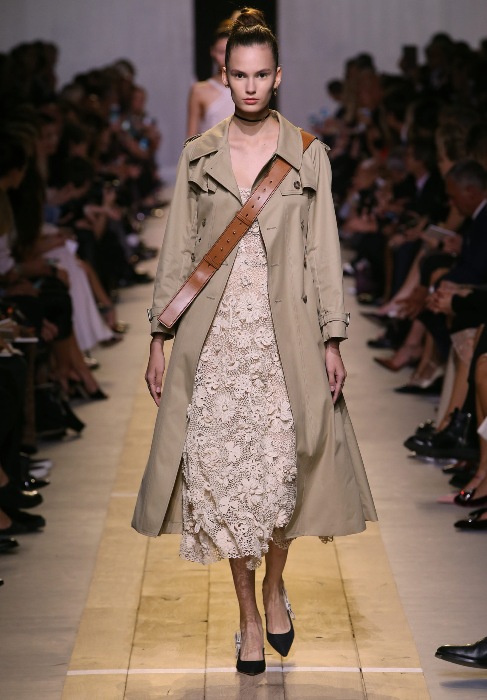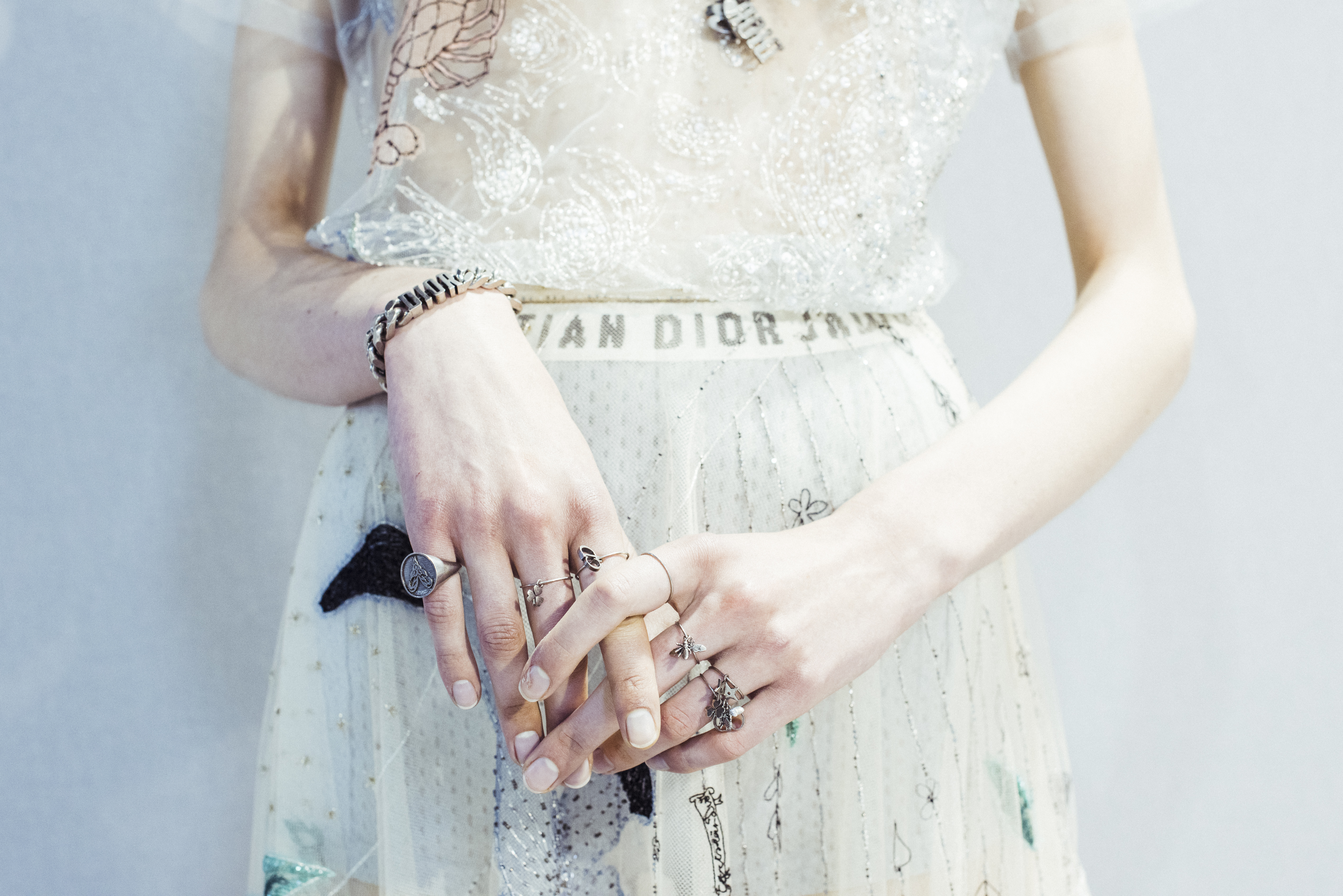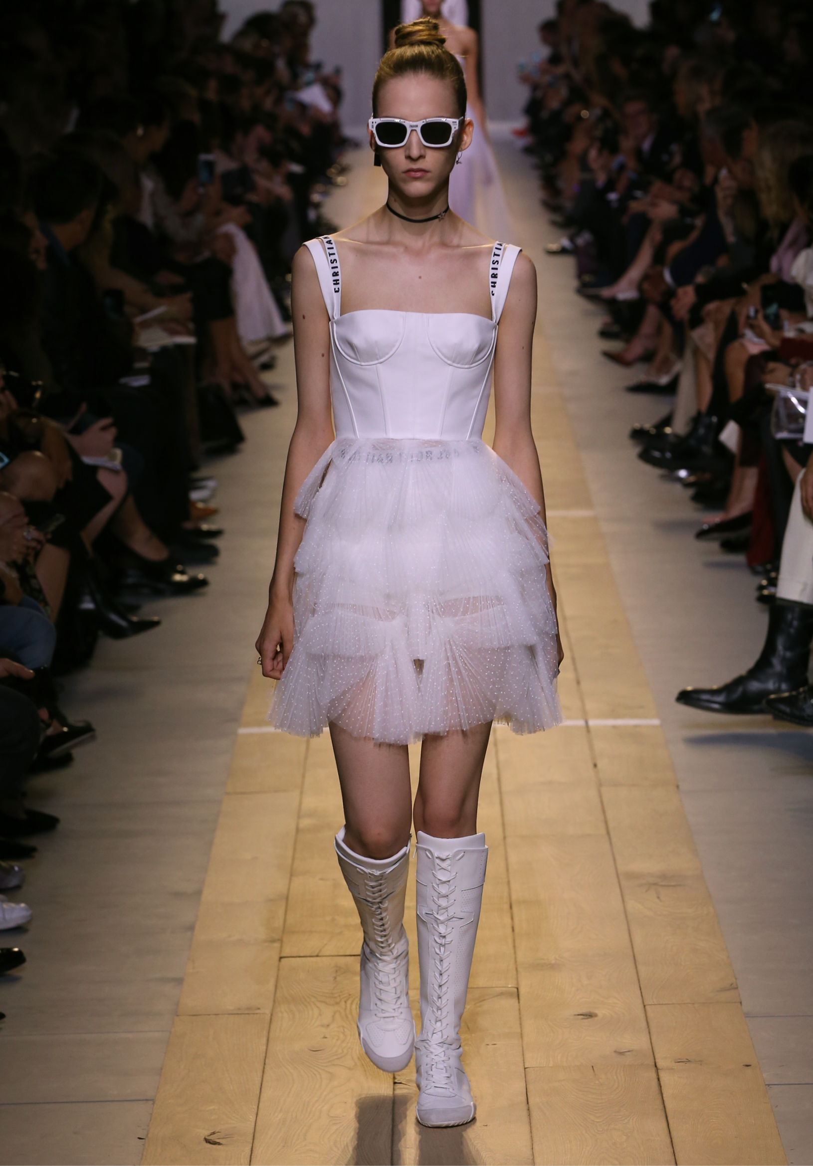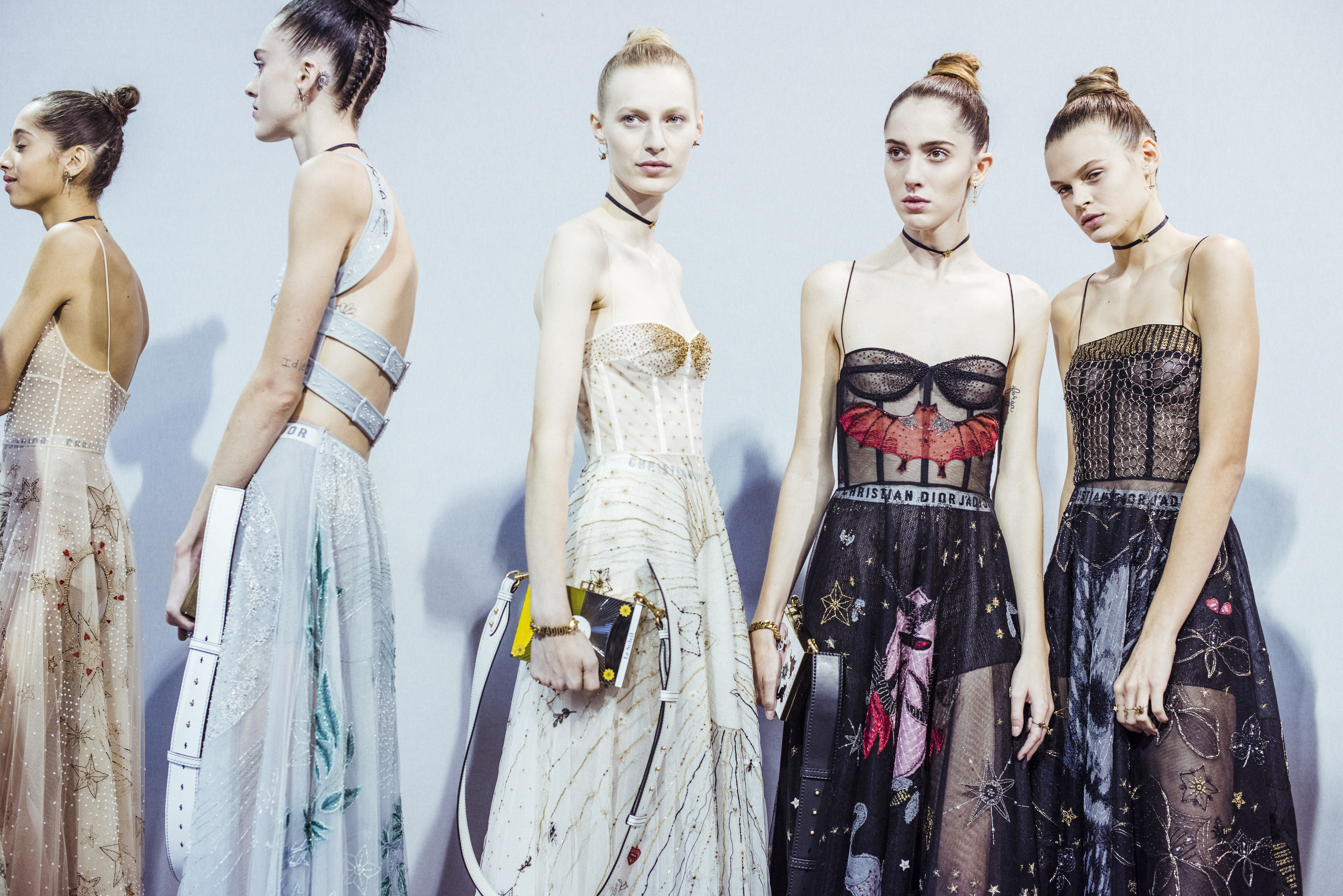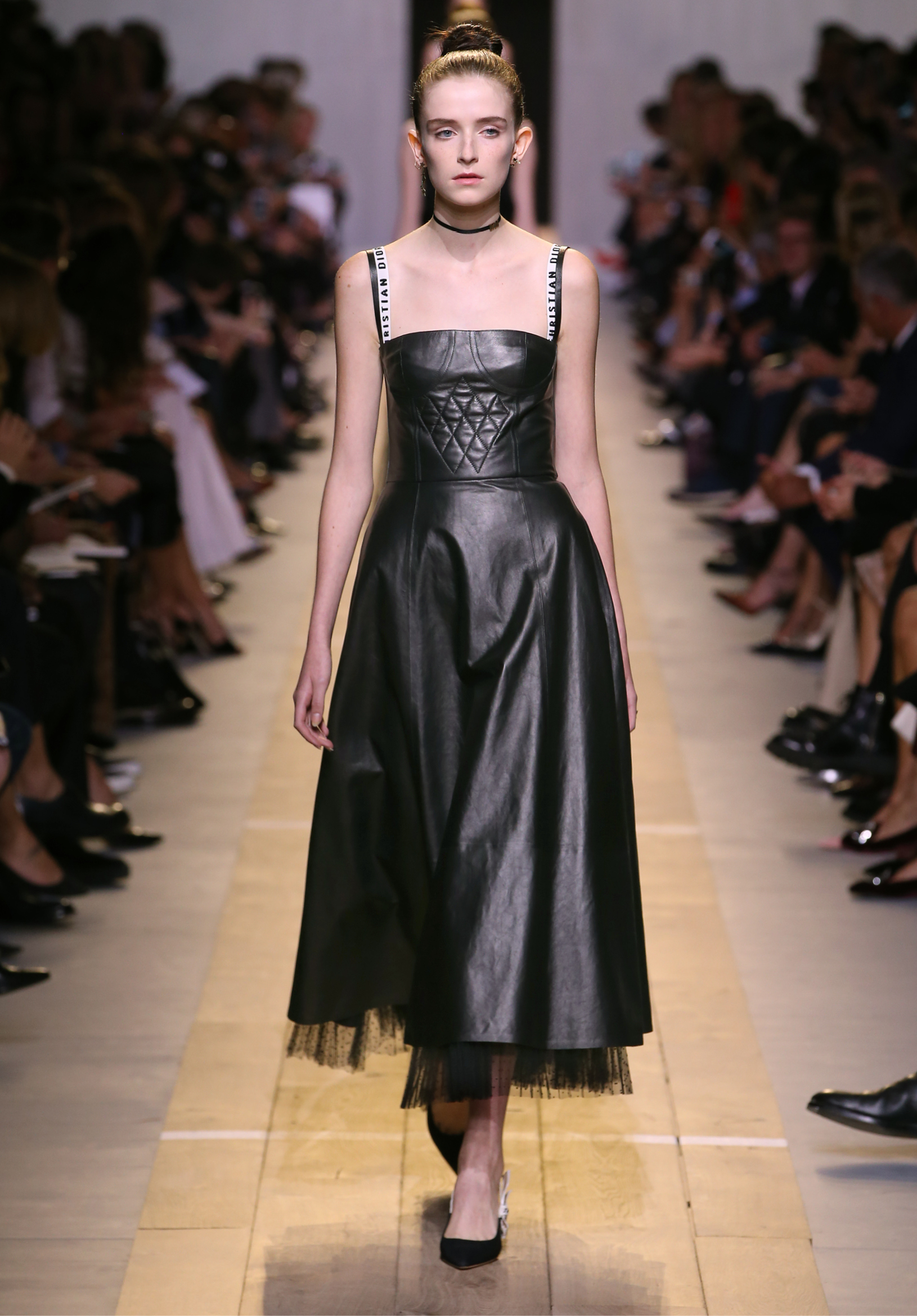 Maria Grazia Chiuri est la première femme à diriger la création de la Maison Dior ; son regard féminin audacieux – féministe est un mot récurrent chez elle – explore les règles de la beauté moderne pour les transposer dans une collection régie par cette tension sensuelle qui règne entre le corps et le vêtement. Le New Look de Christian Dior défiait la modernité et la rigueur de la tenue, en redonnant à la femme les courbes et le raffinement que la guerre avait effacés, une mode résolument nouvelle à cette époque. Maria Grazia Chiuri se confronte à la tradition de la maison Dior et replace ainsi la femme au centre, en bousculant les attentes et en remettant en cause ce qui est tenu pour acquis. Elle appelle à réfléchir aux formes d’une silhouette contemporaine, agile, olympienne, élitiste dans l’élégance sportive, tout en restant à la portée de chacune puisque l’uniforme est à la fois un élément unique et sériel. Il est un lieu où le corps s’exprime dans son individualité et où il peut partager en même temps avec les autres corps les règles du jeu et du paraître.