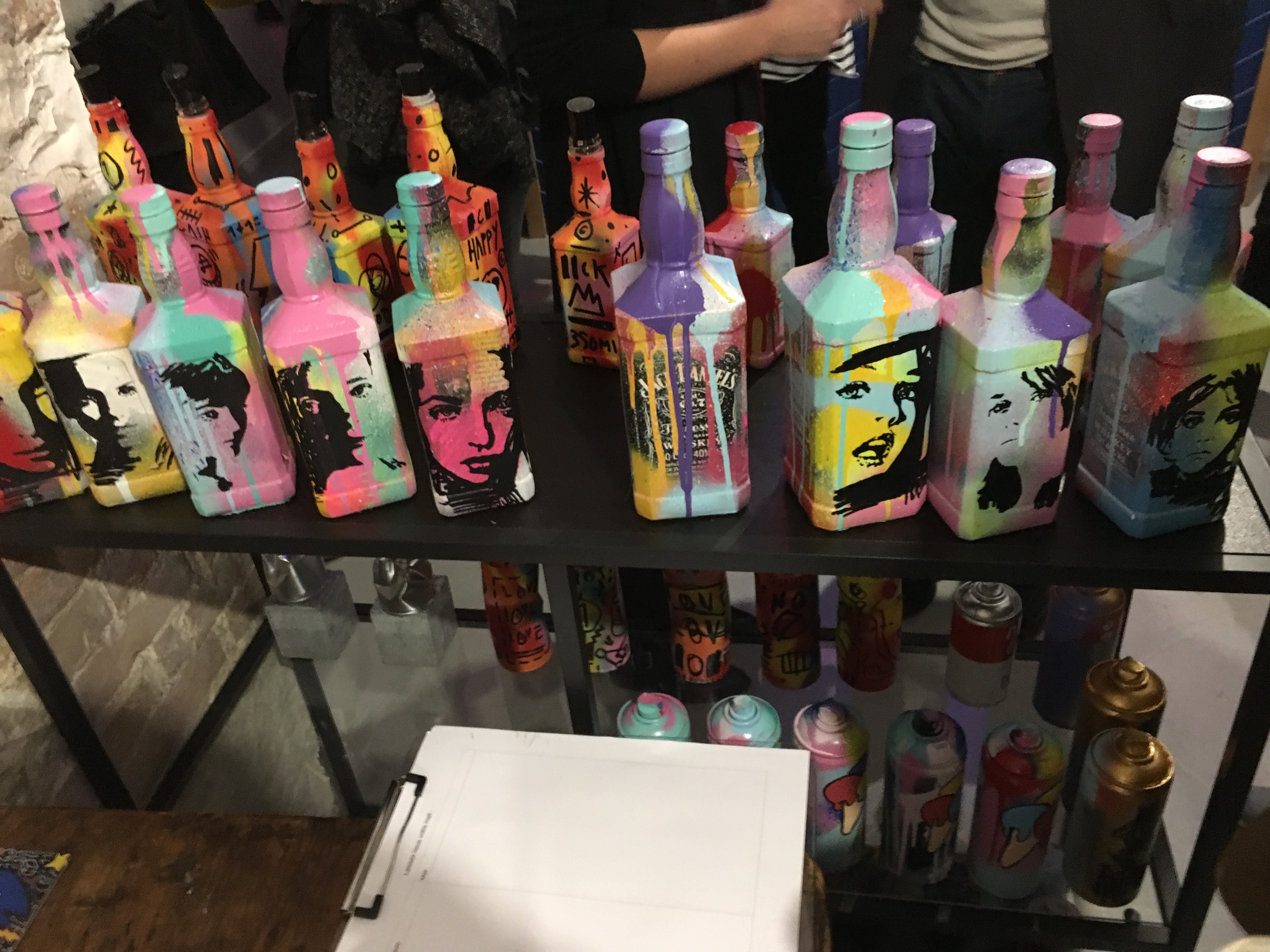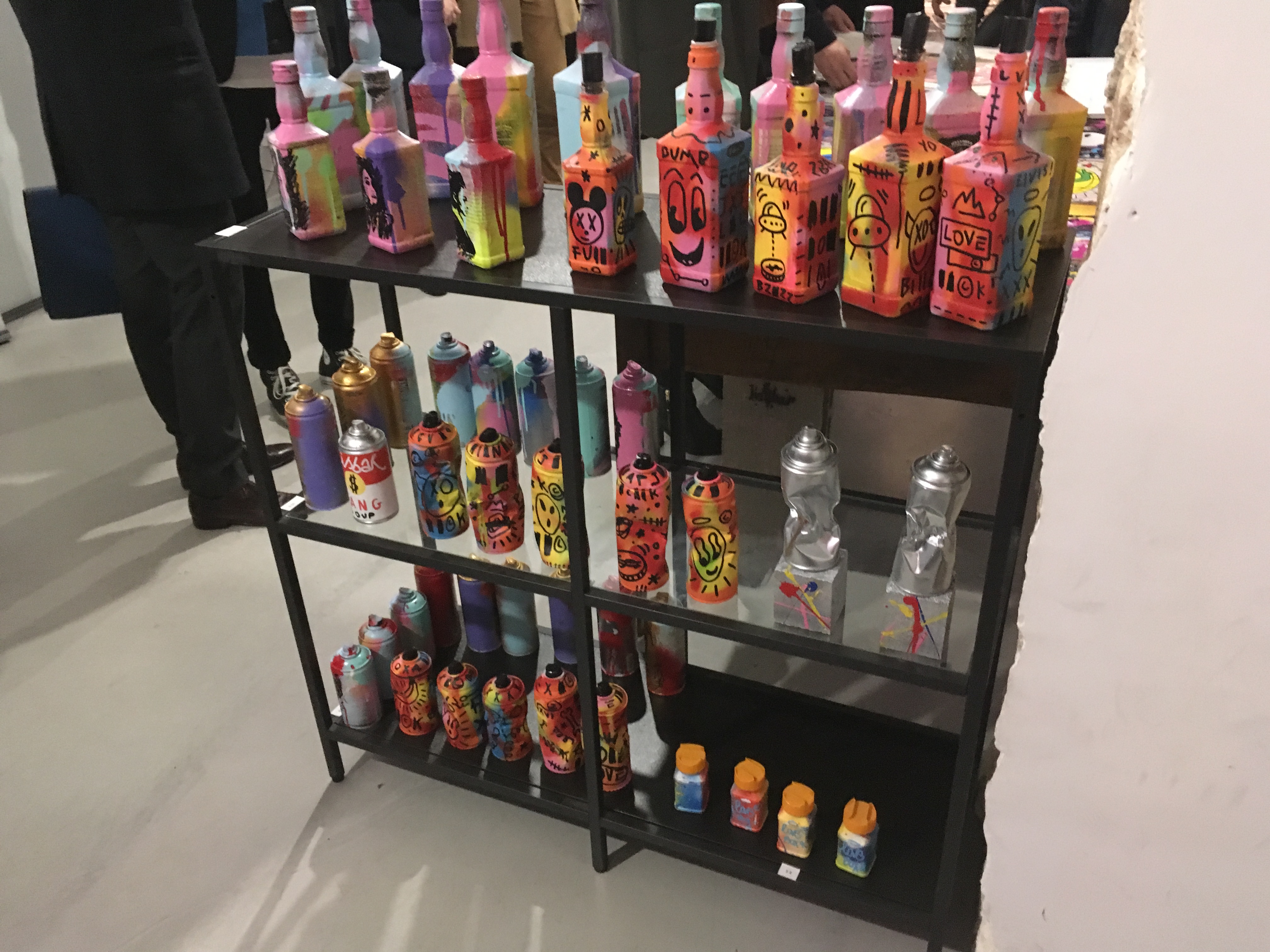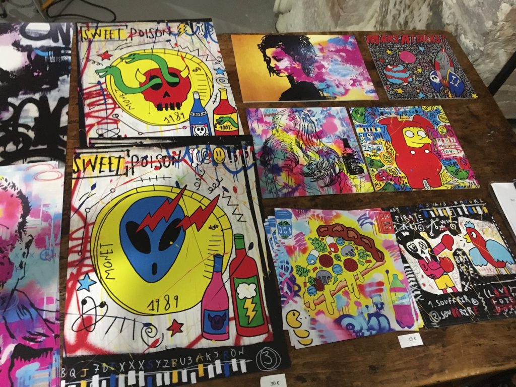 Elle propose des oeuvres aux tarifs ateliers, et autant vous dire celles-ci vont partir très vite. On peut par exemple parler des bouteilles de Jack Daniel’s customisées à 25€, les bombes de peintures customisées dans les mêmes prix et quelques prints entre 15 et 50€. Côté toiles, elles sont vraiment très abordables (à partir de 300€).