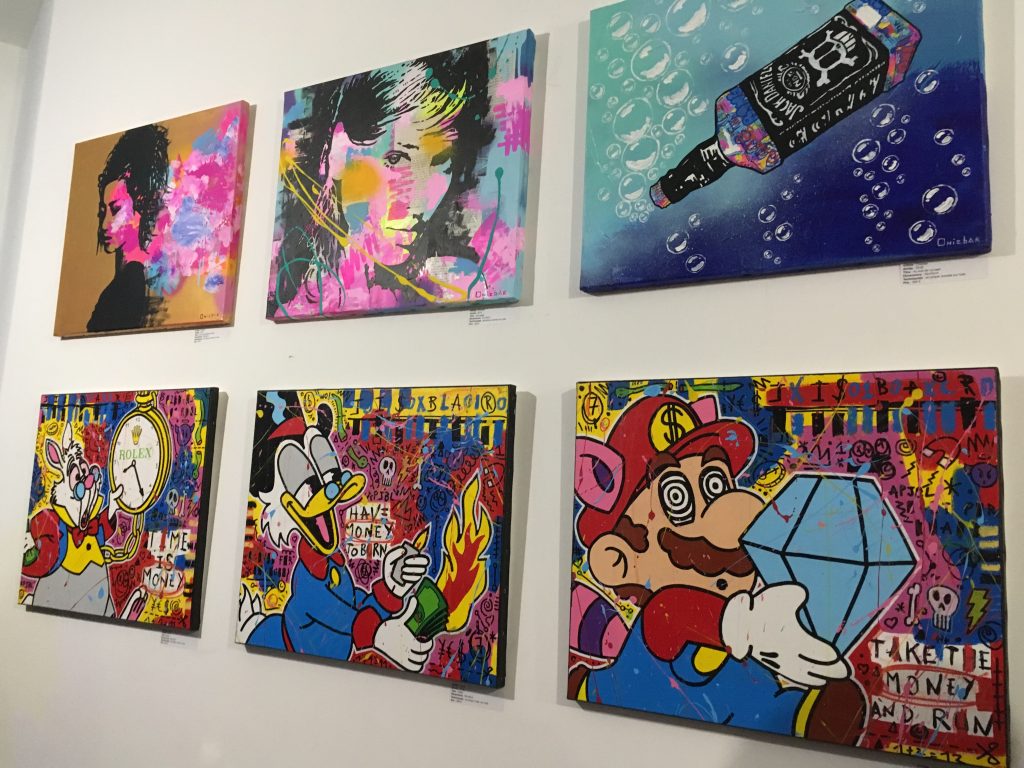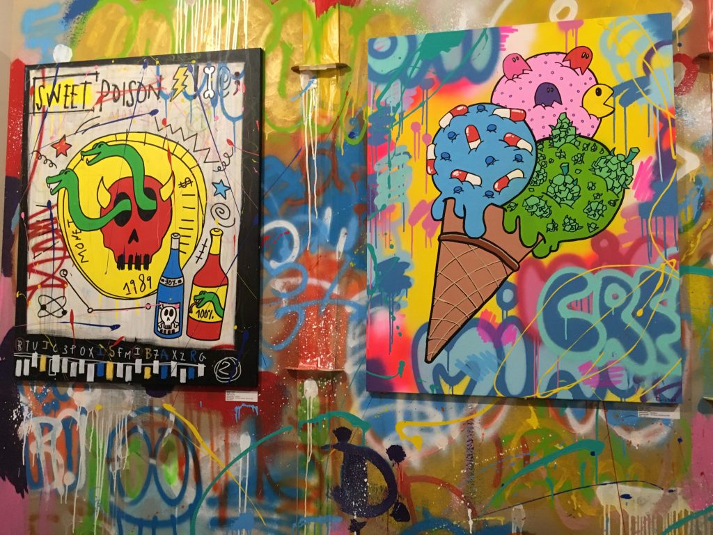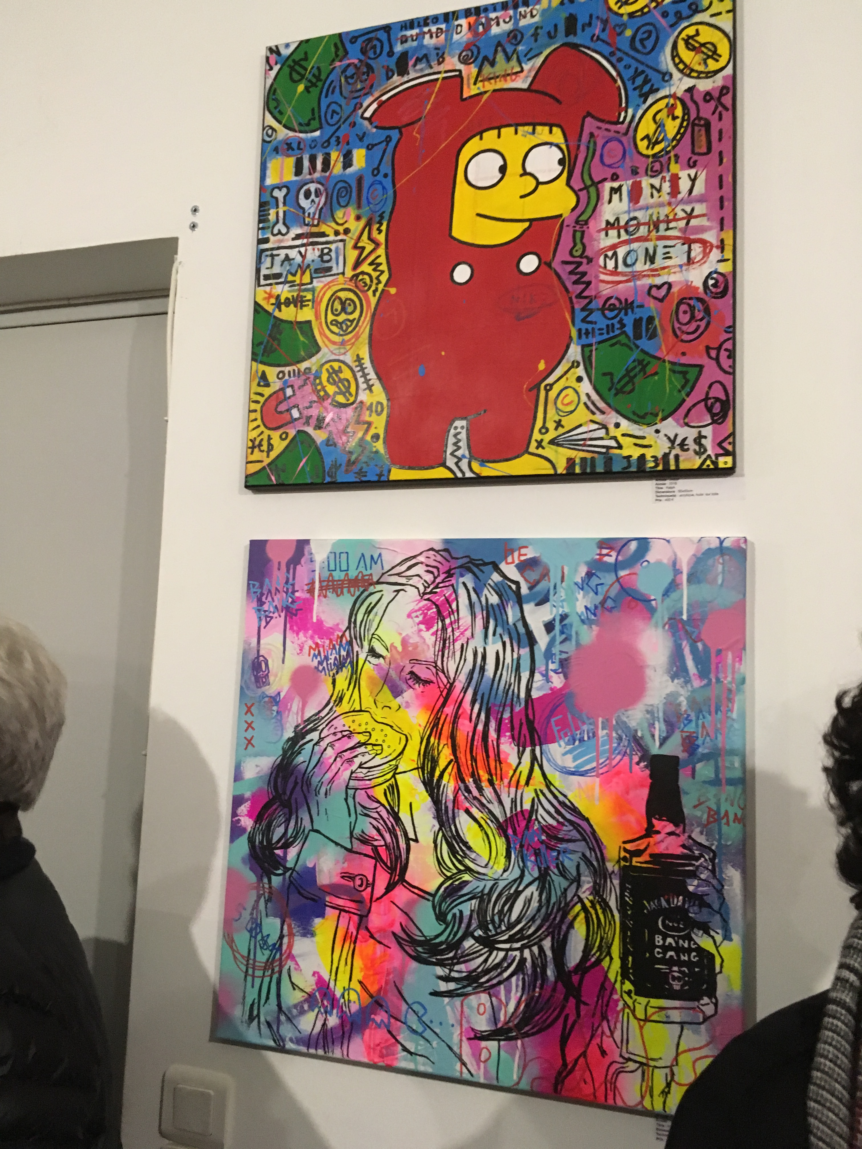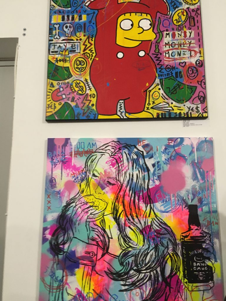 Les deux loustics membres du Bang Gang Clan se sont inspirés des Contes de la folie ordinaire de Charles Bukowski. Cette exposition est exceptionnelle sur bien des aspects. Visuellement, on est bombardé de couleurs pop. Entre le style de Jisbar qui s’amuse à détourner la pop-culture et Onizbar qui fait pas mal usage de la bombe, nous sommes plongés dans la folie du crew.
