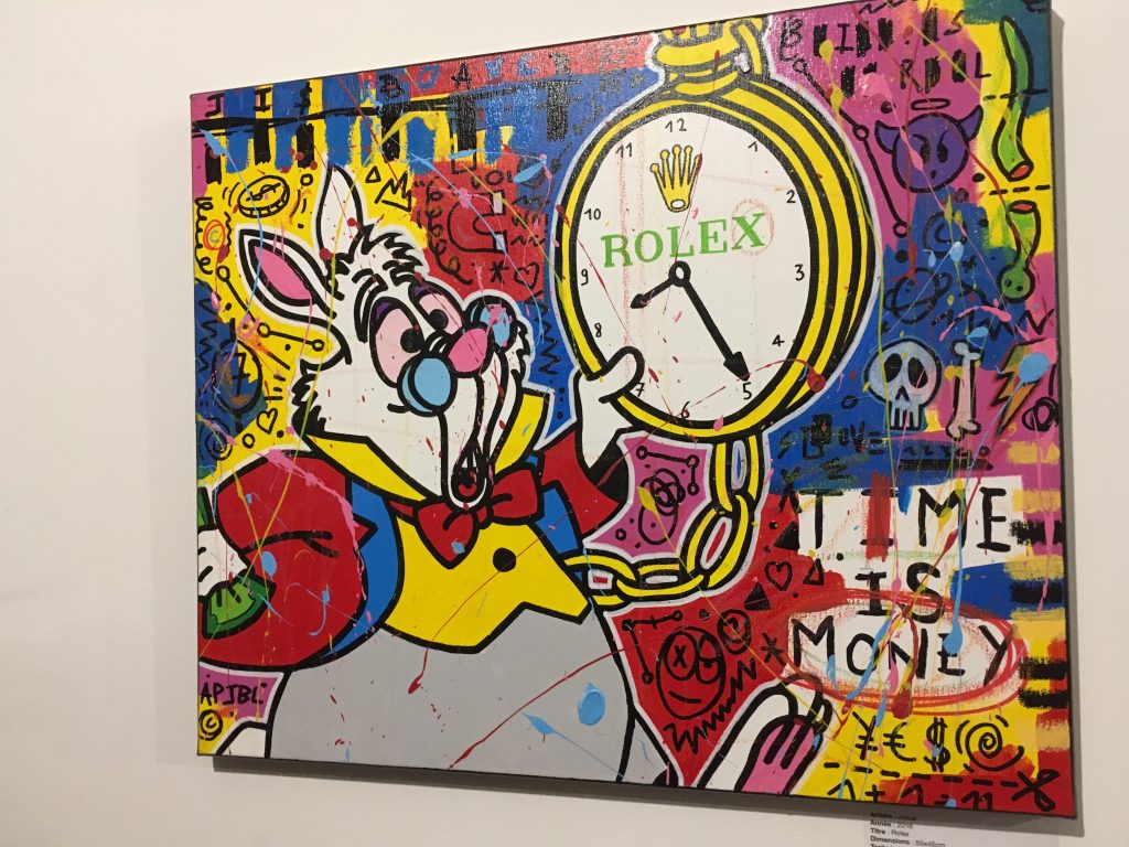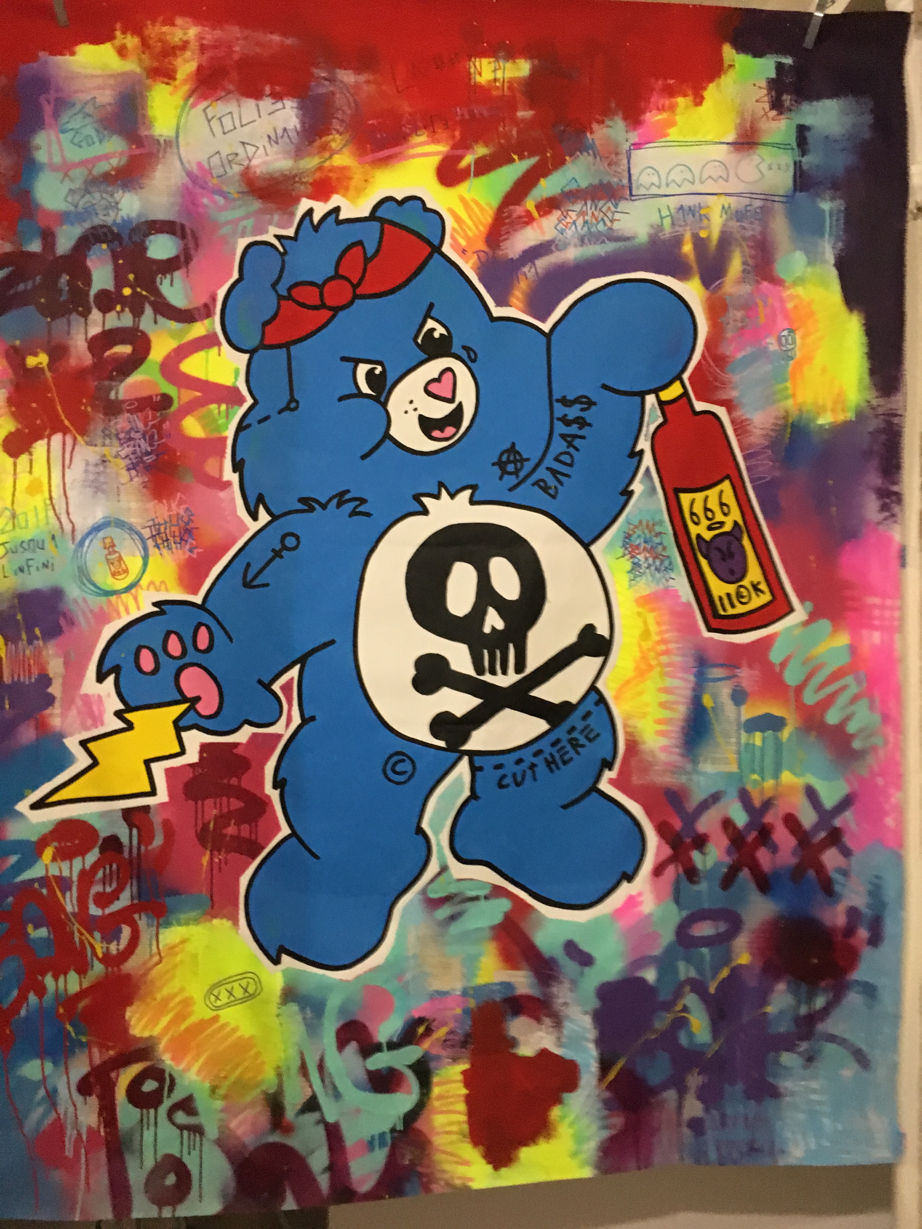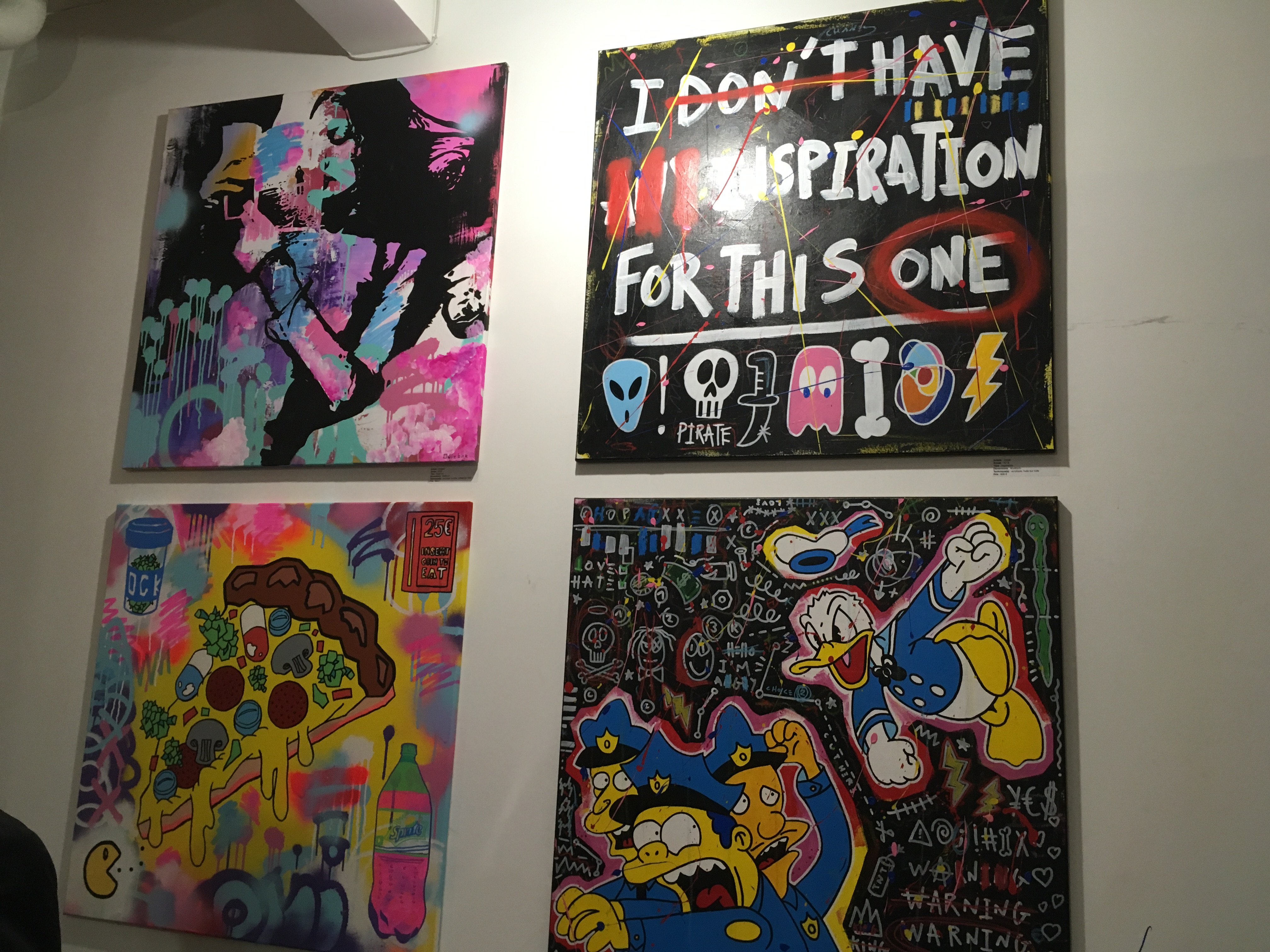 Les deux loustics membres du Bang Gang Clan se sont inspirés des Contes de la folie ordinaire de Charles Bukowski. Cette exposition est exceptionnelle sur bien des aspects. Visuellement, on est bombardé de couleurs pop. Entre le style de Jisbar qui s’amuse à détourner la pop-culture et Onizbar qui fait pas mal usage de la bombe, nous sommes plongés dans la folie du crew.