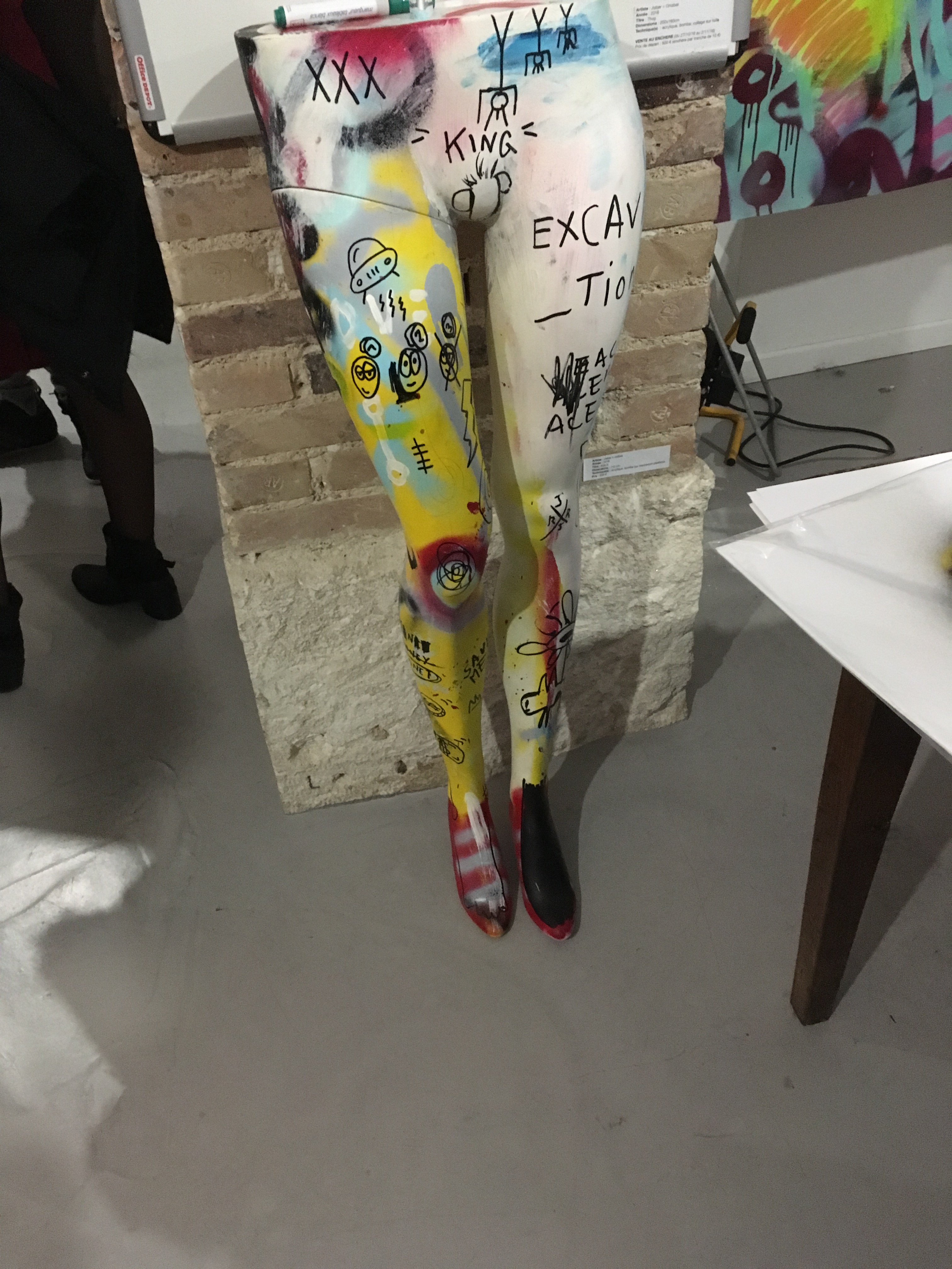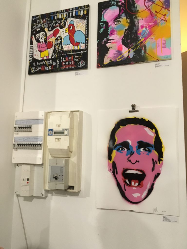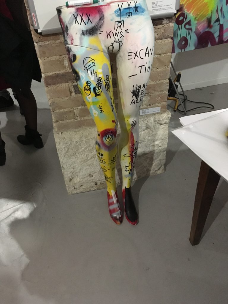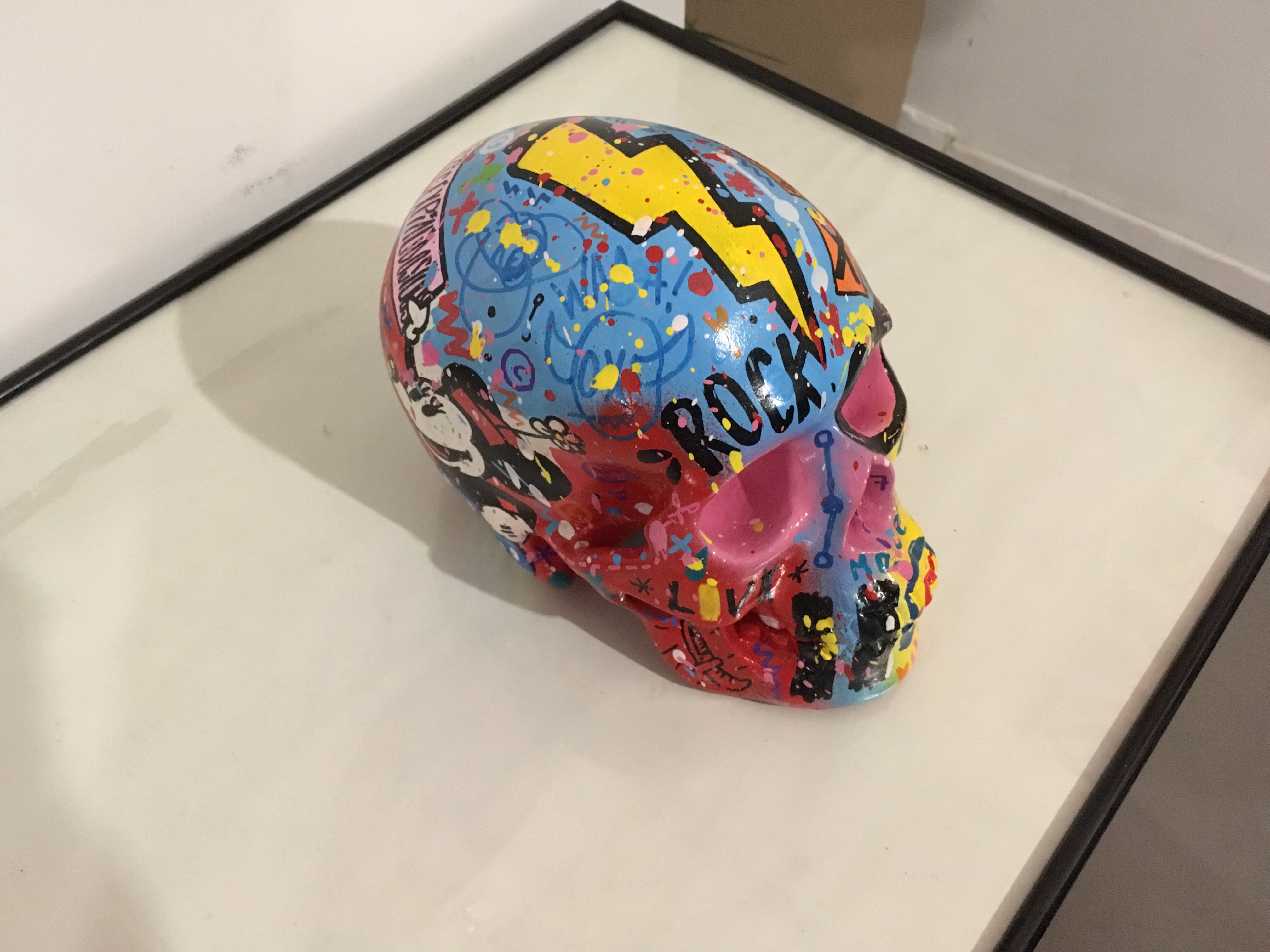 On a aussi pu voir un crâne humain customisé, une holobox avec un hologramme ainsi que le bas d’un mannequin en plastique. Enfin une toile géante de 160*220cm était exposée et mise aux enchères jusqu’à la fin de l’exposition qui ne dure qu’une petite semaine.
