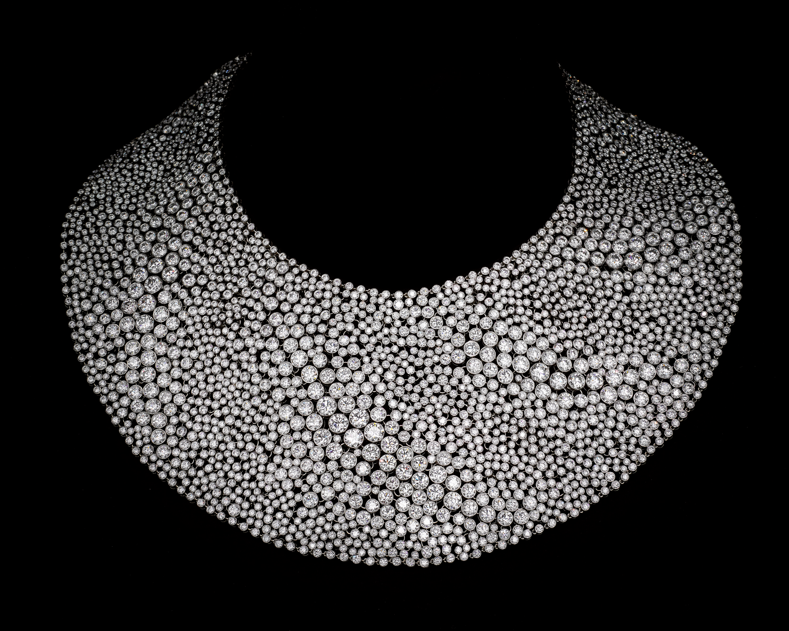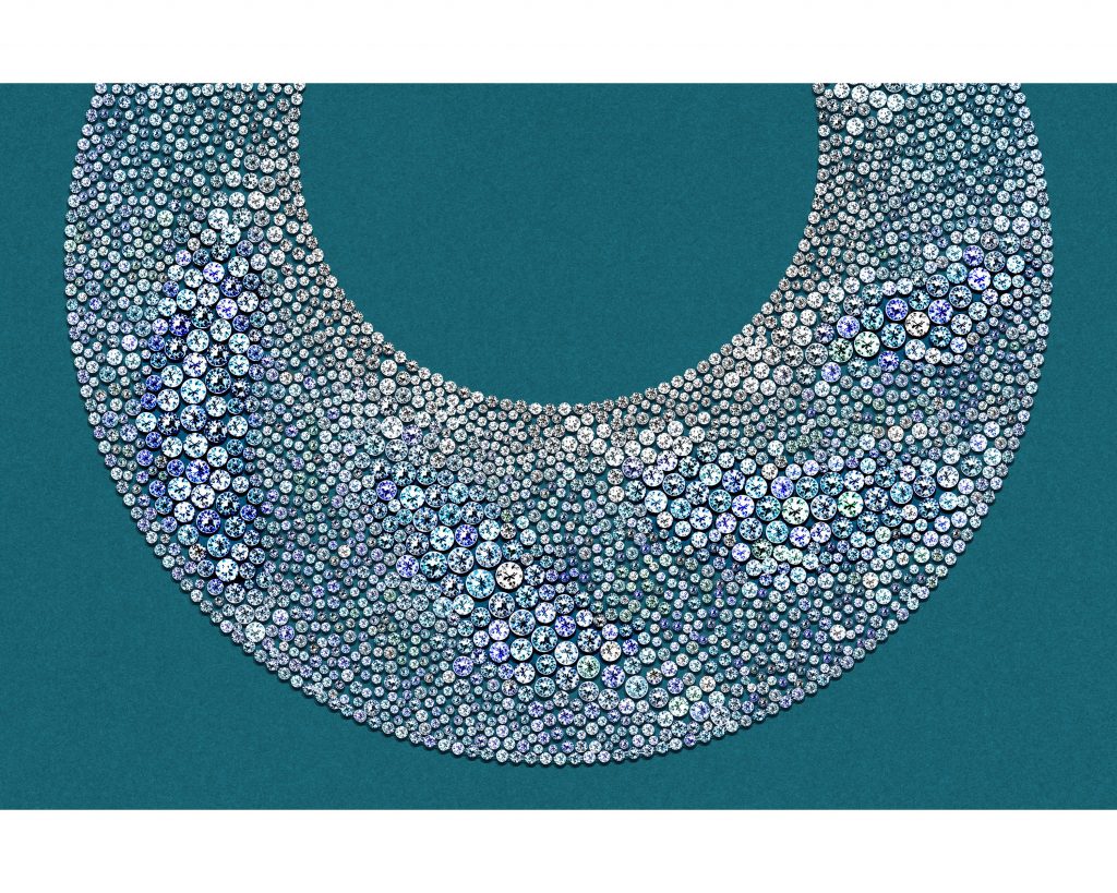 Les artisans Tiffany ont transformé plus de 3 000 diamants taille brillant sertis clos en un collier de platine qui brille comme l’eau sous la pleine lune. Liés par 10 000 connexions qui ont demandé plus de 1 000 heures de travail, le collier encercle le cou avec une fluidité gracieuse permettant à sa propriétaire de se voir, ainsi que le monde qui l’entoure, dans une toute nouvelle lumière.