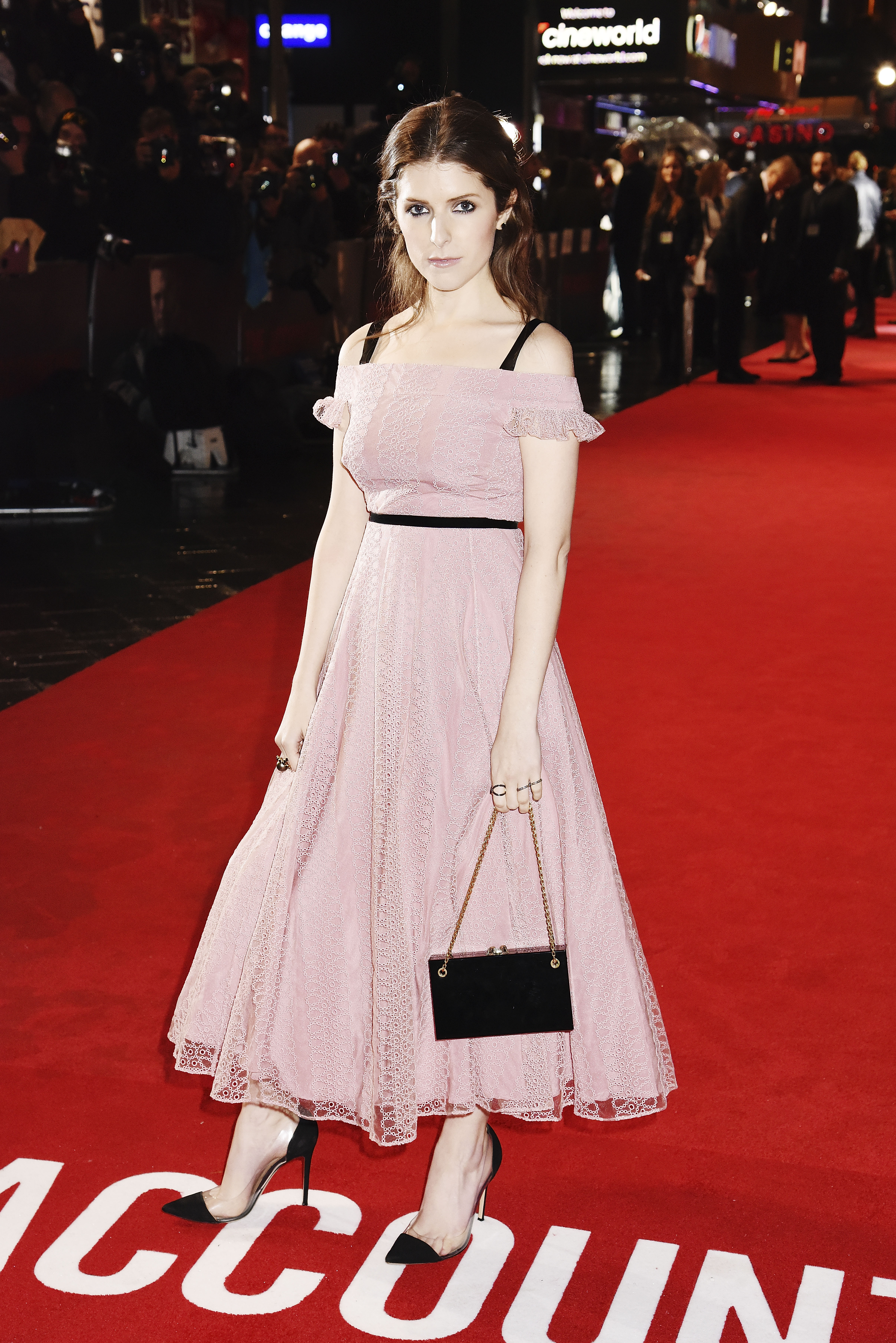 L’actrice Anna Kendrick portait elle une robe Burberry rose à la Première de ‘The Accountant’ à Londres hier soir.