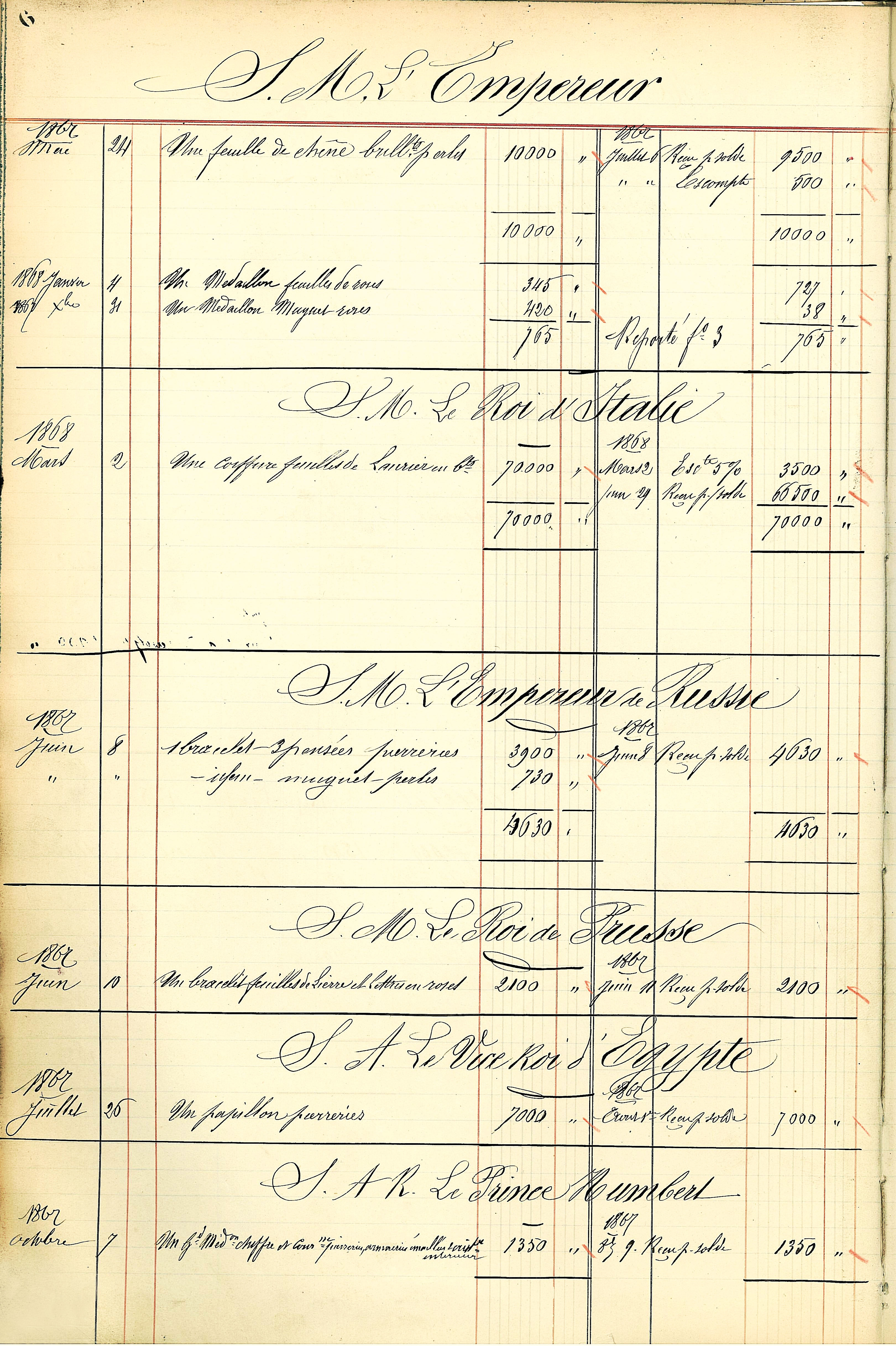 La clientèle de Mellerio à cette époque est exceptionnelle: l’empereur Napoléon III et l’impératrice Eugénie, la princesse Mathilde, toutes les grandes familles et les Cours de France et d’Europe, mais aussi des écrivains, compositeurs, actrices et demi-mondaines… Les commandes sont très nombreuses et fréquentes comme en témoignent les précieuses archives conservées par la famille.