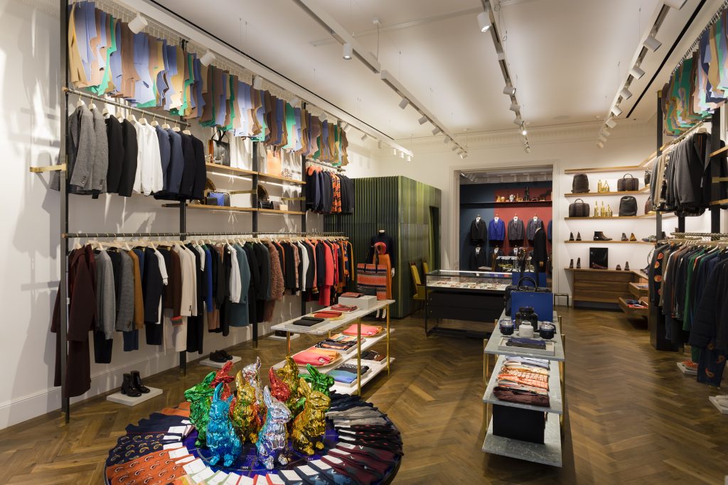 Cette nouvelle boutique propose une sélection de prêt-à-porter, chaussures, et accessoires pour homme et pour femme de la ligne Paul Smith. Elle met à l’honneur les pièces phares de la saison telles que le costume « A SuitToTravel In », les sacs Concertina, ainsi que l’imprimé « Dino ».