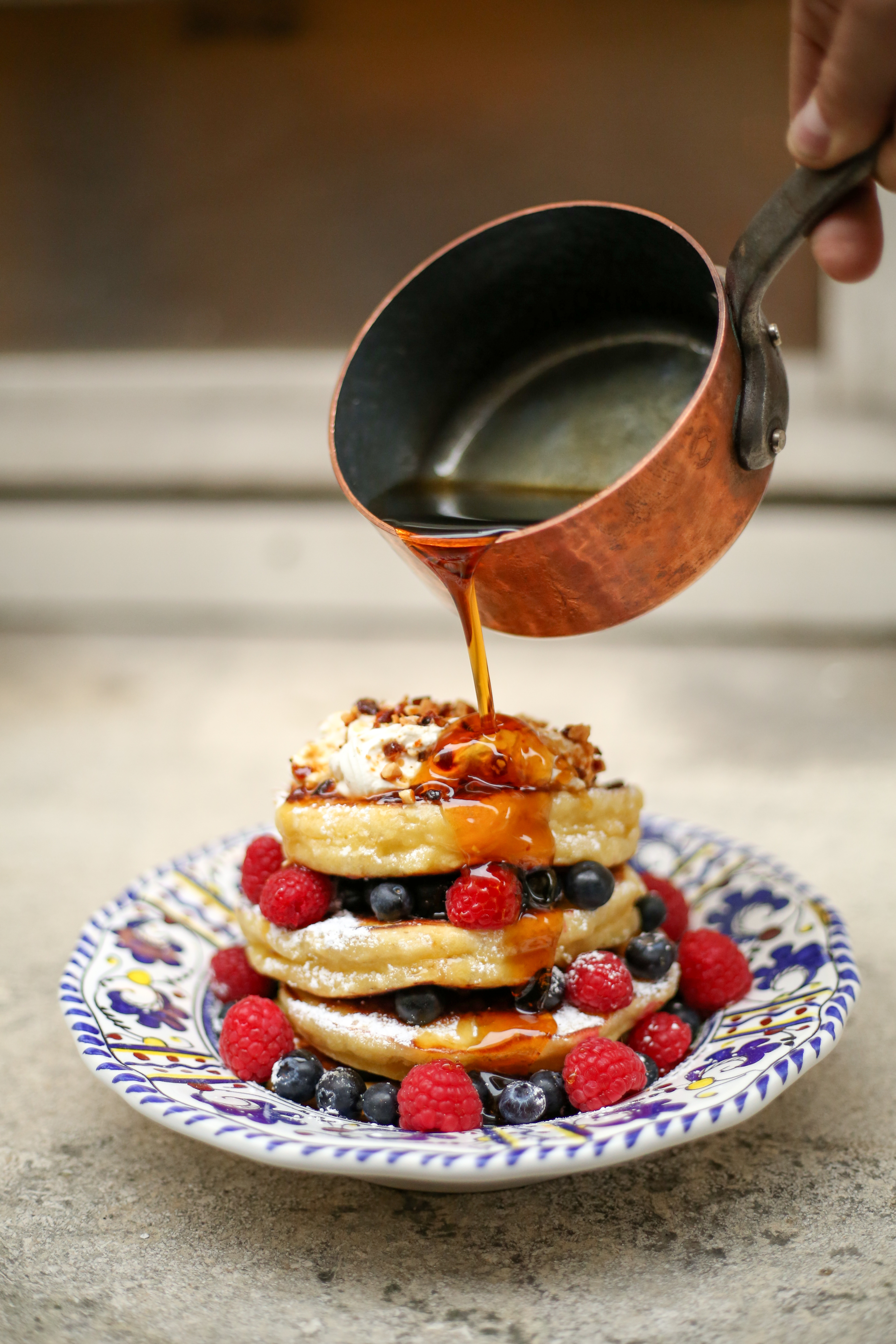 Comme on est au cœur du Marais, on s’est dit qu’on pourrait être ouvert toute la journée avec un service all-day long. Du coup, on s’est éclaté à cuisiner une carte de brunch avec notamment des pancakes maxi moelleux à la ricotta de bufflonne et aux myrtilles, des grosses brioches réconfortantes pour le matin au gianduja ou au citron d‘Amalfi, des œufs benedict à la Fiorentina ou une omelette à la truffe noire du Molise. Côté café, on torréfie des cafés brésiliens et guatémaltèques, et on a récupéré une magnifique machine Belle Epoque en Italie.