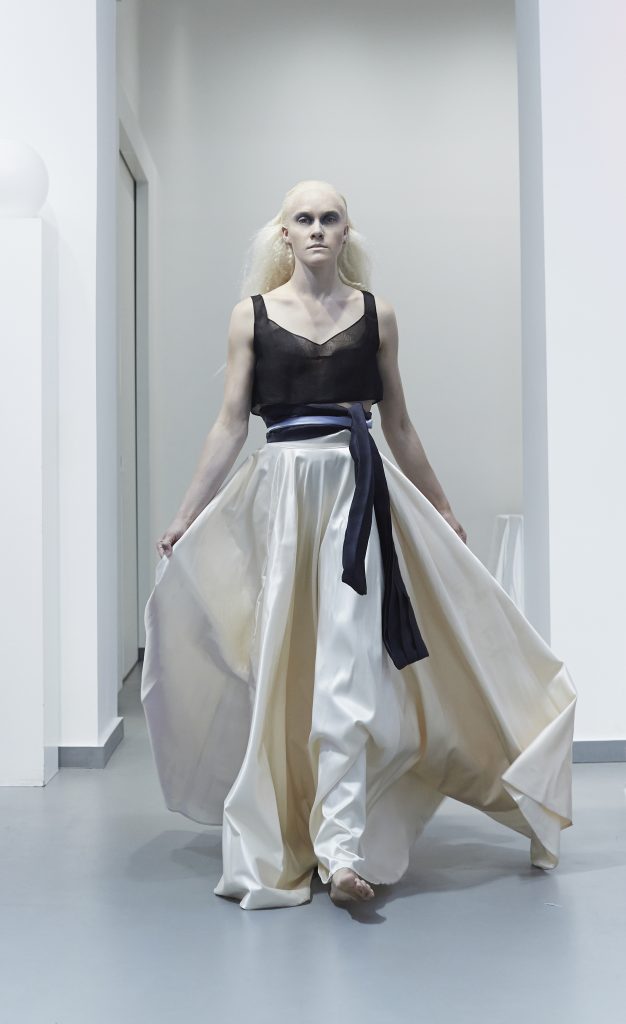 Les volumes et les rythmes, mais aussi les techniques créant de nouveaux jeux visuels telles que des effets de lévitation, des trompe-l’œil, par des jeux de lumières ou encore des plissés incarnent cette balance entre modernité et raffinement.Les silhouettes semblent défier les lois de la gravité.