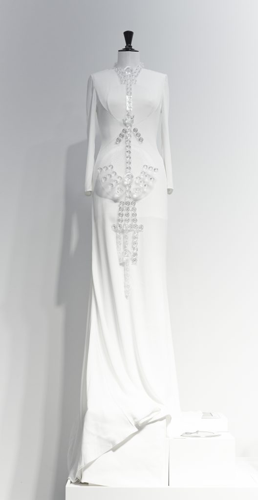 Le vêtement, à travers la déesse de la Victoire de Samothrace, sous la forme d’une femme ailée, incarne la diversité des possibles. L’universalité, prônée par la présence des attributs féminins se mêlant à une imposante force, contribue à la transversalité des genres et de la création.
