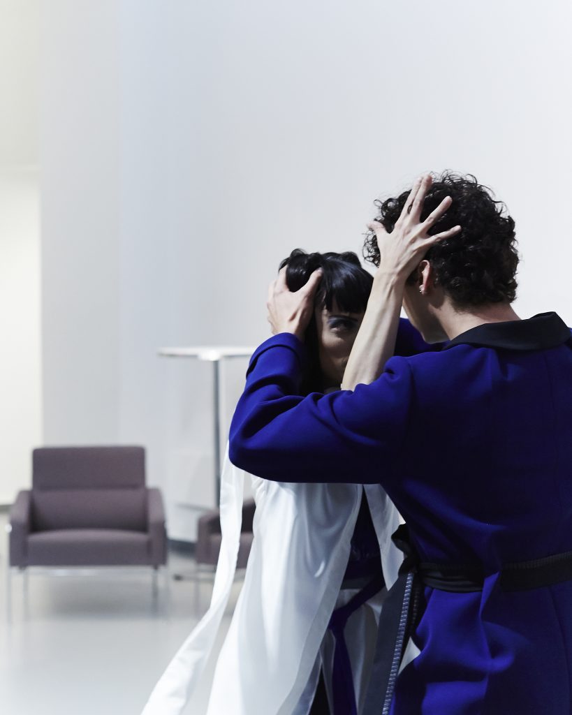 Les couleurs oscillent dans un clair-obscur spatial, des camaïeux tons-sur-tons, électrisés par le bleu indigo, le rouge sombre et des touches de métallisé.