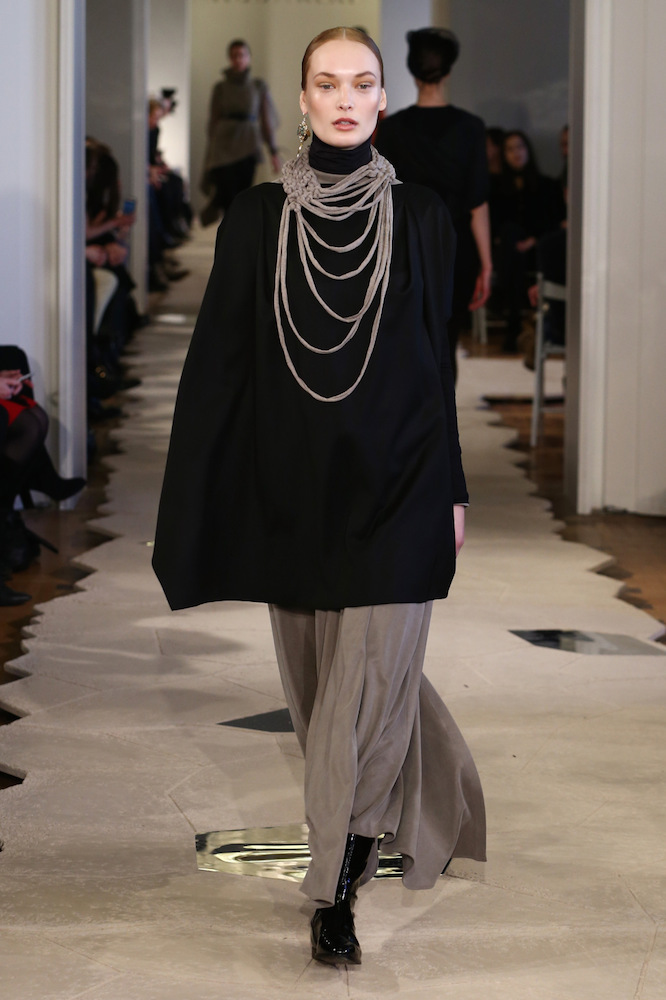 Pour l’hiver 2016, la créatrice Nobieh Talaei s’inspire de ses origines iraniennes et nous propose de revêtir une cape en mohair, reprenant les codes du vestiaire nomade.