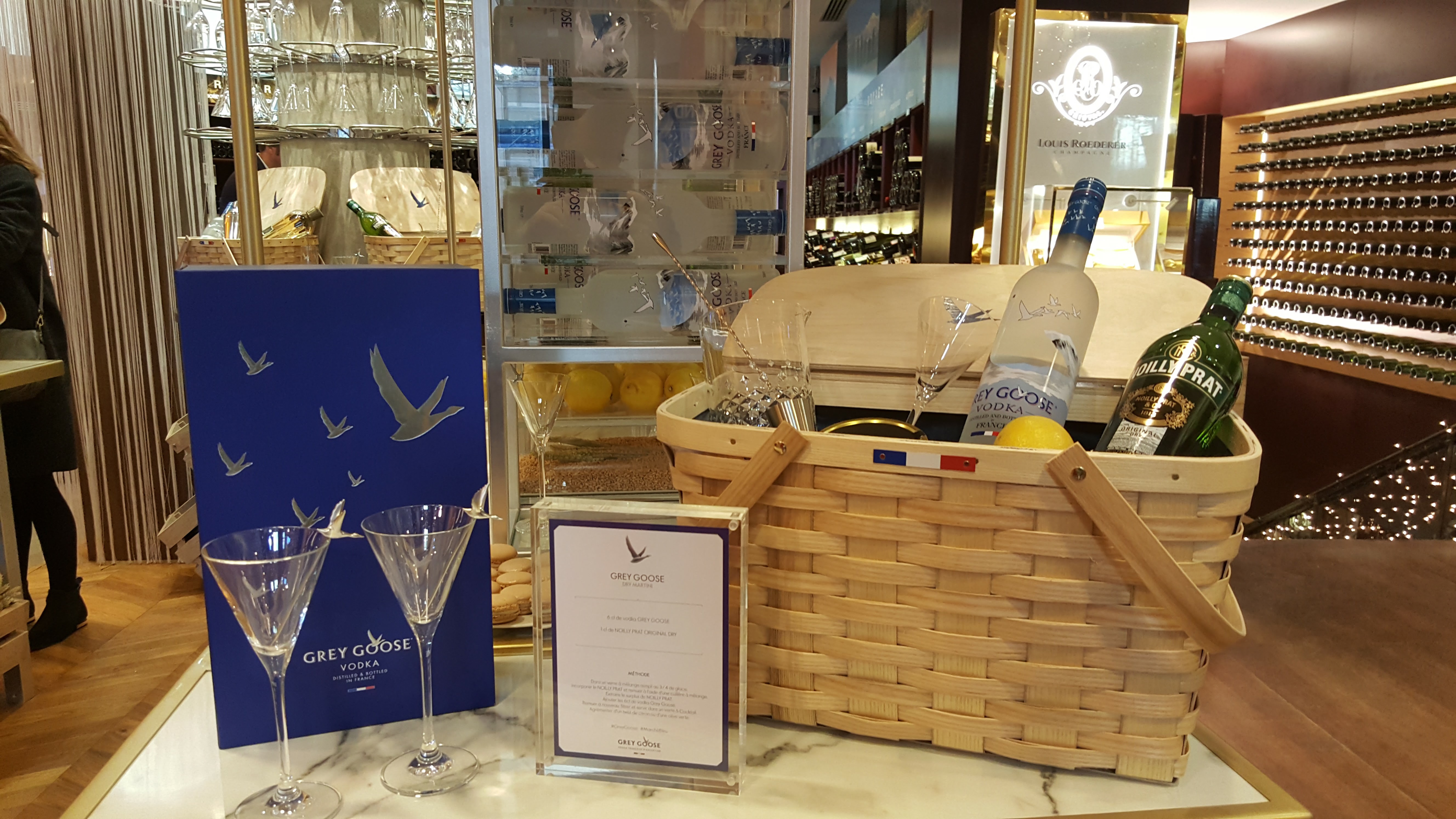 Pour la première fois, GREY GOOSE propose aux consommateurs une expérience unique pendant plus de 3 semaines à Paris avec le Marché Bleu, chez Lavinia. Vodka d’exception 100% française, GREY GOOSE prend toute sa dimension au travers d’une expérience atypique incarnant le meilleur du savoir-faire français. Chacun a ainsi l’opportunité de composer son panier de dégustation personnalisé : sélection de tous les ingrédients et accessoires pour réaliser les cocktails iconiques de la marque, accompagnés d’un assortiment de spécialités françaises.