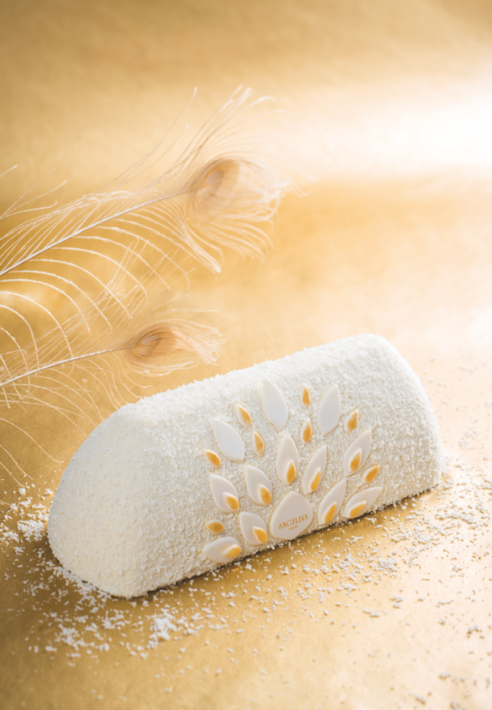 Home Food and WineGastronomieBûche Maison Angelina, la majesté du paon blanc