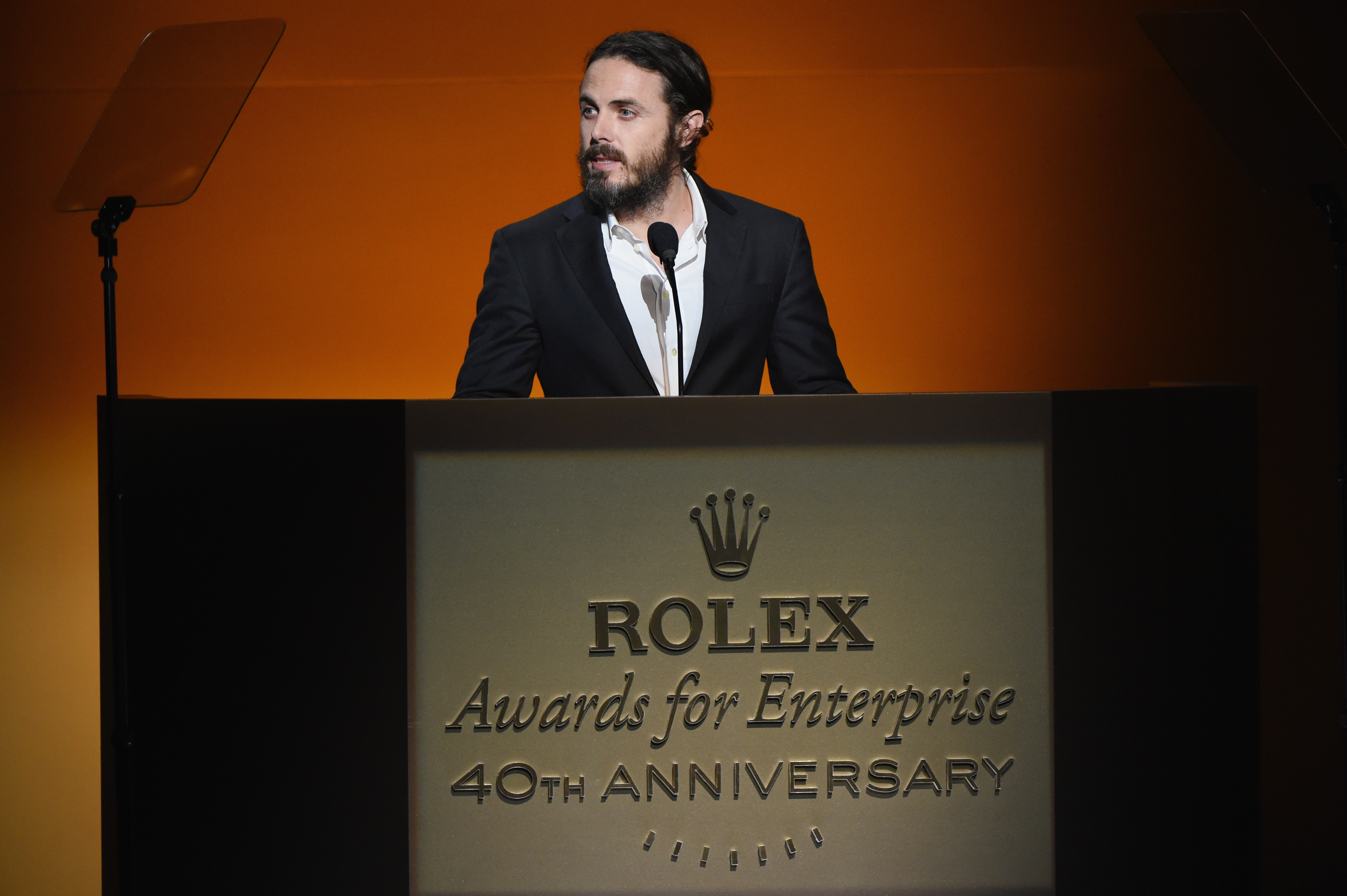- HOLLYWOOD, CA – NOVEMBER 15: Actor/presenter Casey Affleck speaks onstage during the 2016 Rolex Awards For Enterprise at the Dolby Theatre on November 15, 2016 in Hollywood, California. (Photo by Michael Kovac/Getty Images for Rolex Awards for Enterprise )