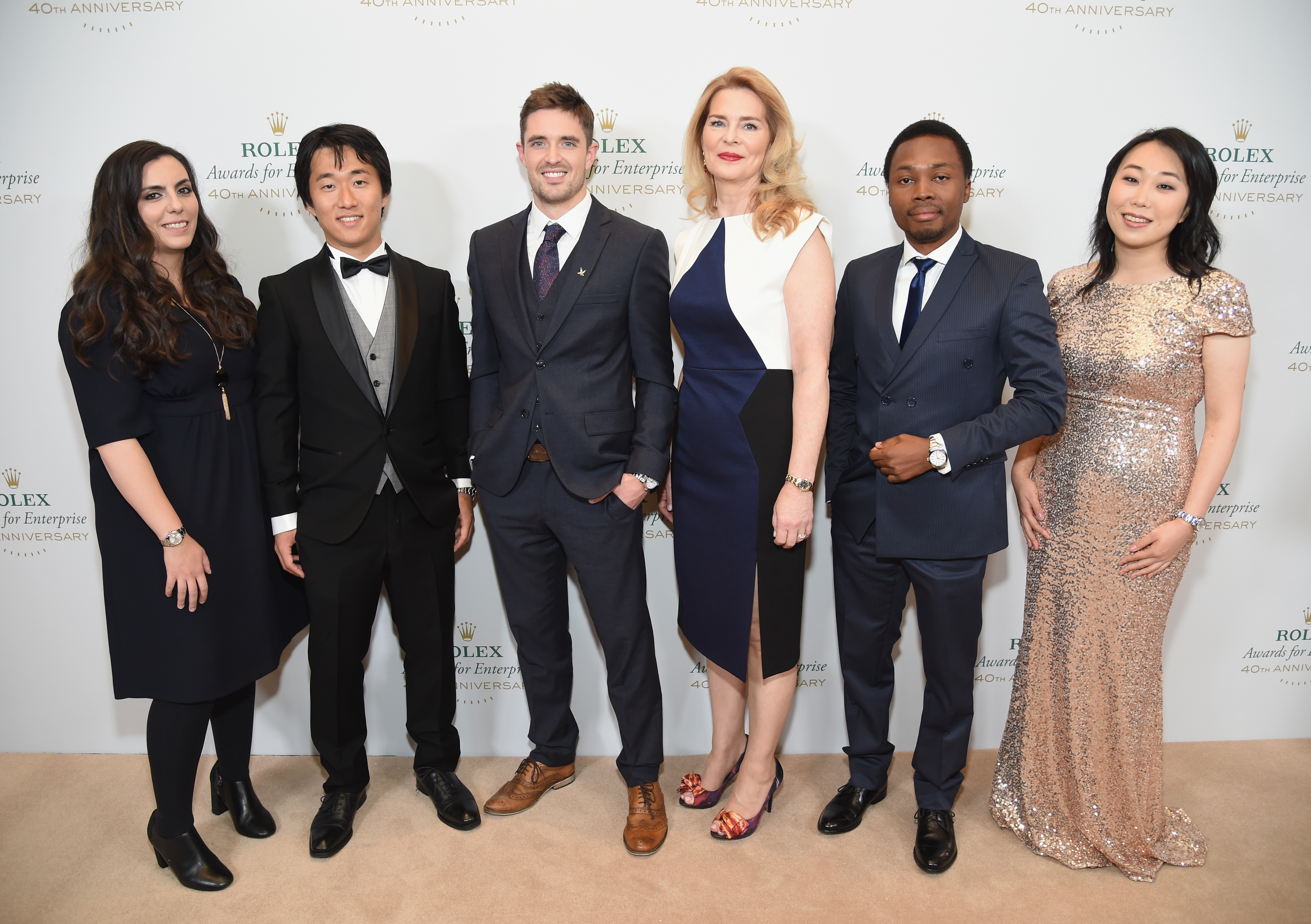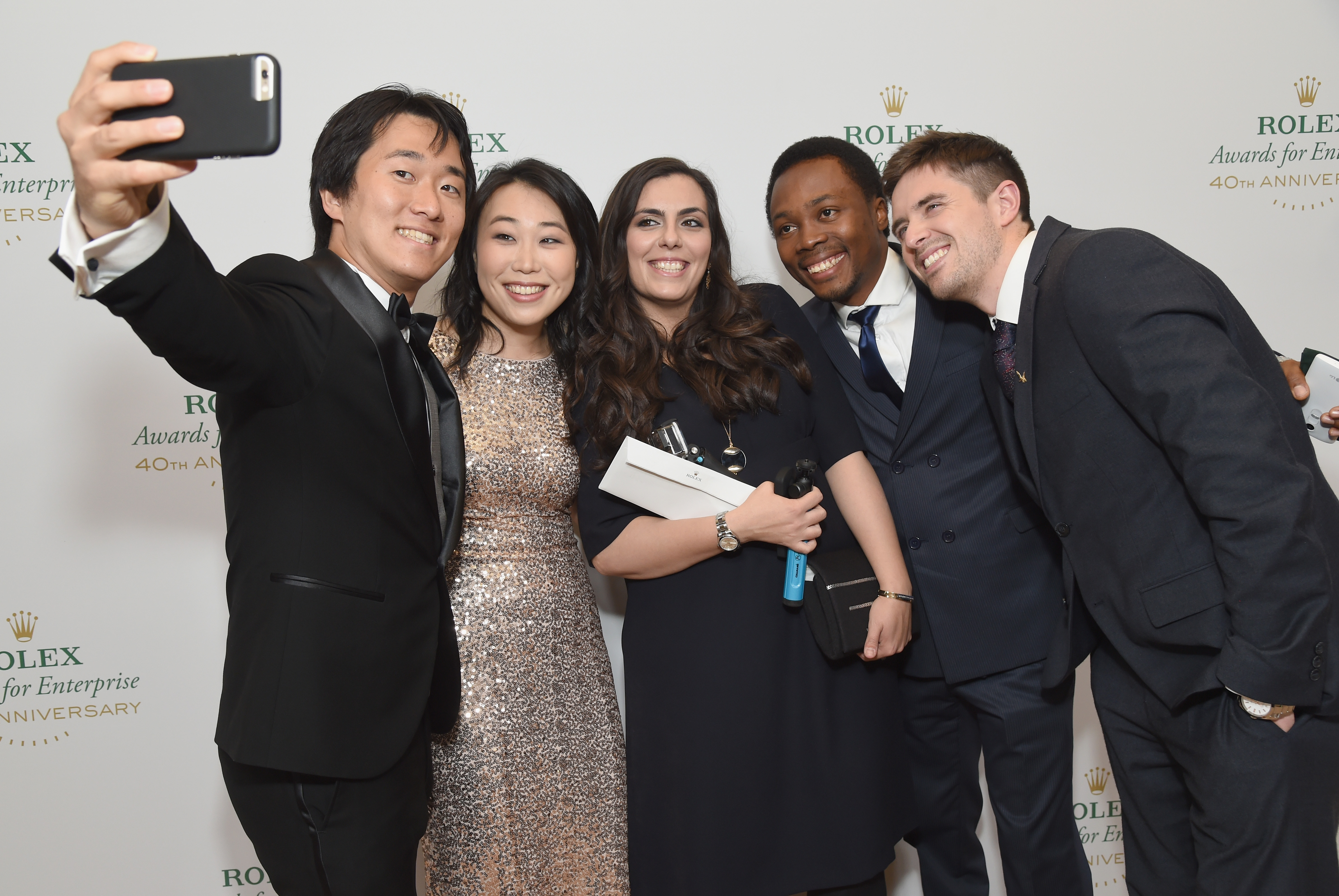 - HOLLYWOOD, CA – NOVEMBER 15: Young Laureates (L-R) Junto Ohki, Christine Keung, Sarah Toumi, Oscar Ekponimo and Joseph Cook attend the 2016 Rolex Awards For Enterprise at the Dolby Theatre on November 15, 2016 in Hollywood, California. (Photo by Michael Kovac/Getty Images for Rolex Awards for Enterprise )