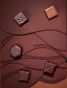 Afin de parfaire l’expérience, les bouchées chocolatées de la Collection Coffret Flamboyant encapsulent des fragrances de citron, de gingembre, de litchi, d’épices de Noël..