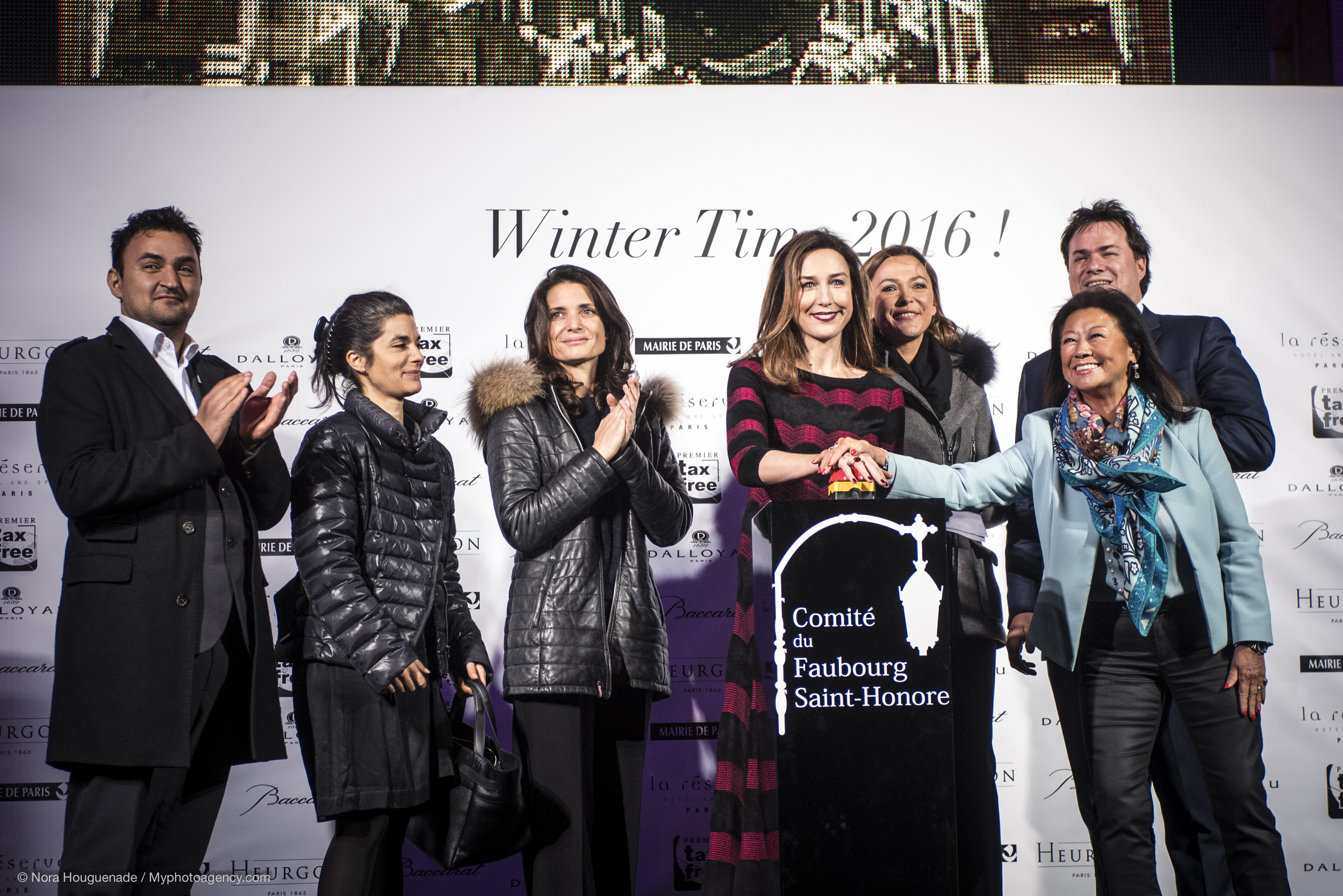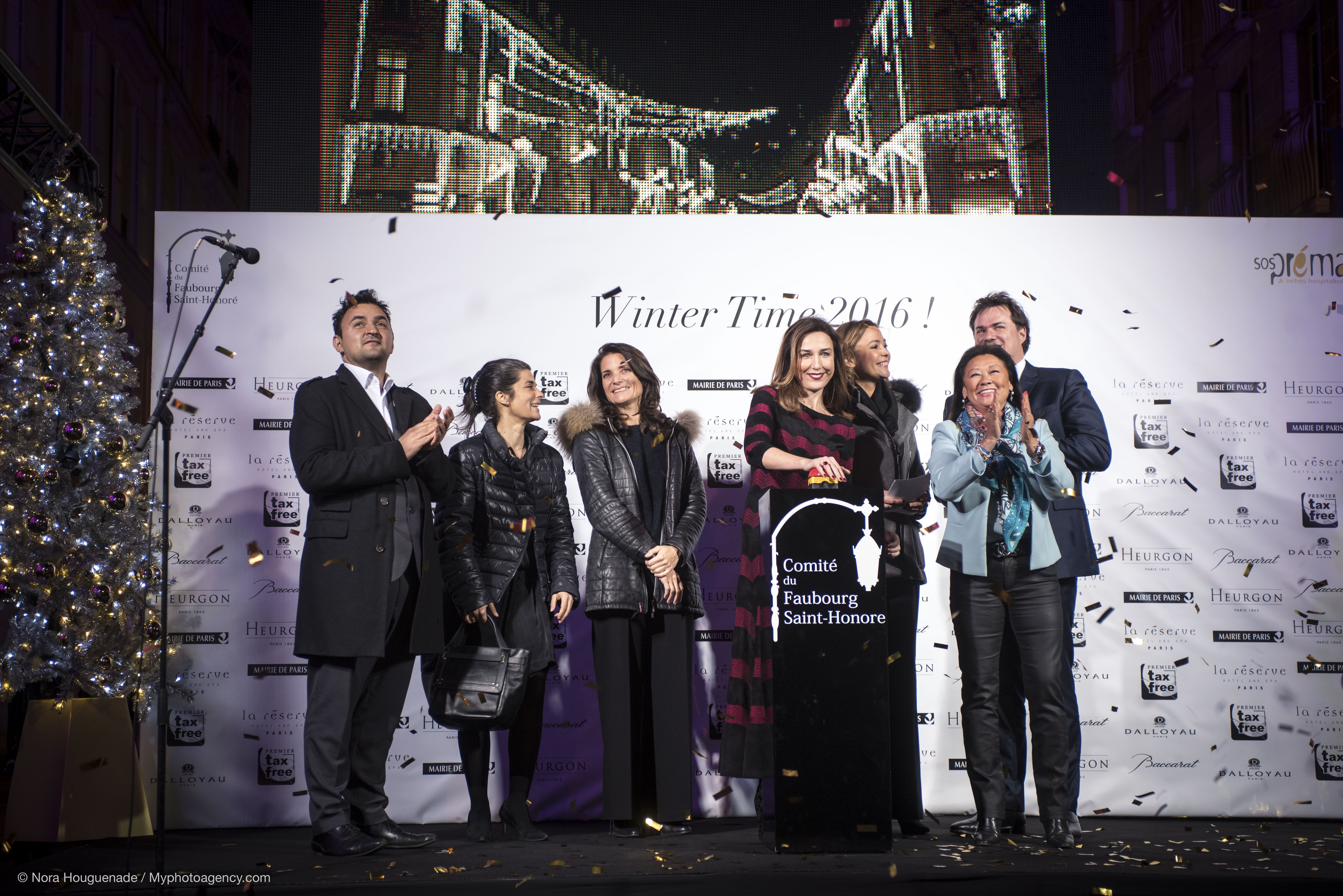 Les Illuminations de Noël du Comité du Faubourg Saint-Honoré « Winter Time 2016 » ont été inauguré le 17 novembre en présence d’Elsa Zylberstein, Marraine de la Winter Time 2016, de Benjamin Cymerman, Président du Comité, Jeanne d’Hauteserre, Maire du 8ème arrondissement, de Charlotte Bouvard, Présidente et fondatrice de l’Association, d’Olivia Polski, adjointe Mairie de Paris chargée du Commerce, de l’Artisanat, des Professions libérales et indépendantes et de Jean-François Martins, adjoint Mairie de Paris chargé du sport et du tourisme.