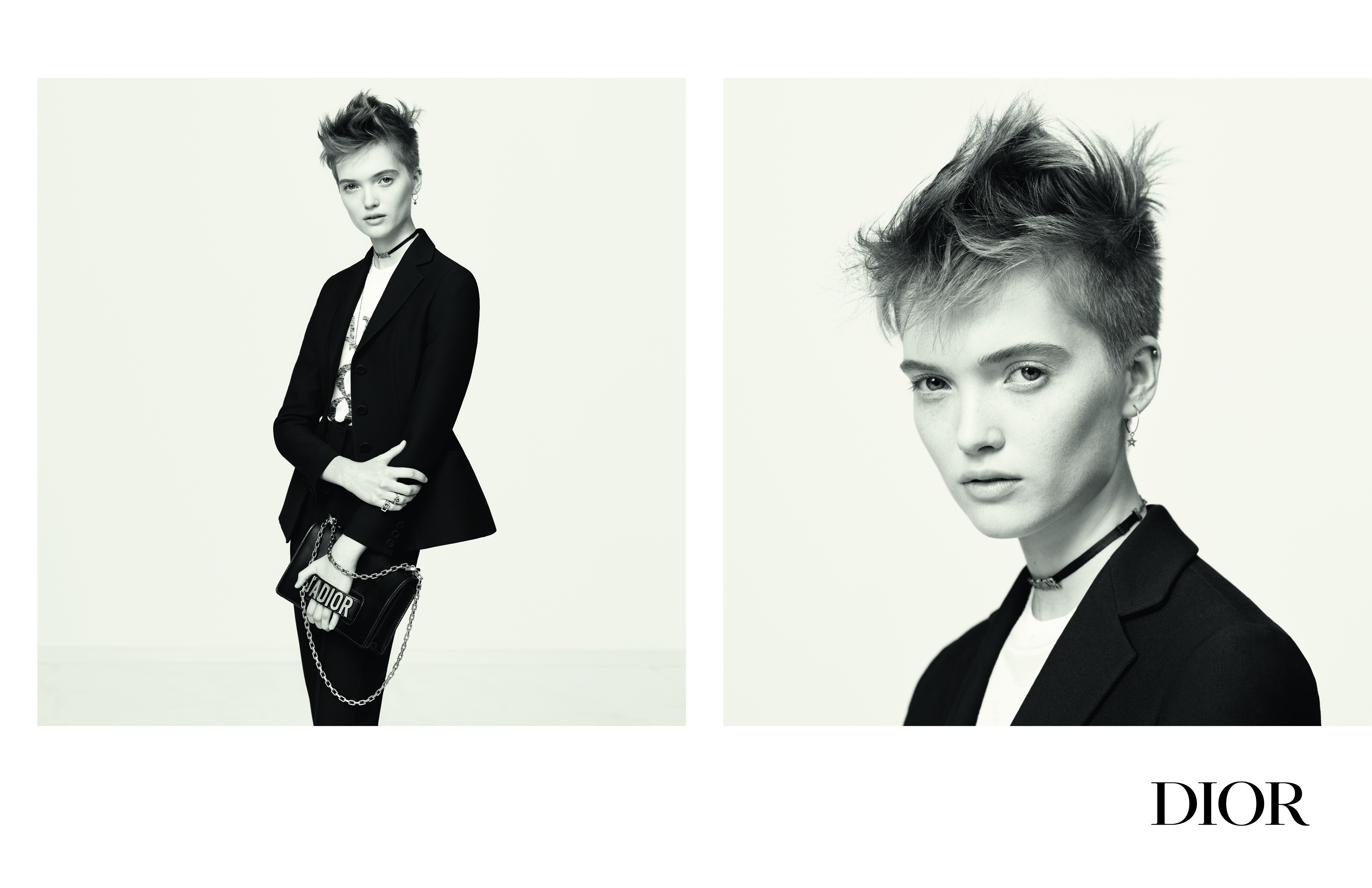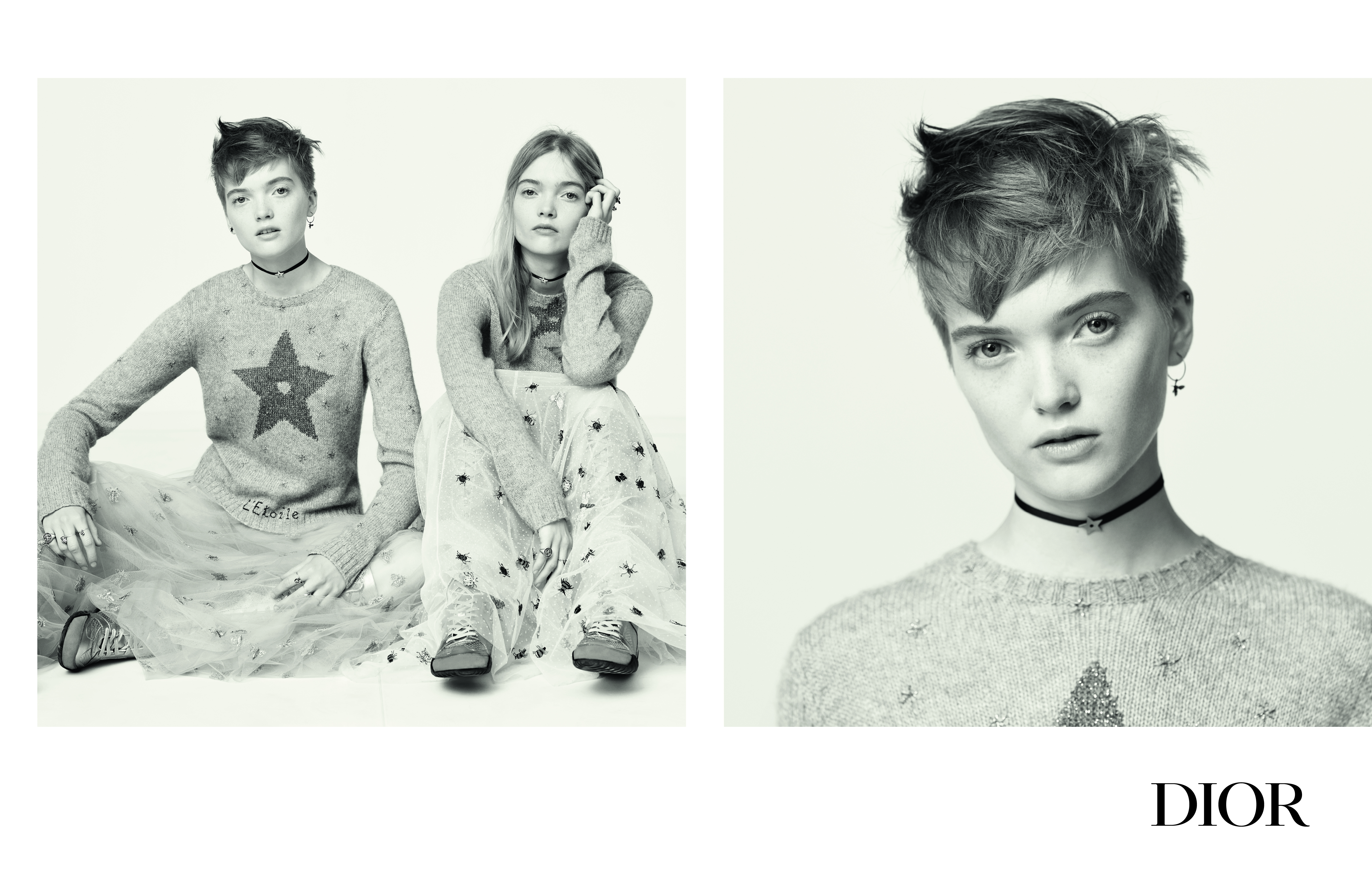 Dans une série de clichés à l’esthétique épurée, la photographe Brigitte Lacombe met en valeur les personnalités bien distinctes des sœurs jumelles pour illustrer la féminité dior selon Maria Grazia Chiuri. cette nouvelle campagne souligne ainsi une beauté moderne, au centre de laquelle est placée la femme. entre agilité sportive et sensualité, tantôt révélée par une robe du soir en tulle brodé ou par un ensemble inspiré de l’escrime, la féminité des deux mannequins se dévoile singulière et affirmée.