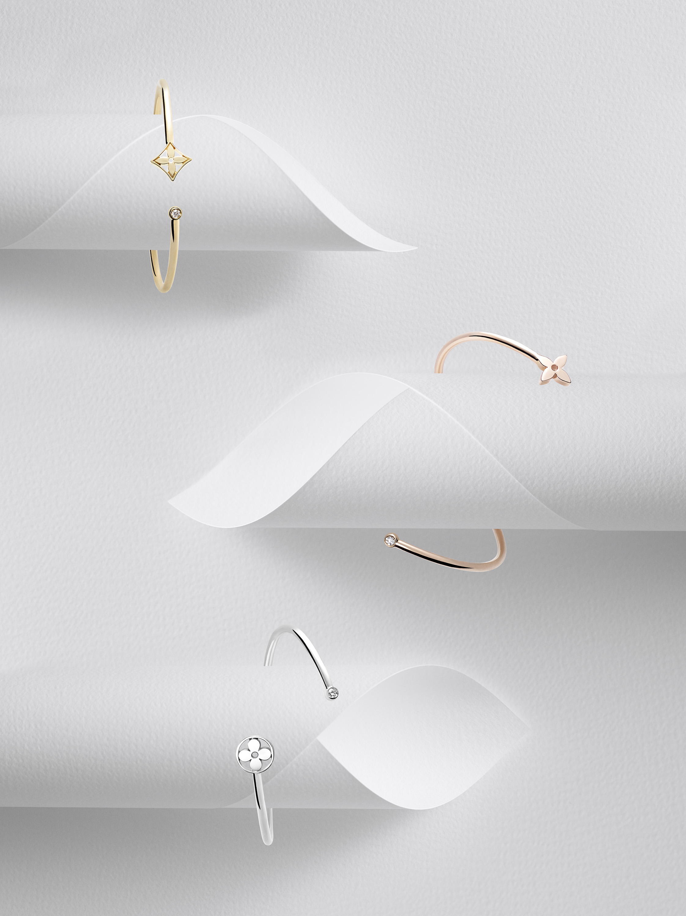 En manipulant ce bracelet, se révèle une extrême flexibilité. Il se tord, s’allonge et se vrille. Extrêmement souple, il s’enfile en un tour de main sans jamais se casser. L’effet mémoire : il reprend systématiquement sa forme initiale. Les fleurs de Monogram de la Maison Louis Vuitton se portent alors par une, par deux ou par dix, en mélangeant les couleurs d’or.