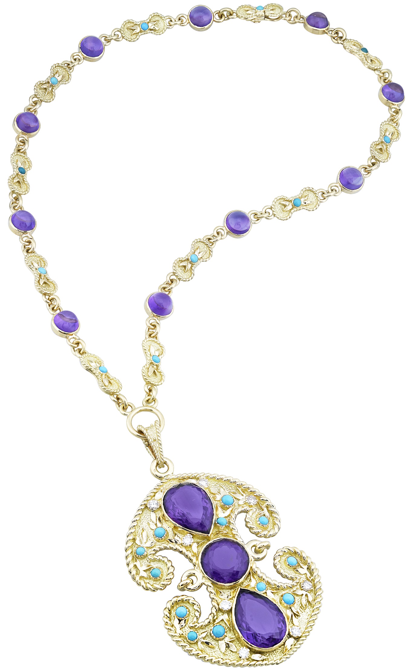 Ce mouvement a eu sa contrepartie culturelle qui a notamment gagné la mode et la joaillerie. Les robes corolles des années 1950 et 60 ont cédé la place aux tuniques et aux caftans. Sur ces vêtements le collier tour de cou n’a plus sa place. Le bijou vedette de cette époque est le sautoir. Elizabeth Taylor en commandera plusieurs chez Van Cleef & Arpels, notamment un modèle baptisé Ibiza en référence à l’île alors à la mode. Il est composé de corail, d’améthystes et de diamants montés sur or.  Un autre modèle exposé, baptisé Byzance, est composé d’améthystes et de turquoises serties sur or.
