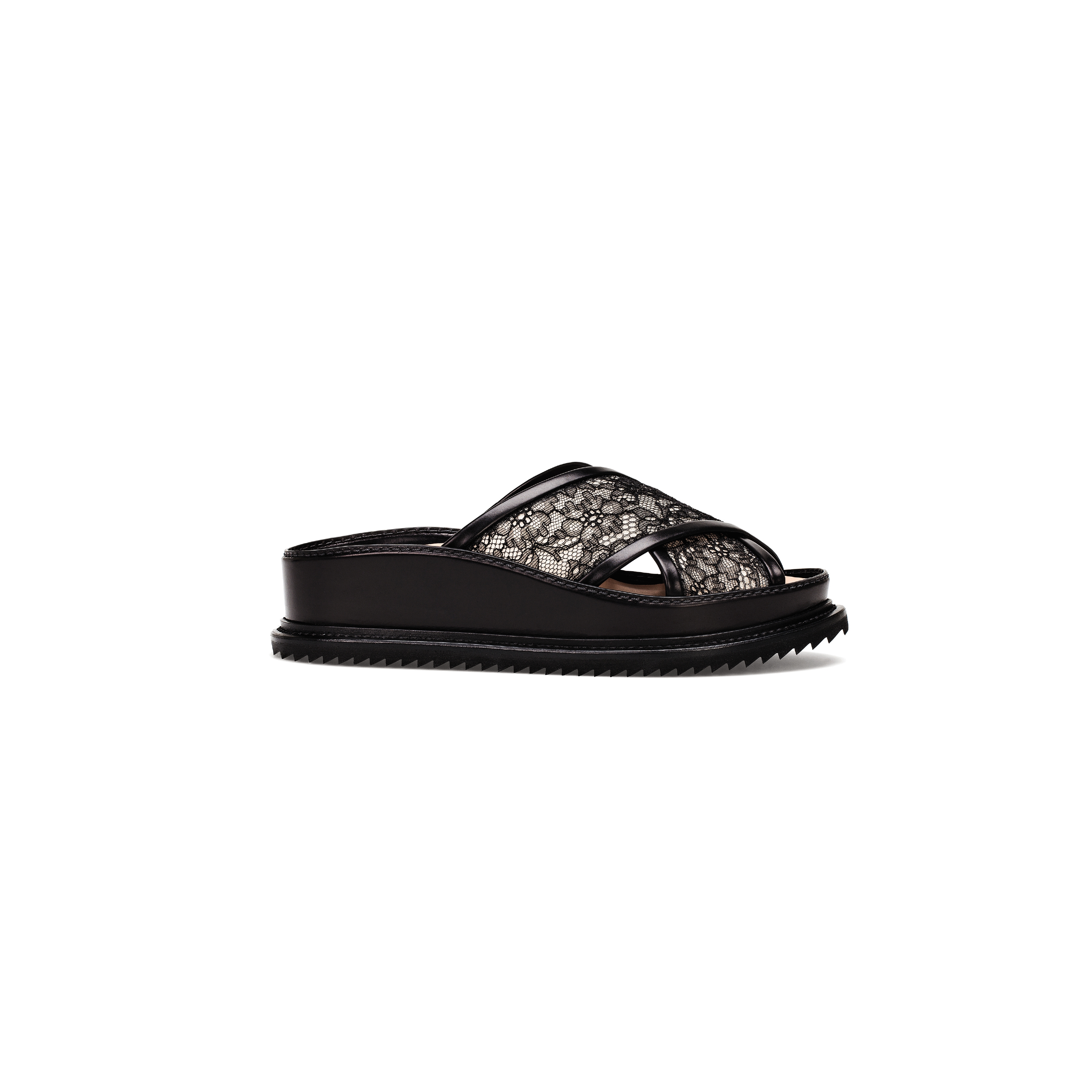 Mix parfait représenté avec des silhouettes au camouflage floral qu’on retrouve sur une robe asymétrique noire et voile de soie plissé