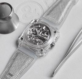 Toute en transparence grâce à son boîtier en saphir, la BR-X1 Chronograph Tourbillon Sapphire offre un spectacle magique en exposant au regard l’âme d’une montre unique en son genre.