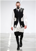 Loin d’être dématérialisés, les vêtements de Boris Bidjan Sabri renouent avec des matières brutes. Le designer les travaille au corps, et les fait passer de la pénombre vers la lumière ardente, et les confrontent aux flashs qui crépitent…Désormais son cuir transparent est breveté confirmant un savoir-faire artisanal qu’aucun androïdes ne simulera.
