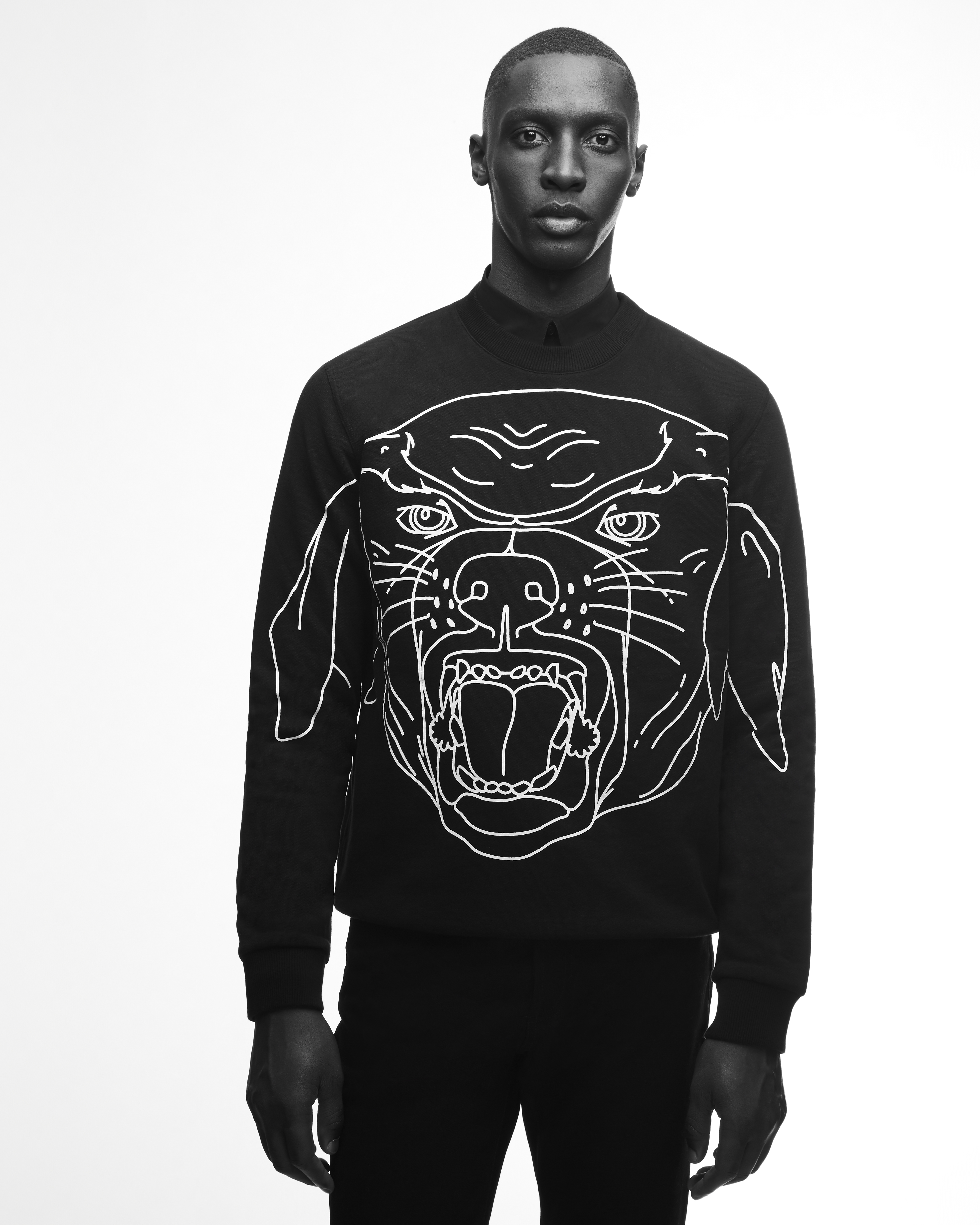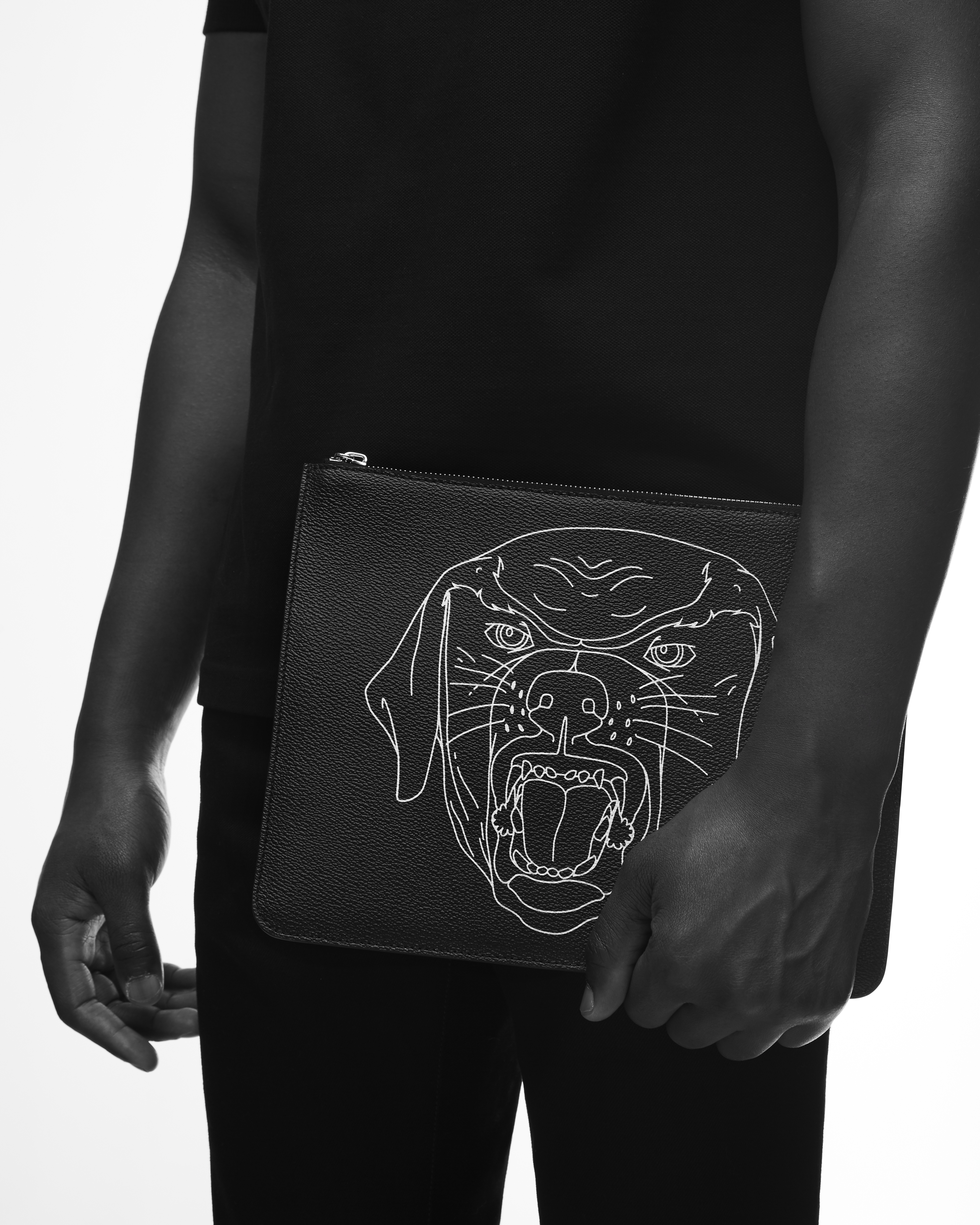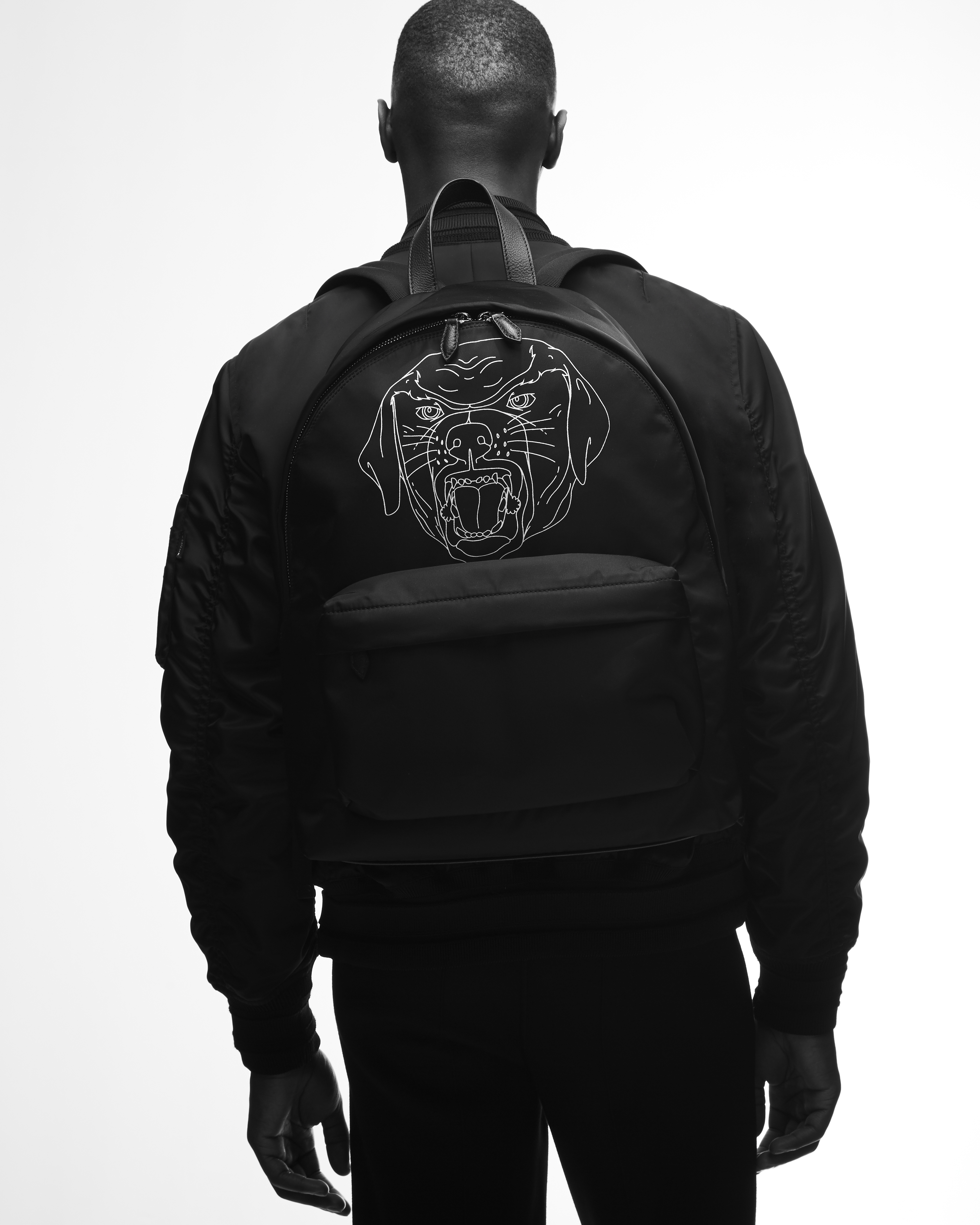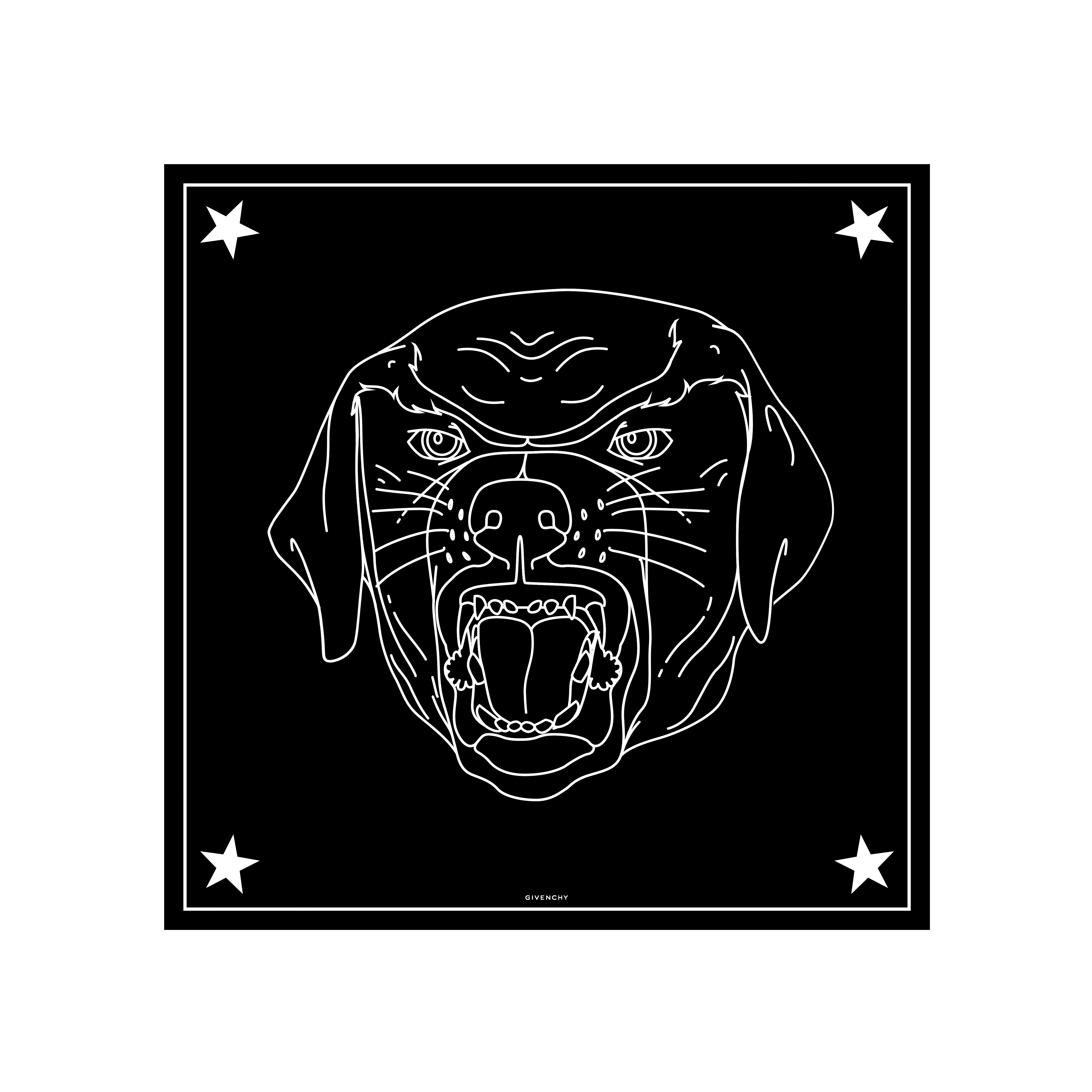Le temps d’une collection capsule masculine, Ricardo Tisci réinterprète son symbole racé pour l’été 2017. Le Rottweiler, puissant mais docile, incontournable de la marque depuis 2011 se décline sur des pulls, des pochettes et d’autres accessoires. Véritable leitmotiv, qui en quelques années est devenu indissociable de l’esprit Givenchy. Tisci dédie au molosse, une collection graphique et bicolore.