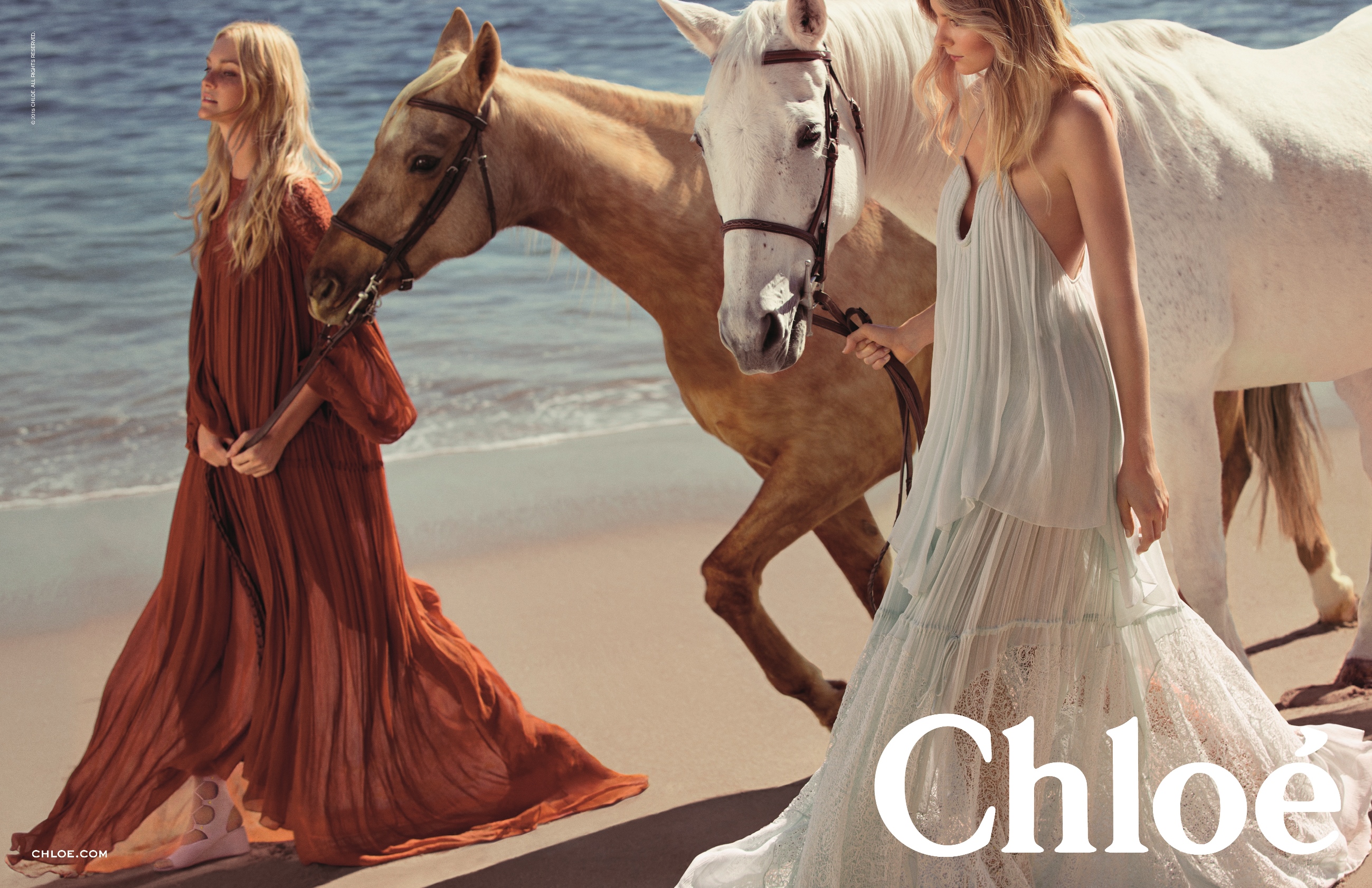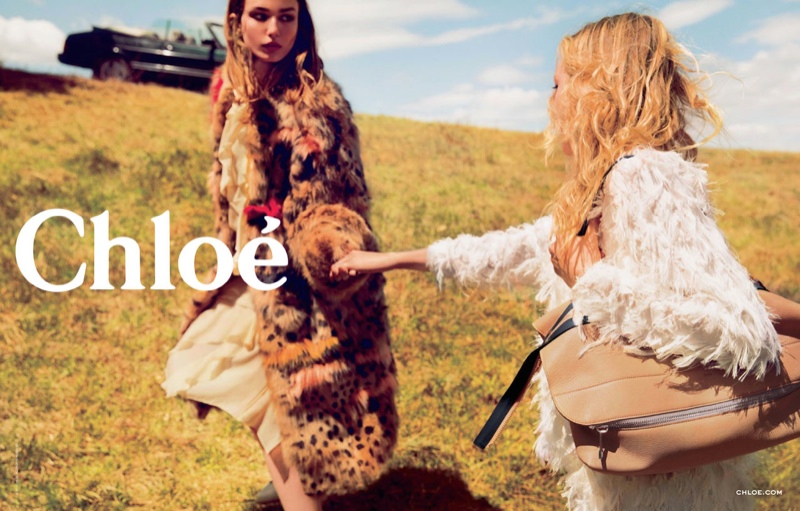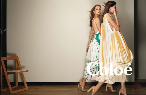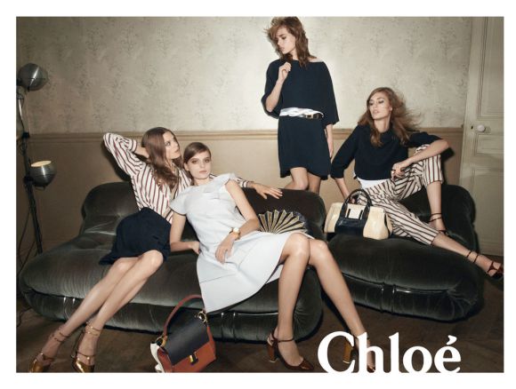 La femme française chez Chloé : une sophistication déconcertante de simplicité, de naturelle. Peu de maquillage, des cheveux travaillés par les lumières de l’été dans des robes aux couleurs poudrées. Dentelle, crêpe de soie: une légèreté qui renvoie aux moeurs de la Parisienne! La touche Chloé : une allure 70’s, de la dentelle , du patchwork, les effluves de patchouli en moins. Une féminité qui peut vite être cliché; et pourtant Clare Waight Keller ne tombe jamais dans la caricature. Douce et romantique, elle assure la descendance de la Chloé Girl , née en 1952 de l’esprit de Gaby Aghion. Le président du groupe, Ryan Mc Ginley affirme que Clare Weight Keller a su ranimer l’esprit de la Chloé Girl originel et faire « souffler un vent cool ». Le tout en s’occupant de ses trois enfants, en collectionnant les manteaux et les photographie de Ryan Mc Ginley !