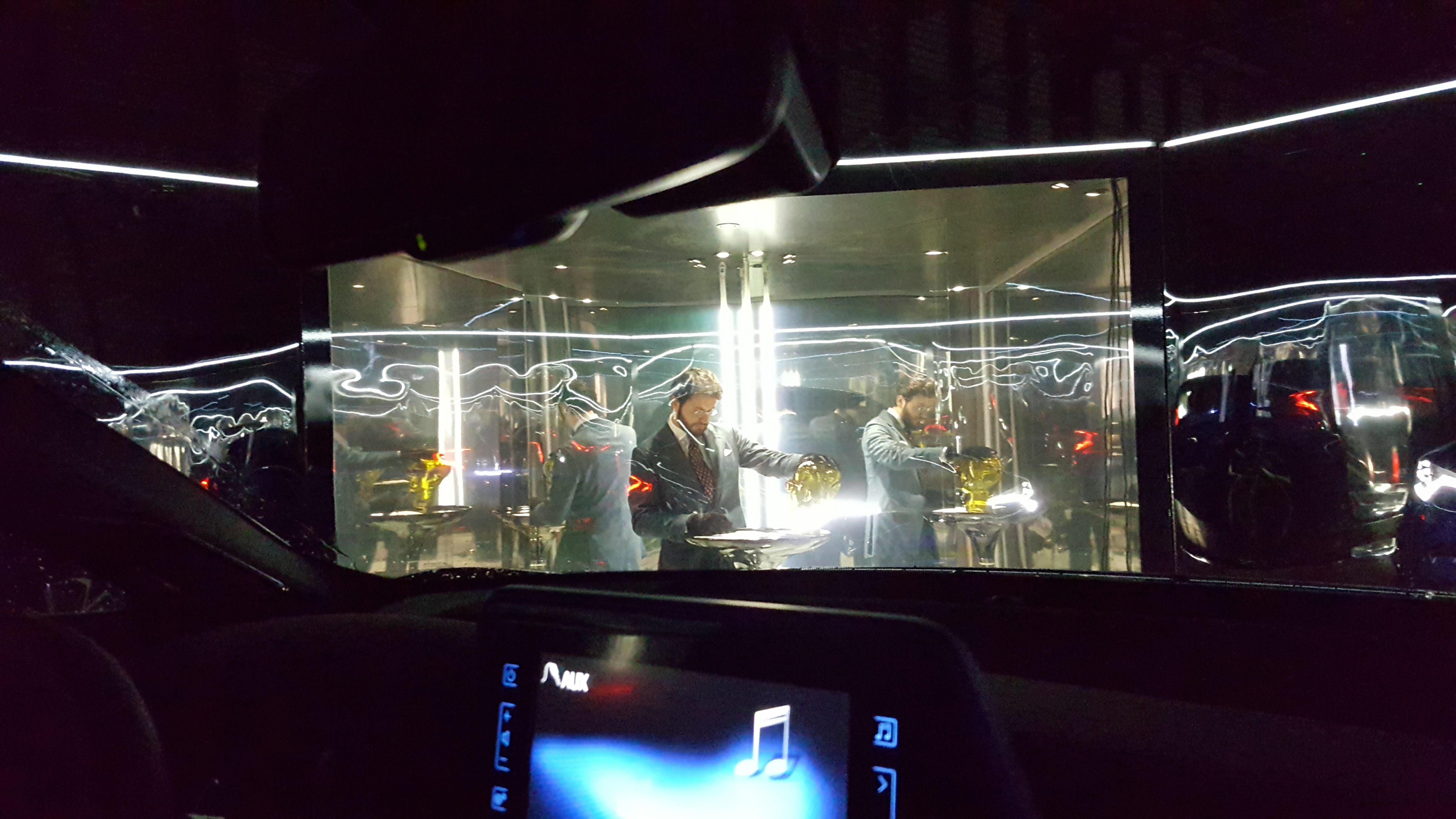 Propulsés ensuite dans un cercle de jeux parisien, les invités ont rejoint une assemblée surexcitée autour d’une table de roulette, où le croupier français Étienne Pradier les a invités à tenter leur chance. À peine avaient-ils placé leurs mises que Guerlain Chicherit, champion de ski freeride et pilote de rallye français, passait les saluer puis leur offrir une course grisante autour de la projection gigantesque d’une table de roulette, afin de mettre en exergue les performances dynamiques de la voiture, sa fluidité et ses réactions maîtrisées.