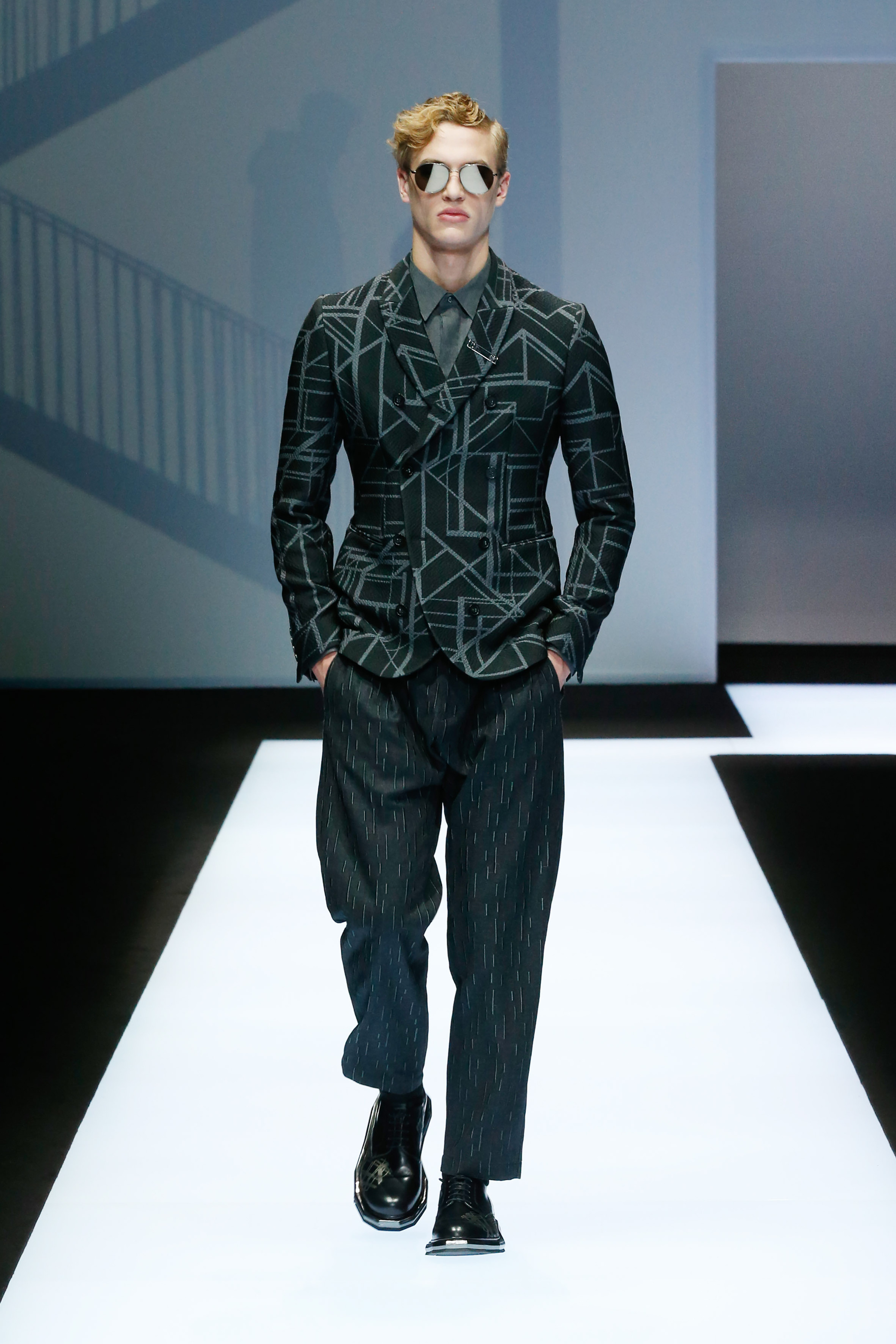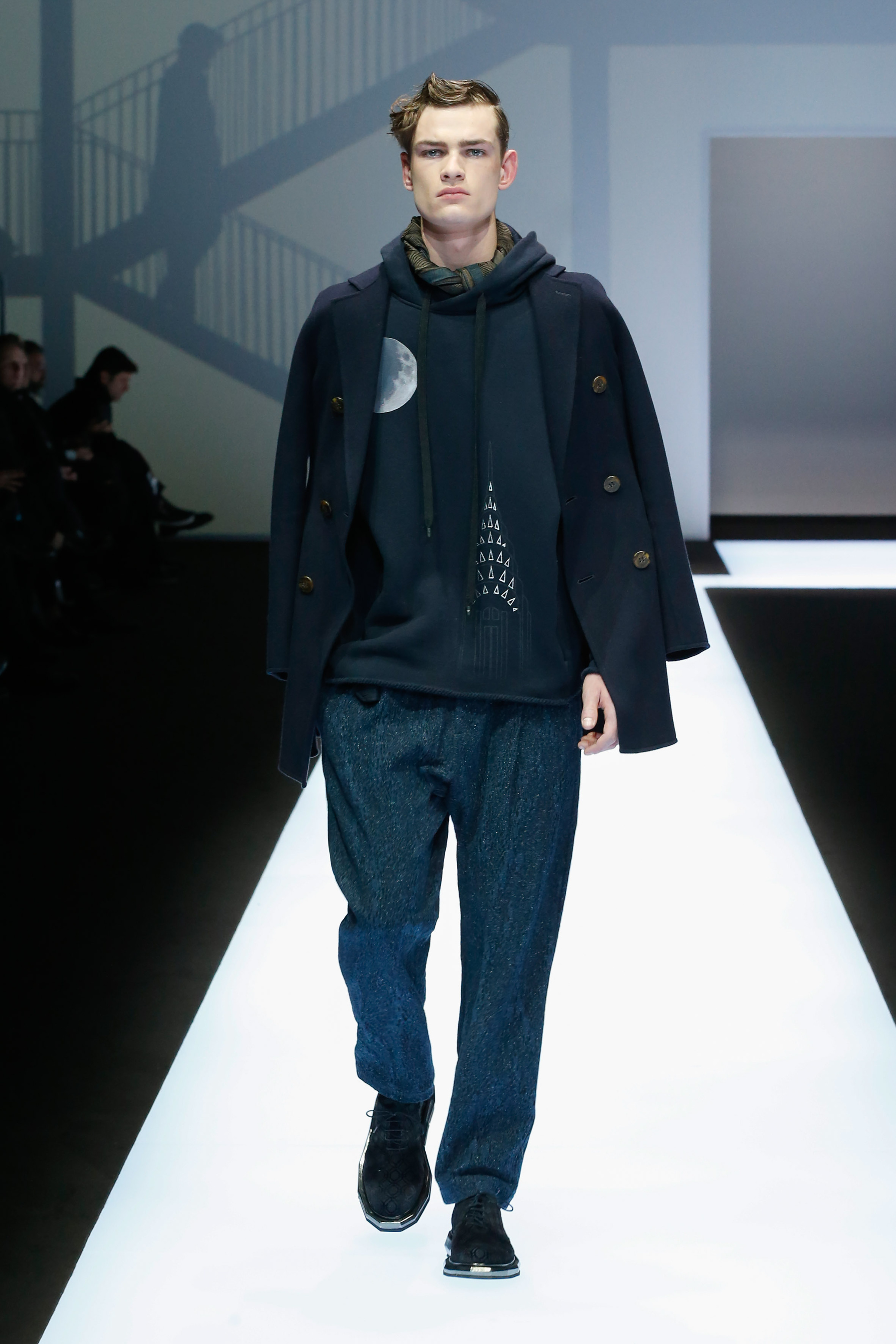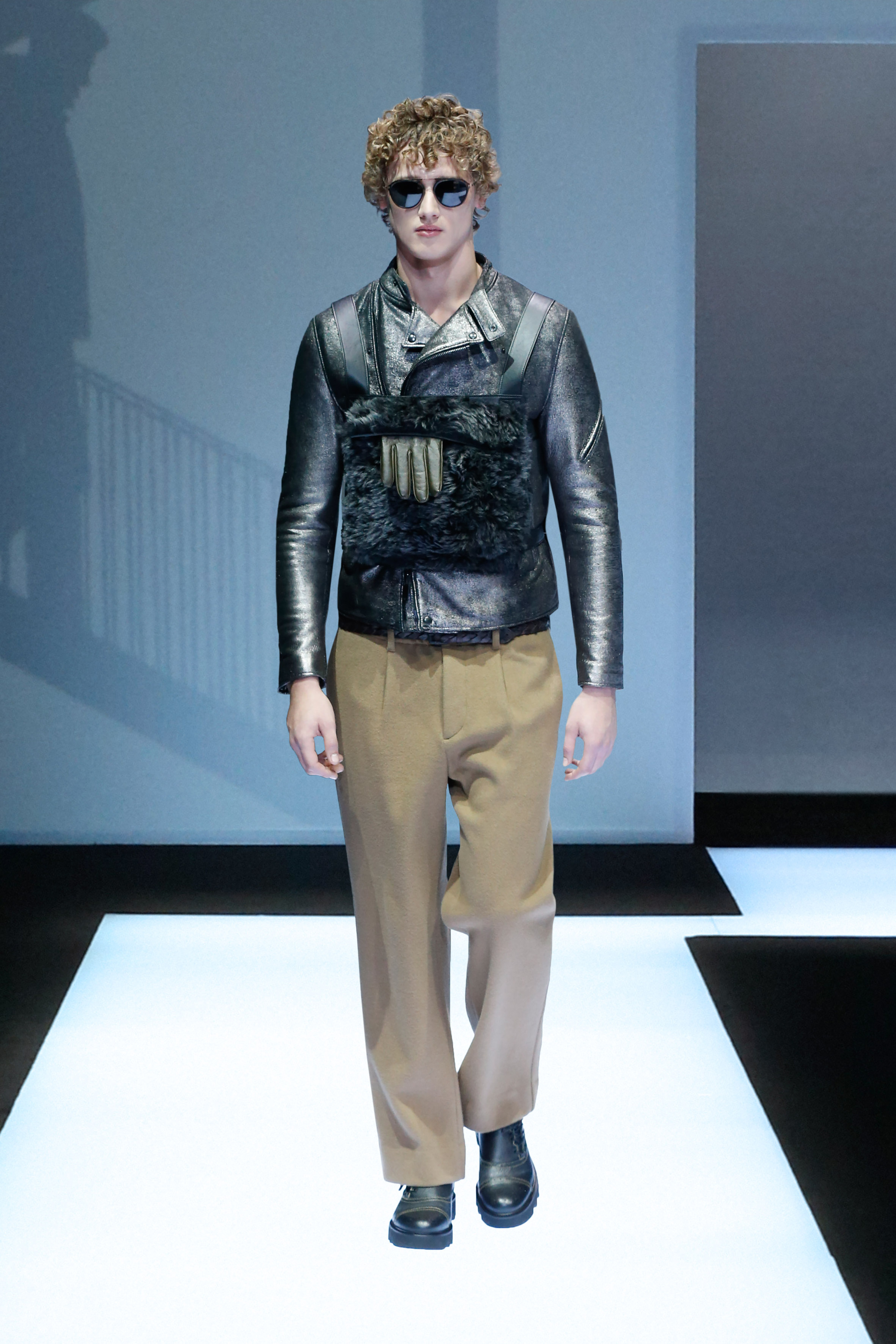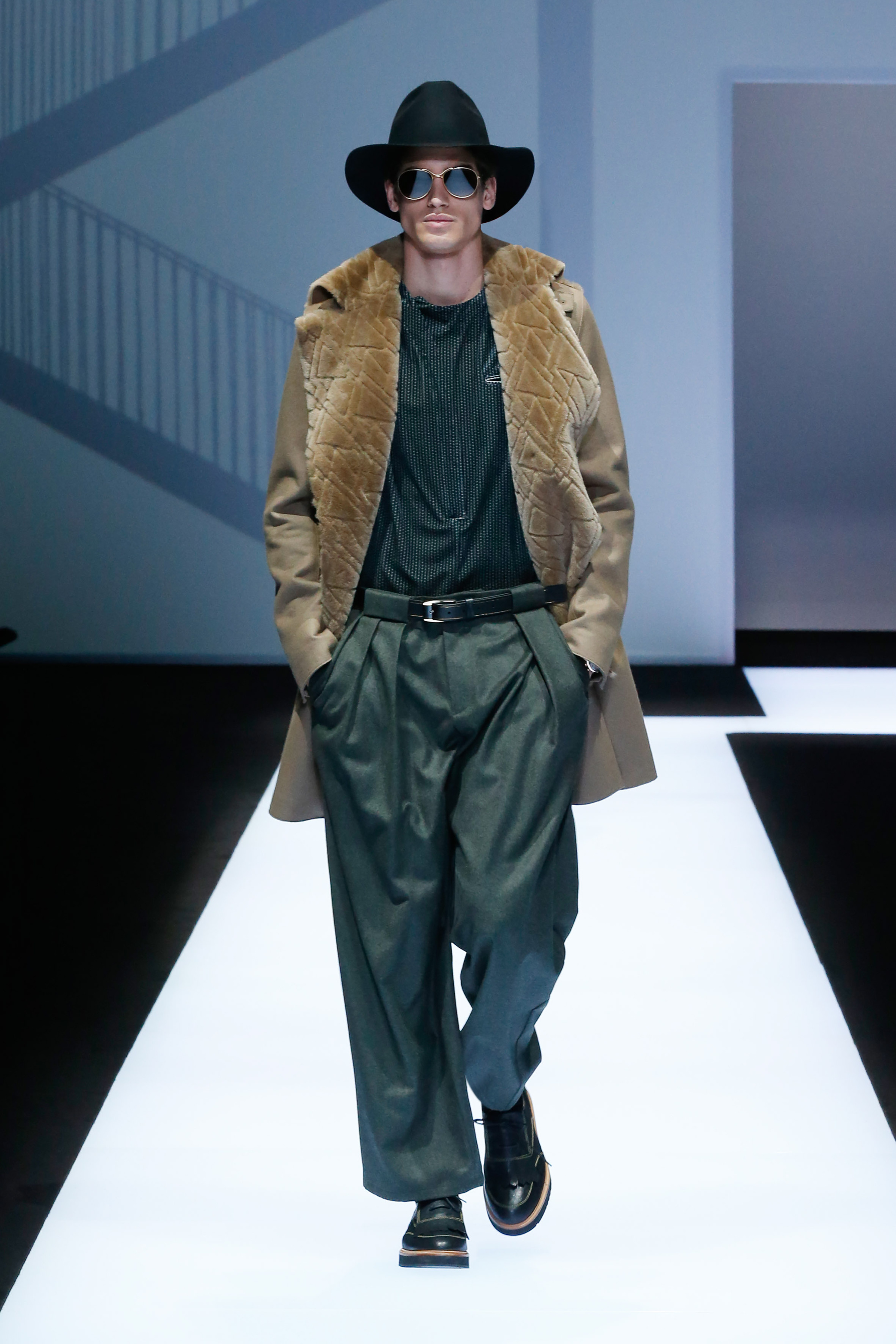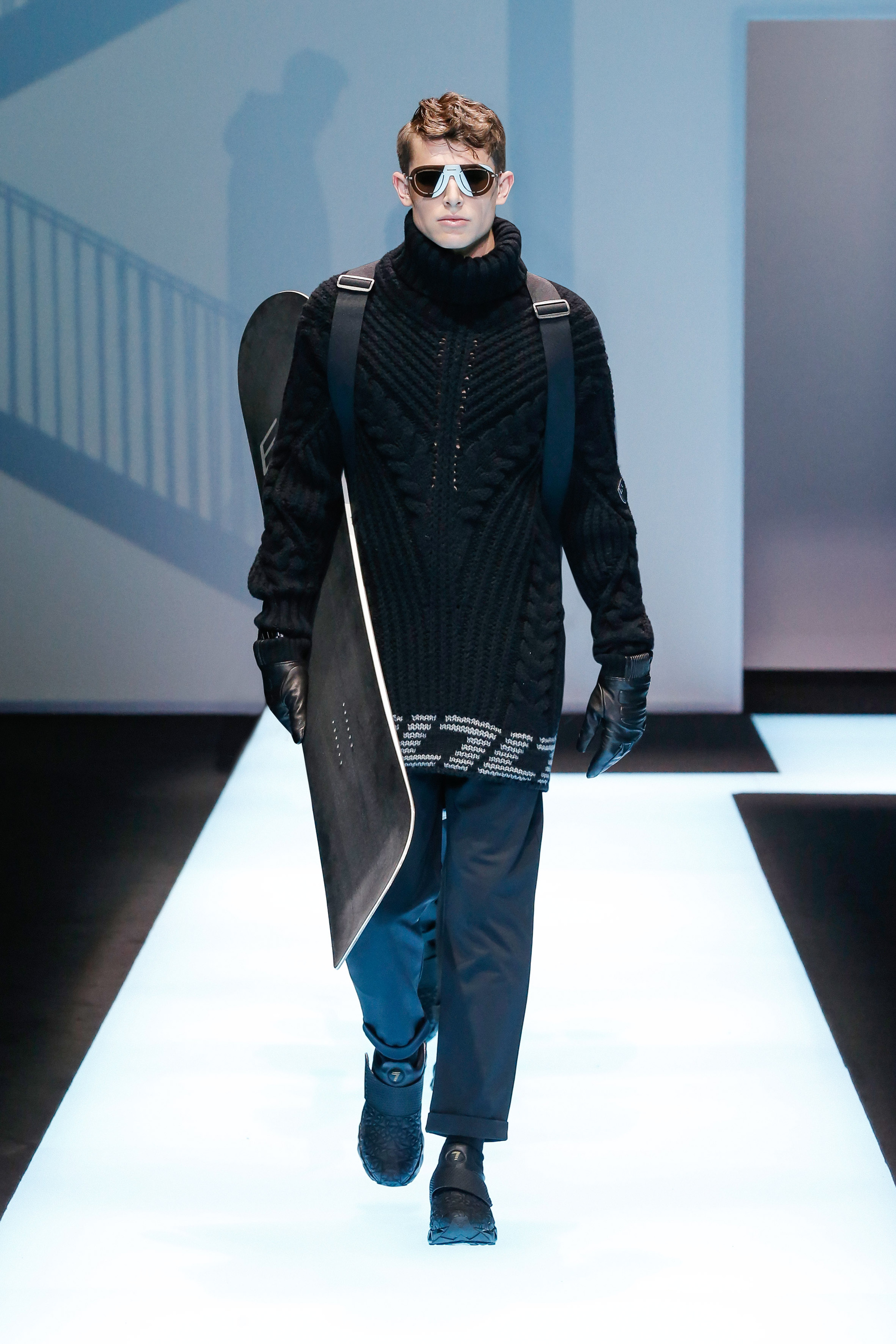 La palette de couleur oscille du noir intense au gris clair, à laquelle s’ajoutent des tons plus naturels comme le kaki et le bleu. Les chapeaux et lunettes de soleil sont nombreux en tant qu’accessoires. Les parkas restent elles dans les tons clairs et apportent de la fraîcheur aux tenues.