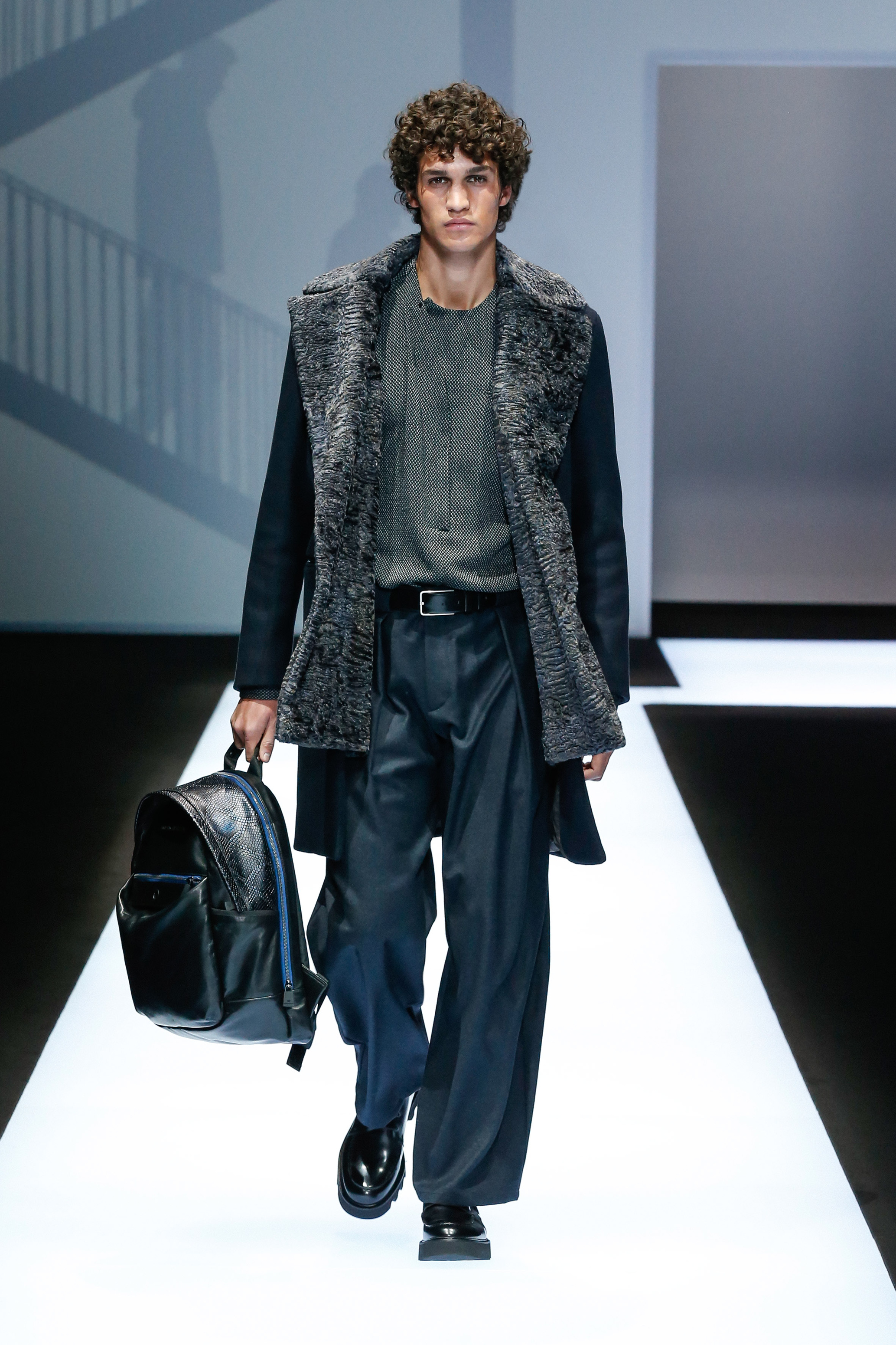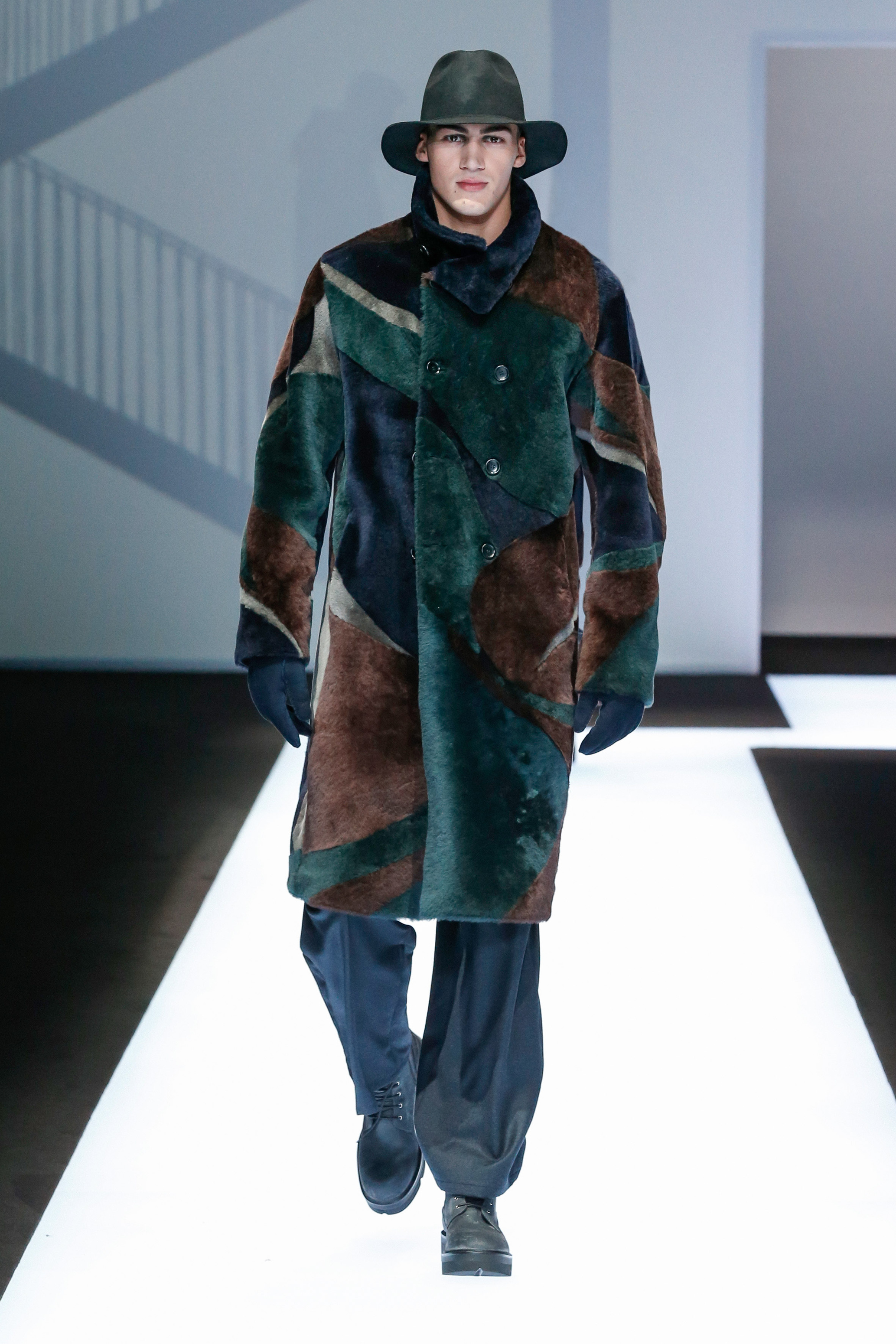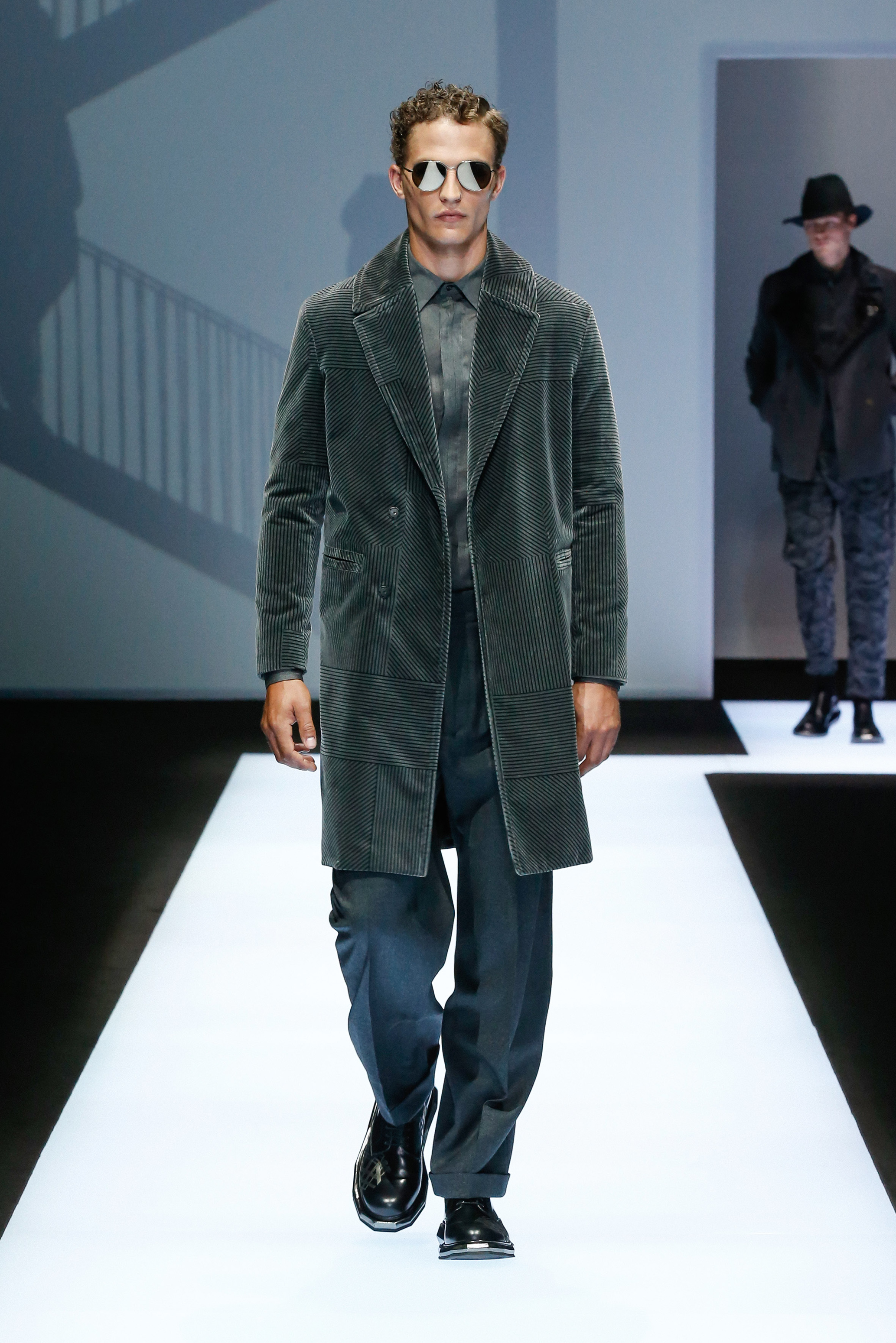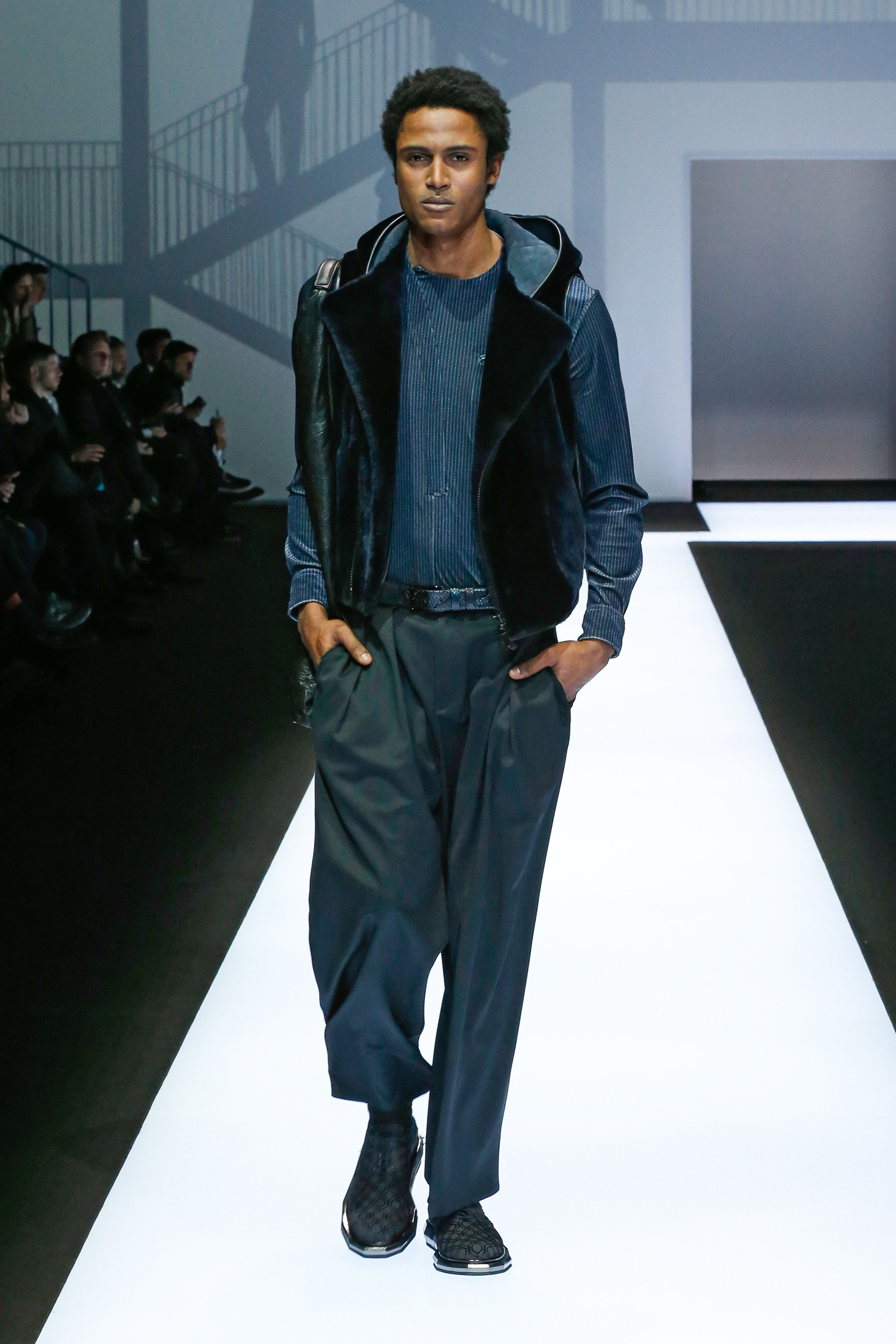 La palette de couleur oscille du noir intense au gris clair, à laquelle s’ajoutent des tons plus naturels comme le kaki et le bleu. Les chapeaux et lunettes de soleil sont nombreux en tant qu’accessoires. Les parkas restent elles dans les tons clairs et apportent de la fraîcheur aux tenues.