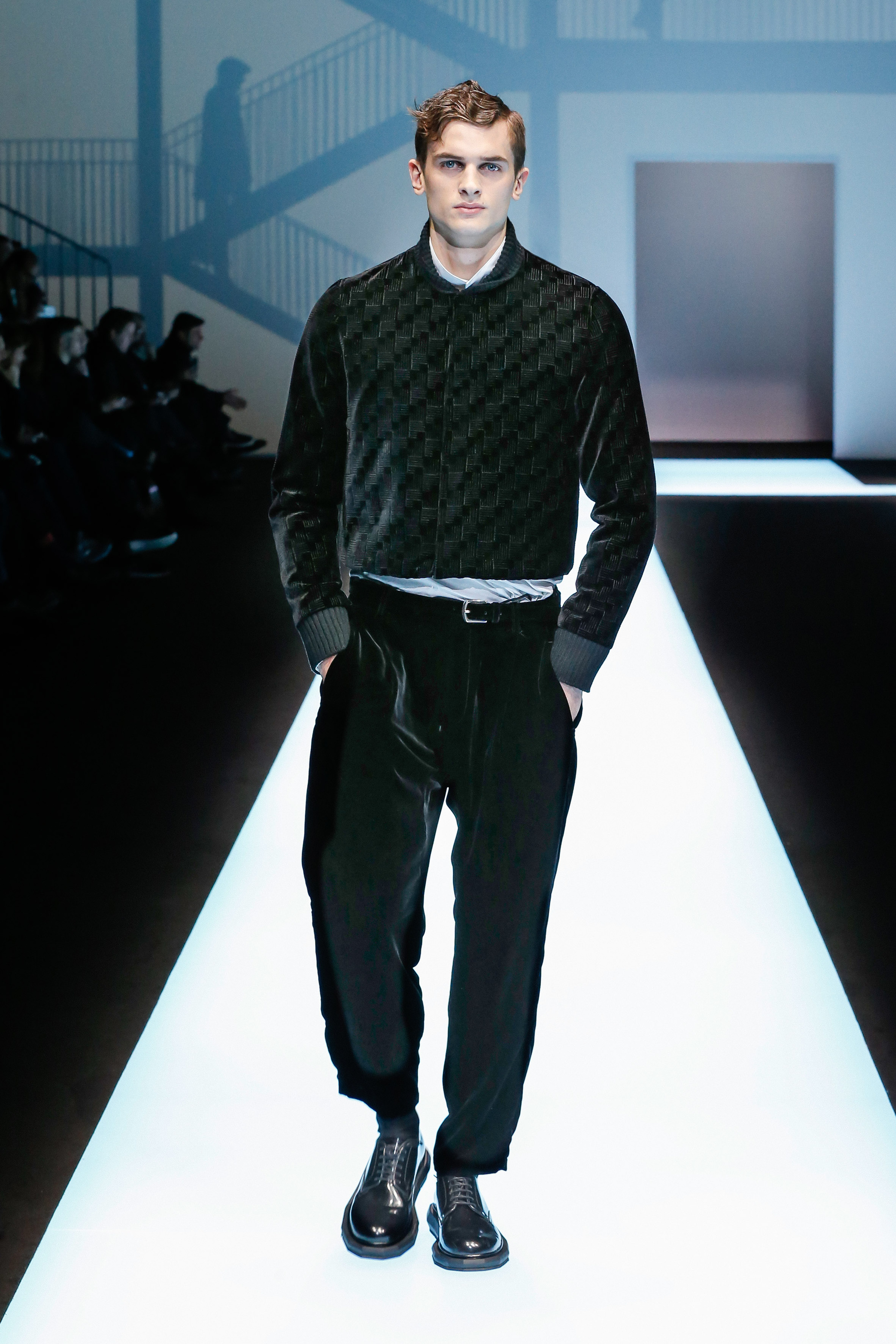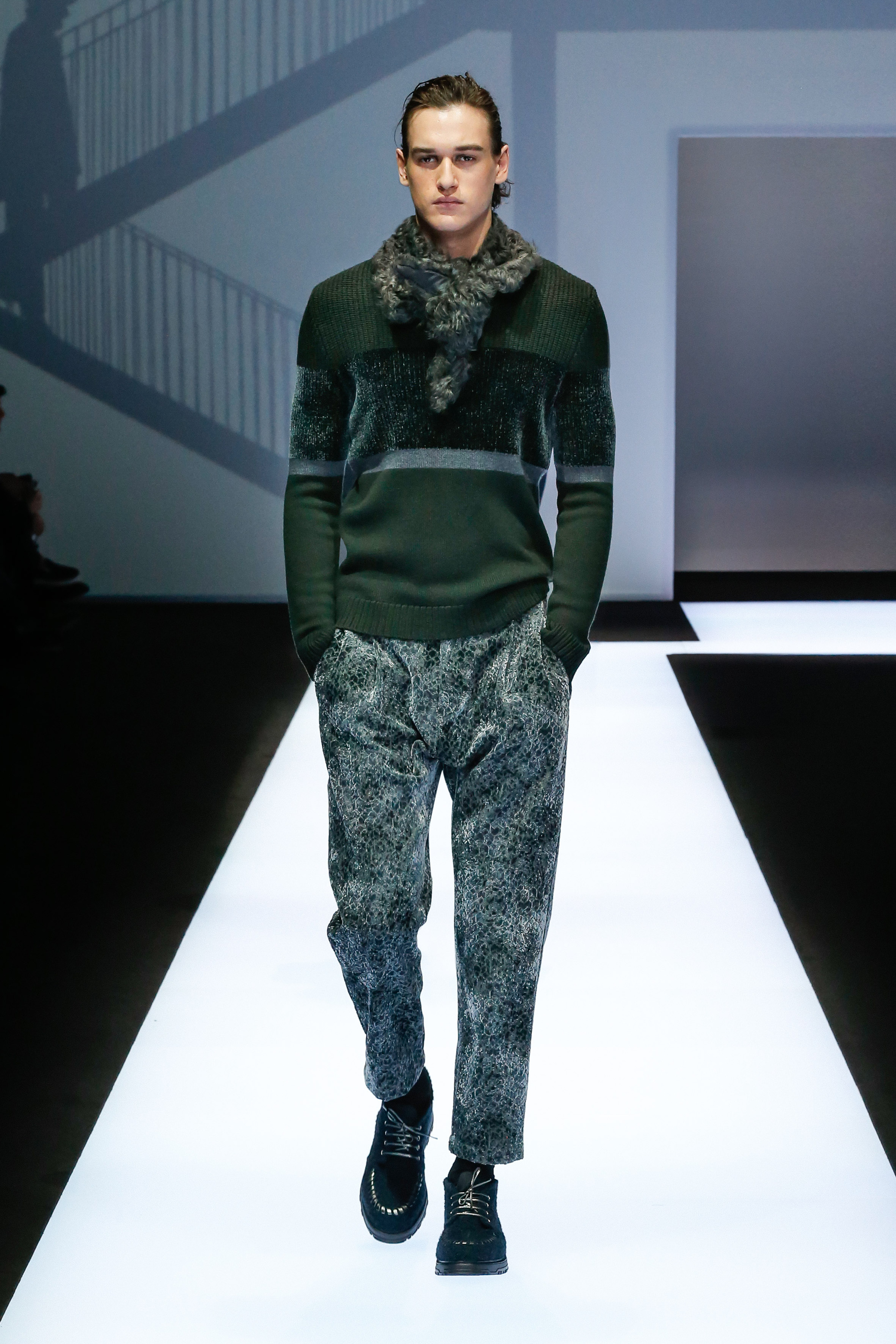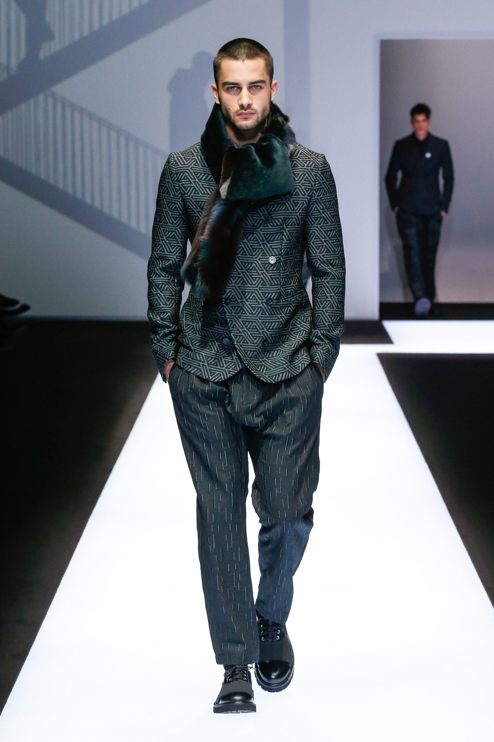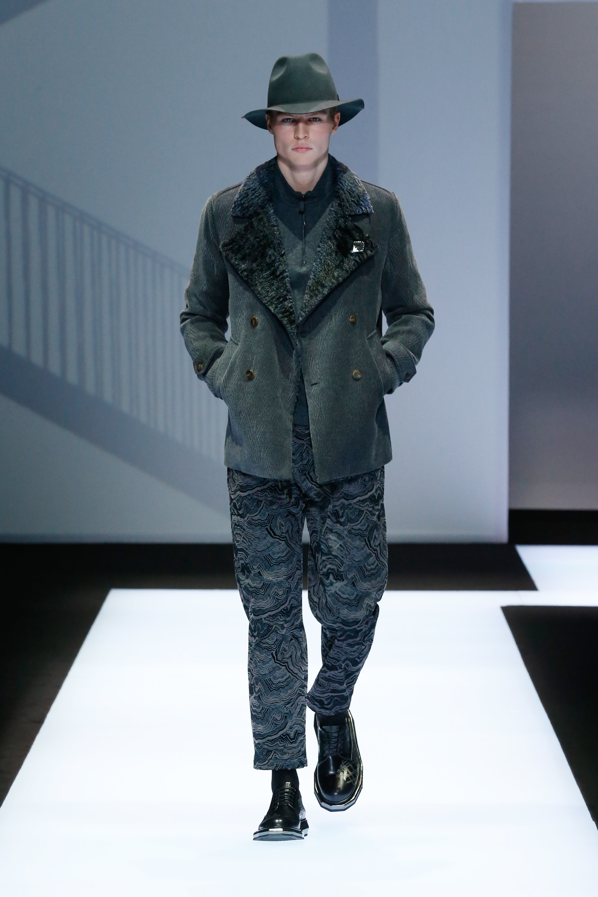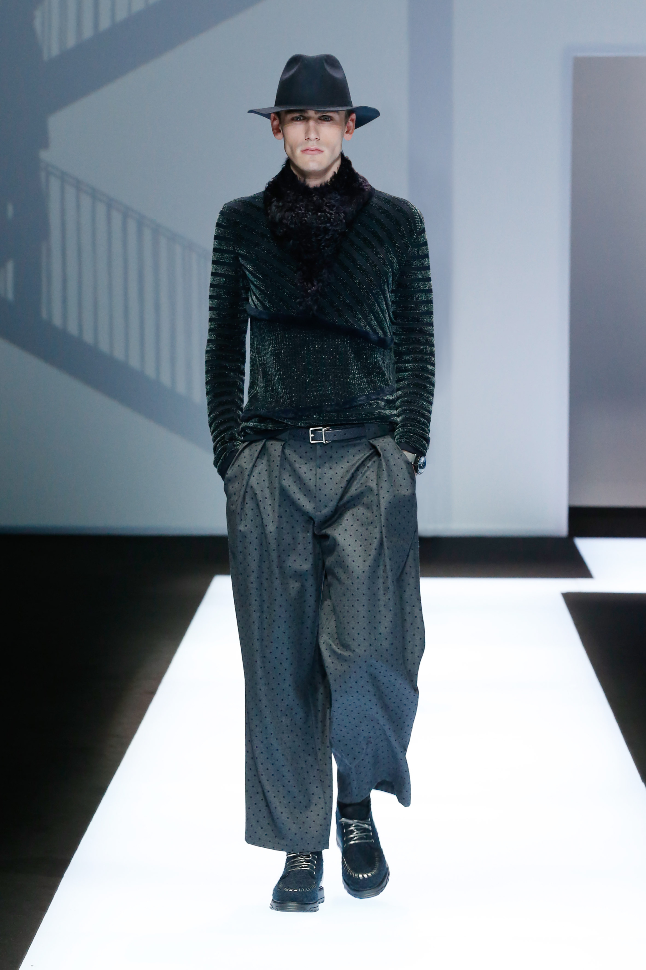 La palette de couleur oscille du noir intense au gris clair, à laquelle s’ajoutent des tons plus naturels comme le kaki et le bleu. Les chapeaux et lunettes de soleil sont nombreux en tant qu’accessoires. Les parkas restent elles dans les tons clairs et apportent de la fraîcheur aux tenues.