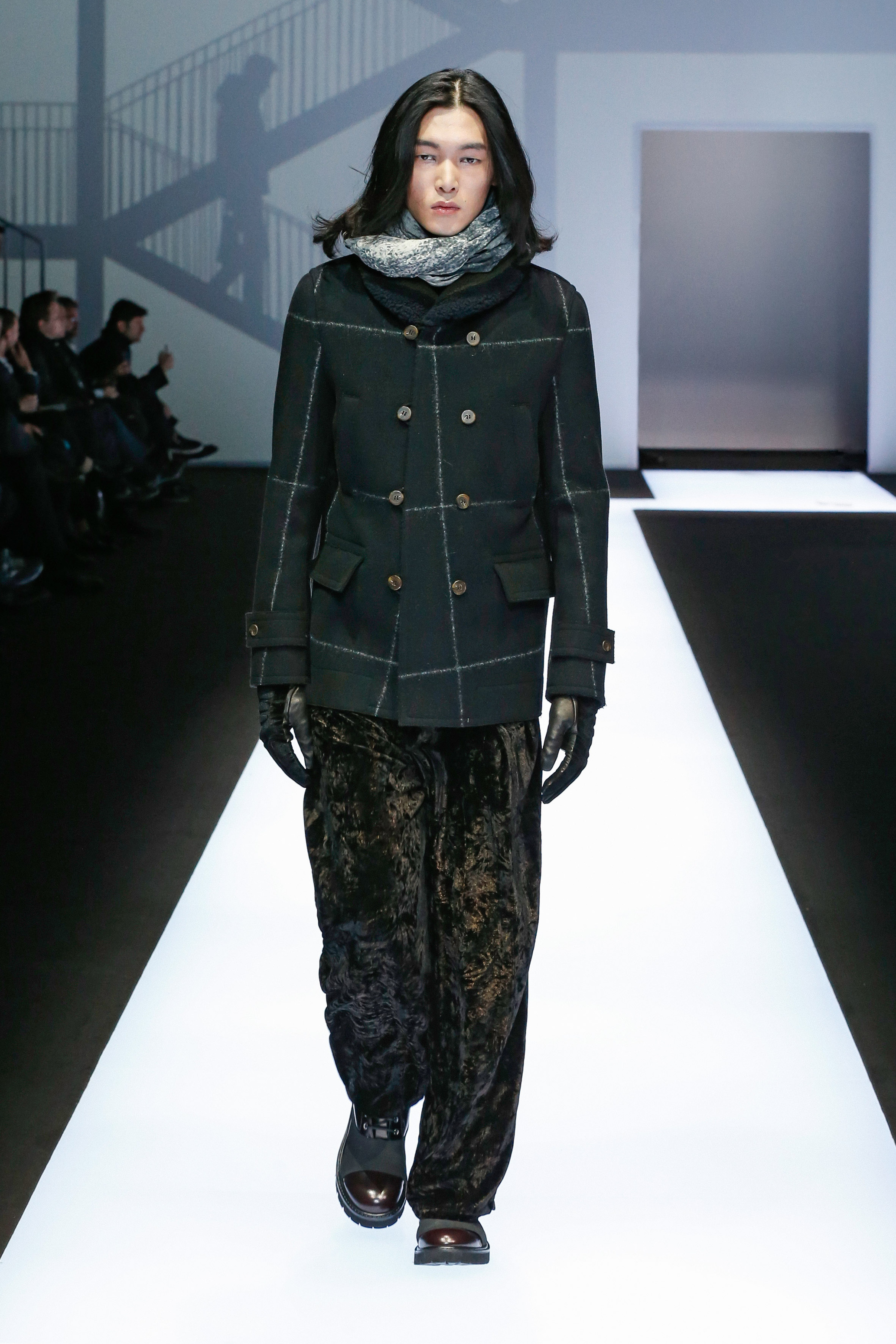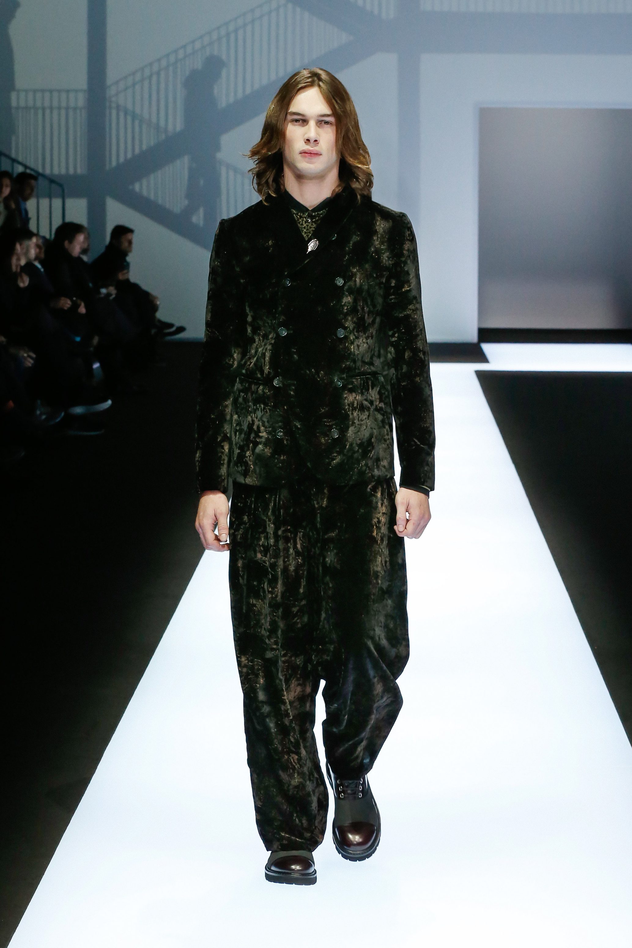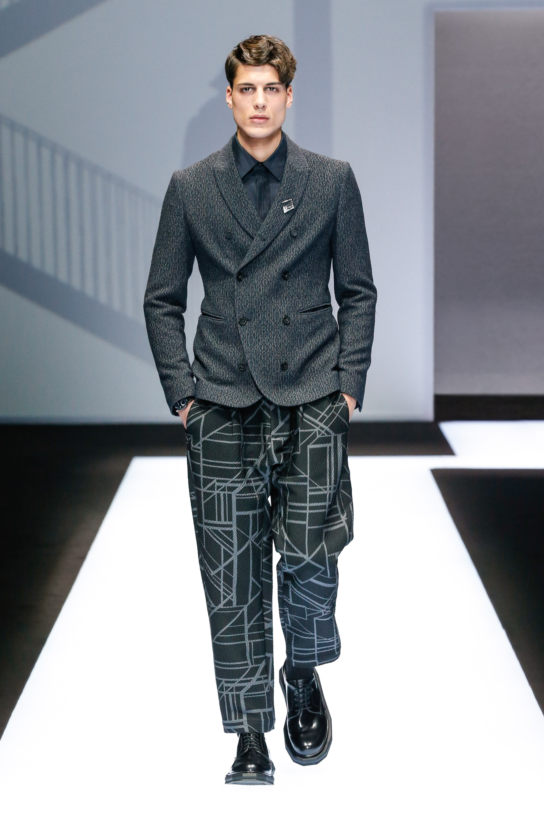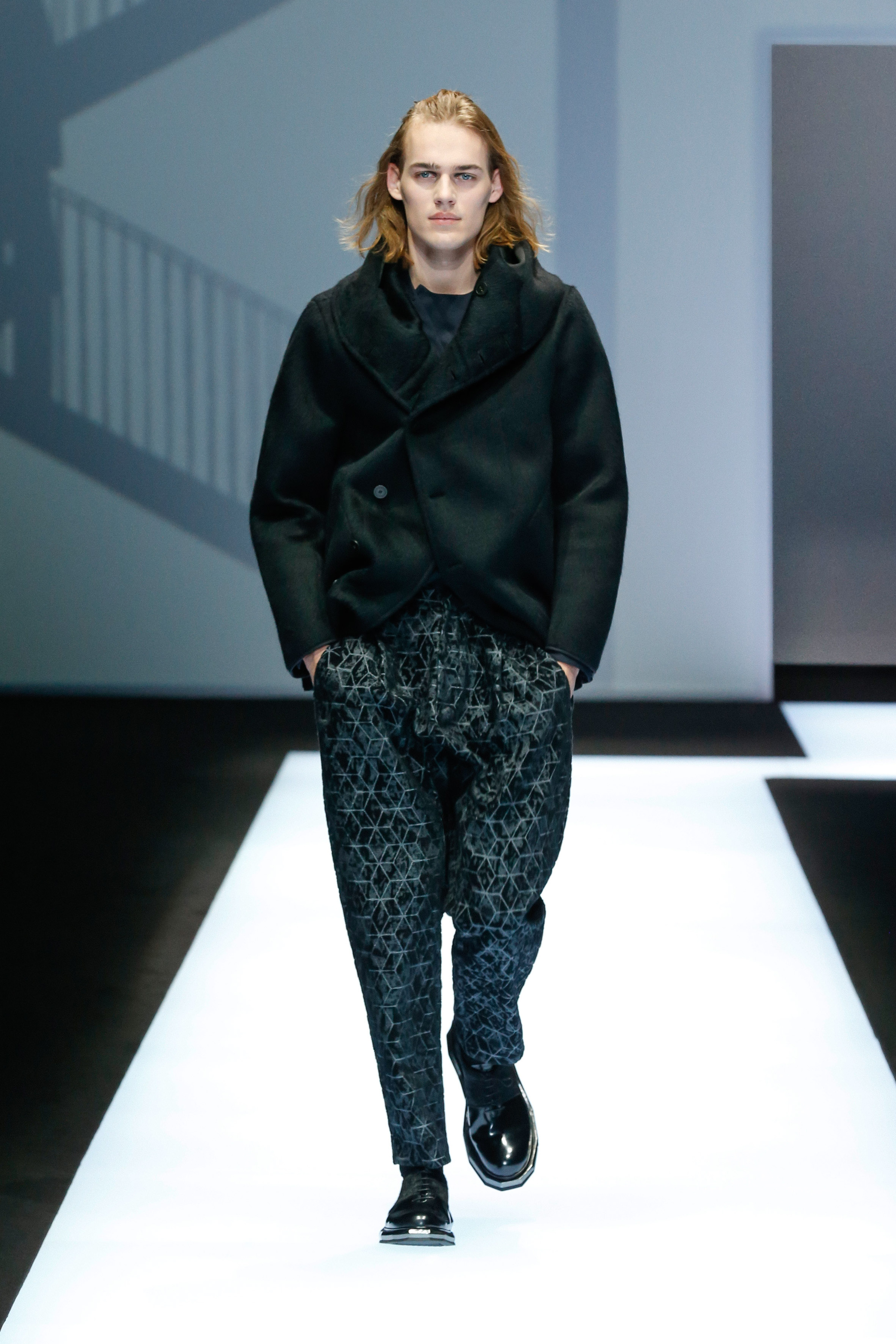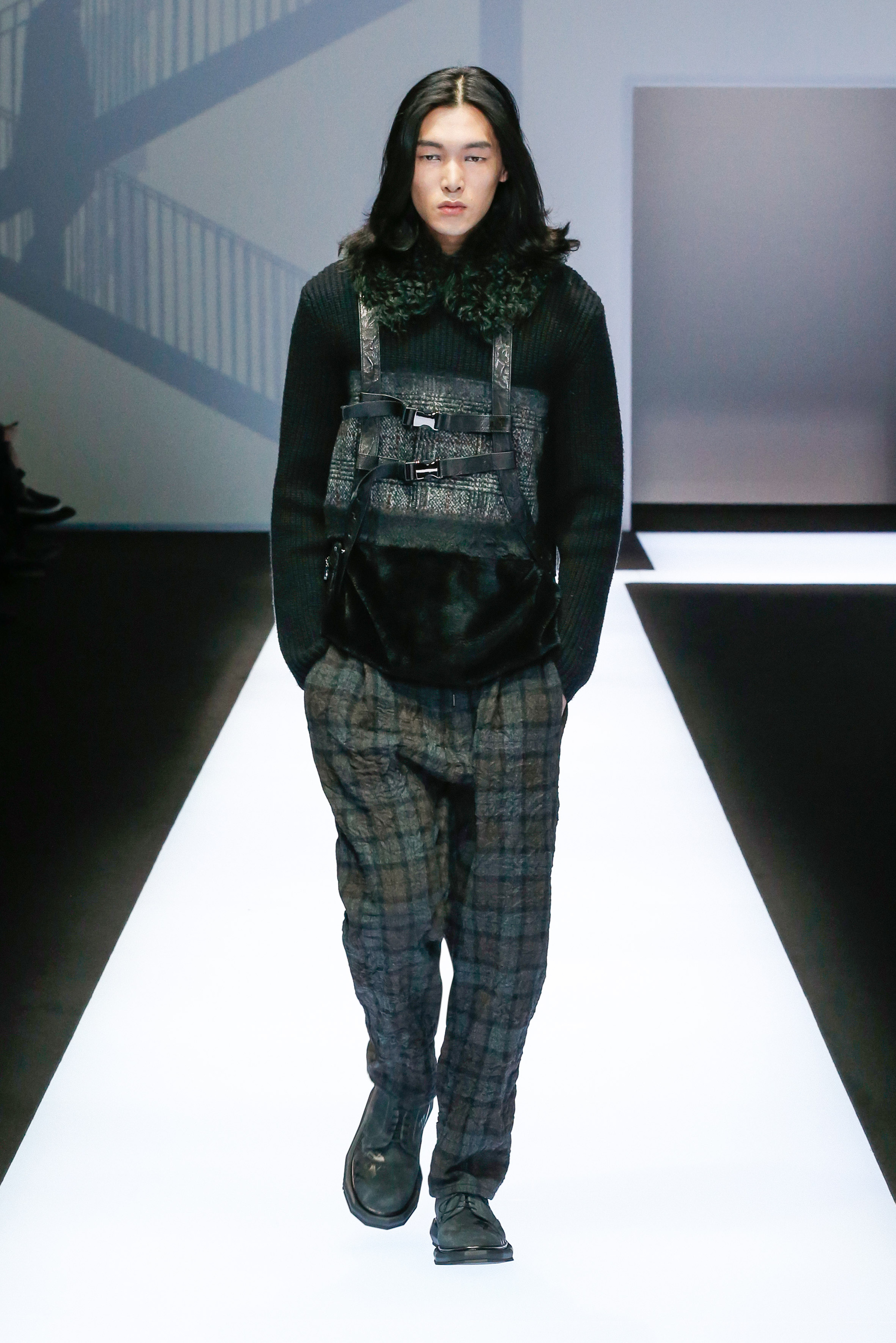 Une succession de silhouettes androgynes, élancées et fines compose cette collection. Un mélange et une inspiration de plusieurs éléments, les fusionnant en une expression décontractée du style : des tons sombres et des motifs symétriques, des matières fluides.