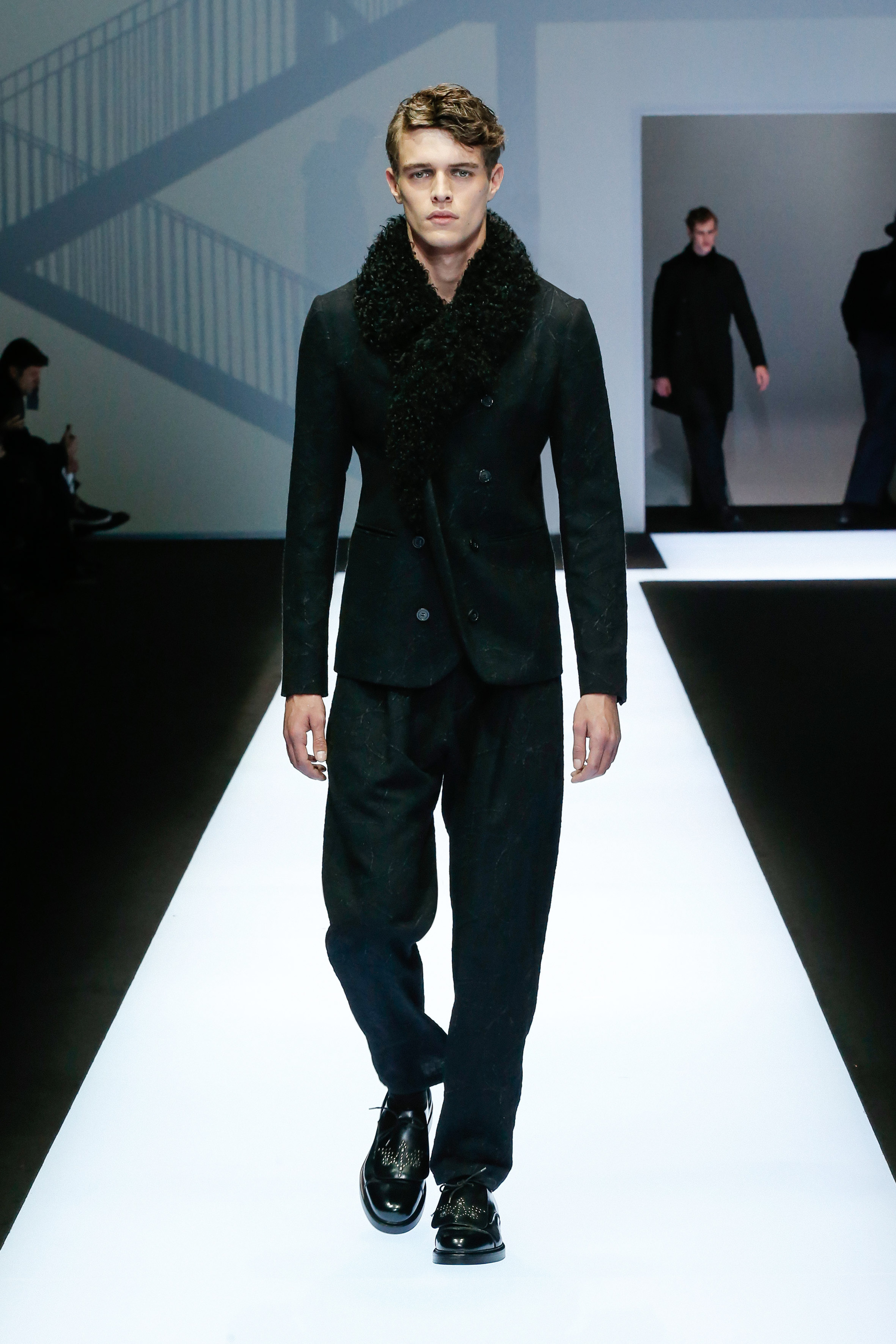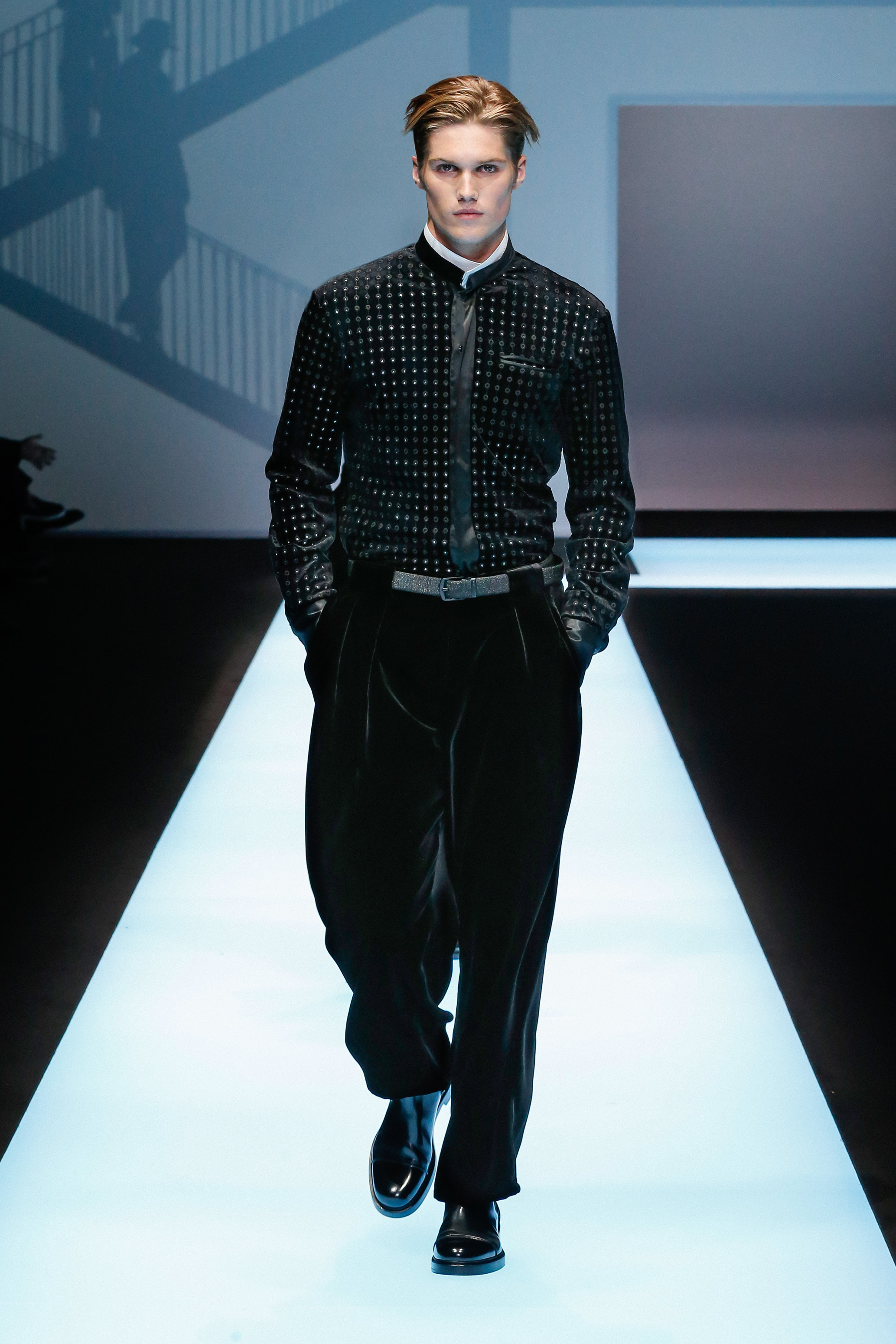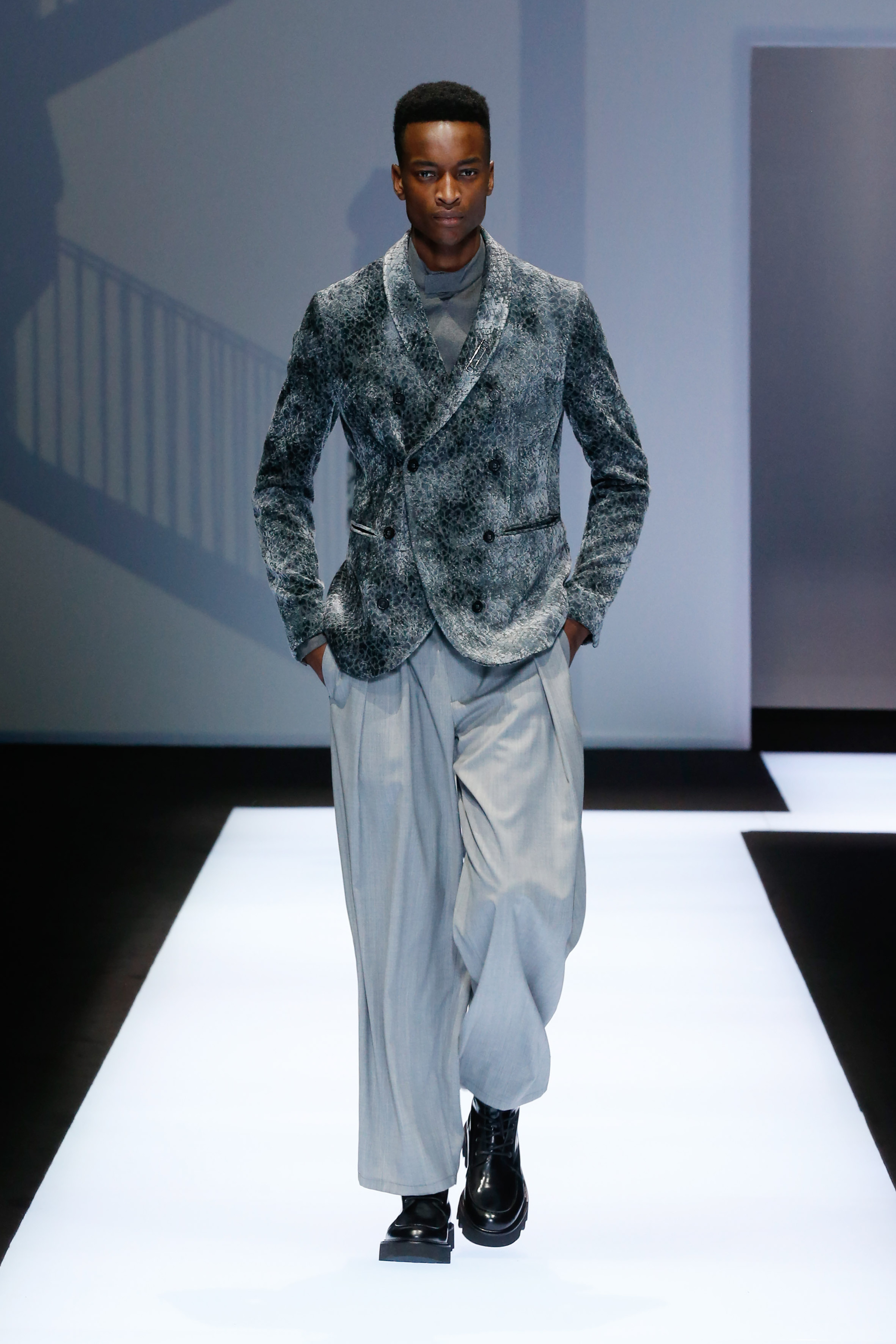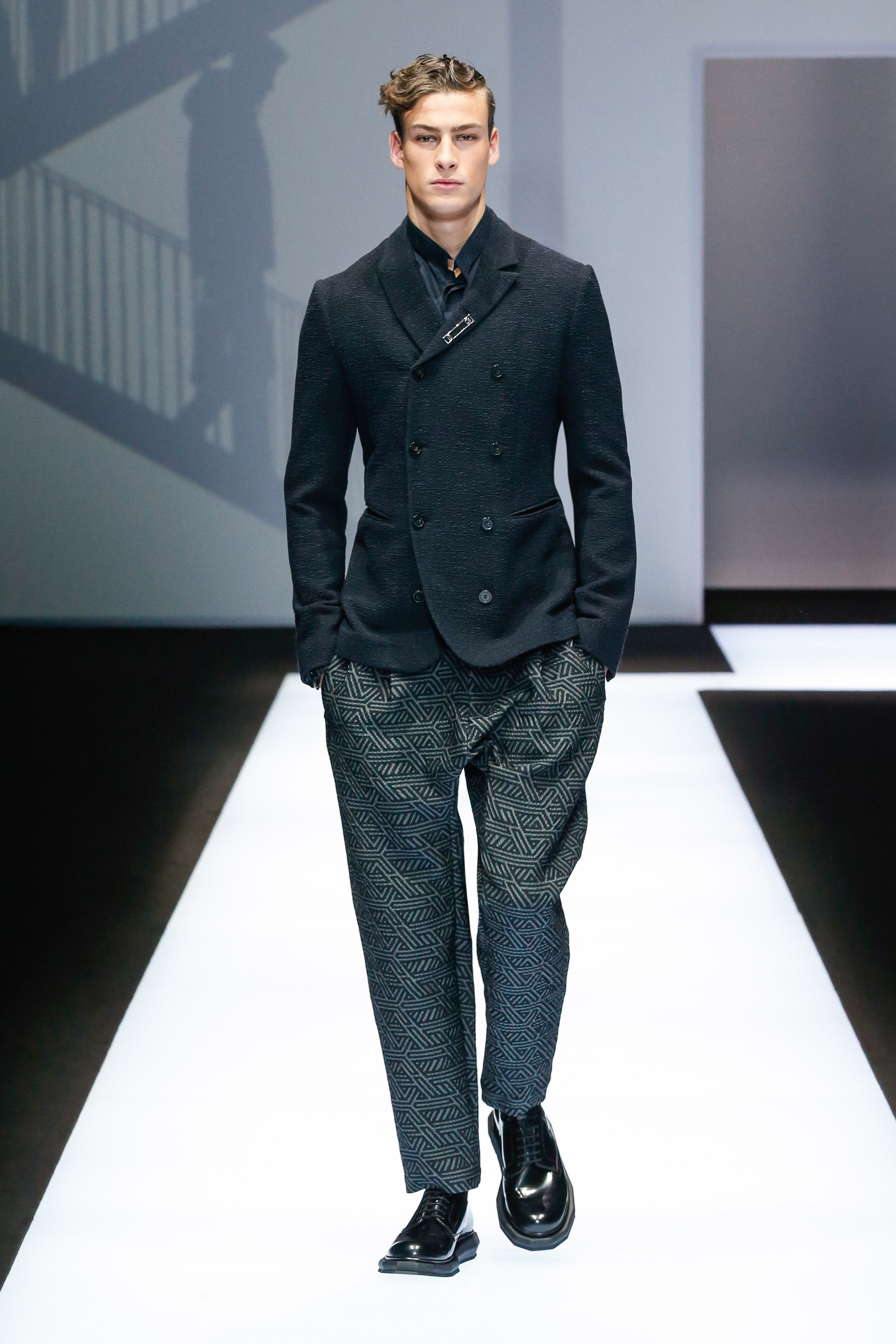 Une succession de silhouettes androgynes, élancées et fines compose cette collection. Un mélange et une inspiration de plusieurs éléments, les fusionnant en une expression décontractée du style : des tons sombres et des motifs symétriques, des matières fluides.