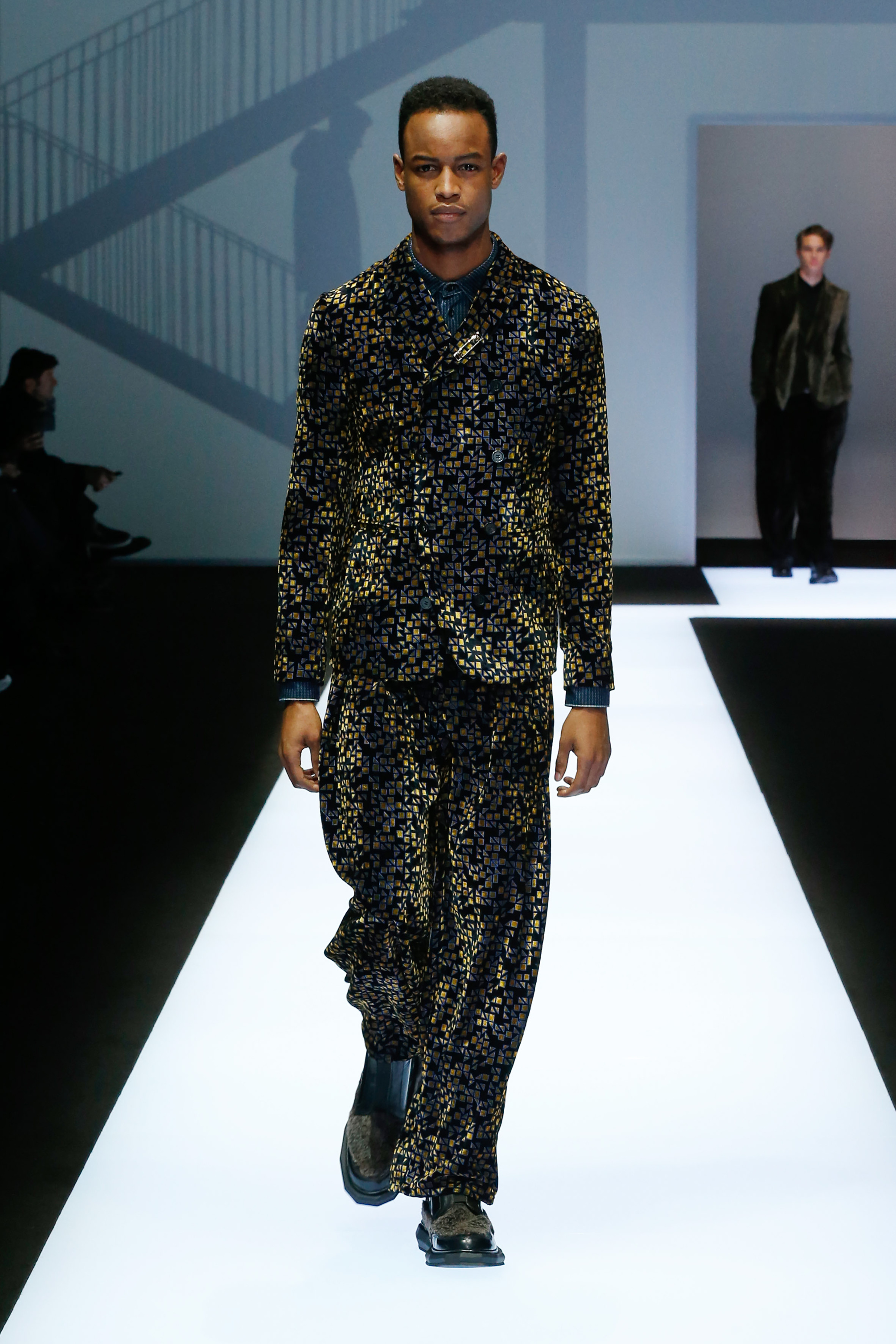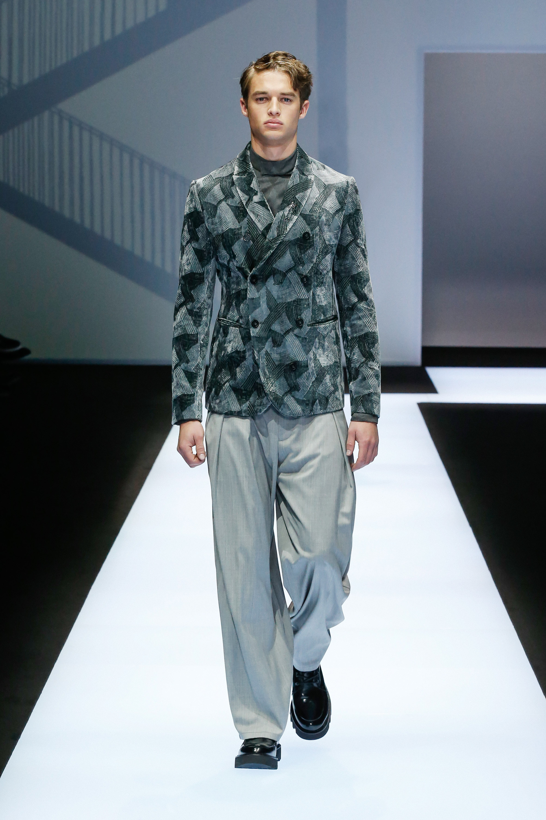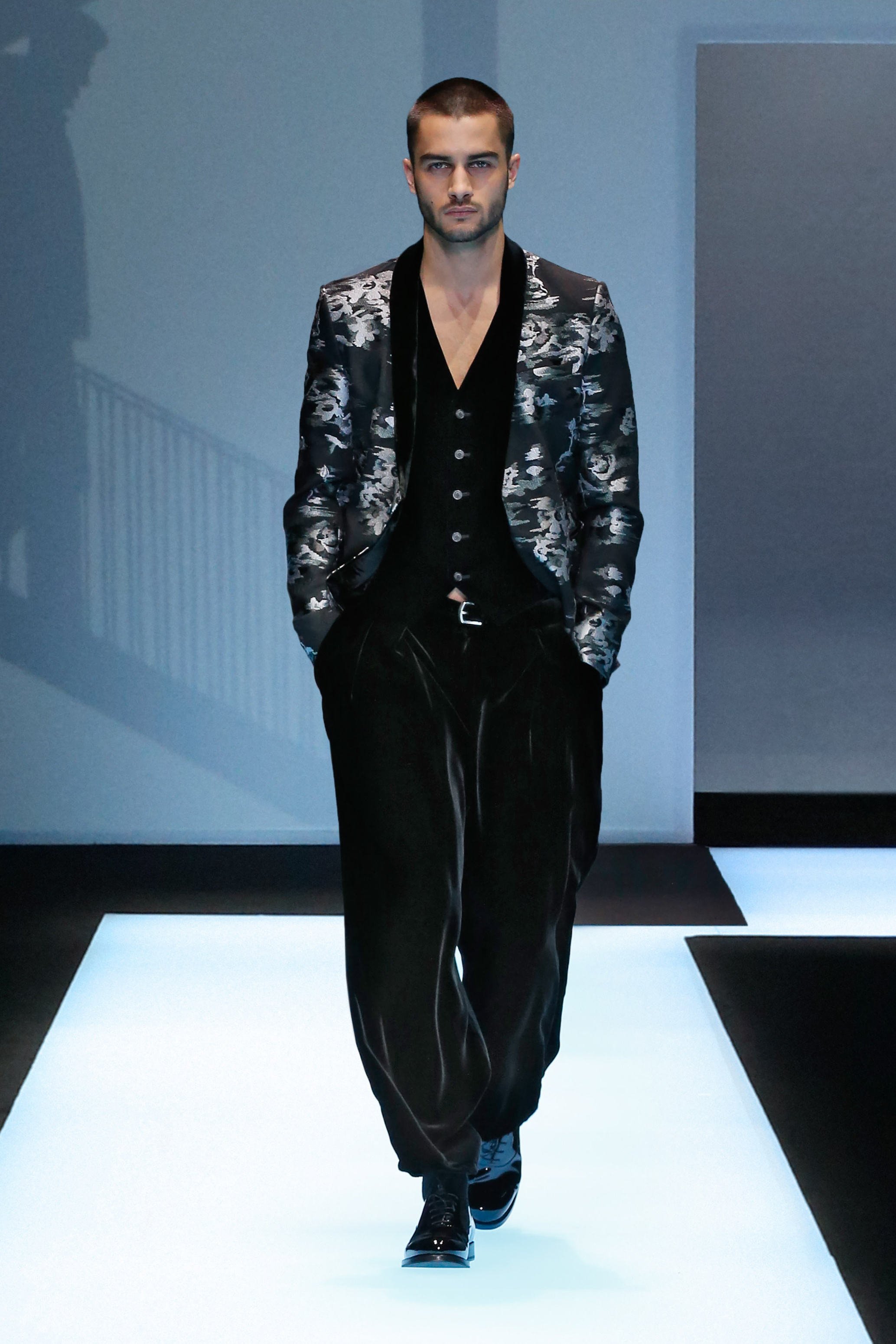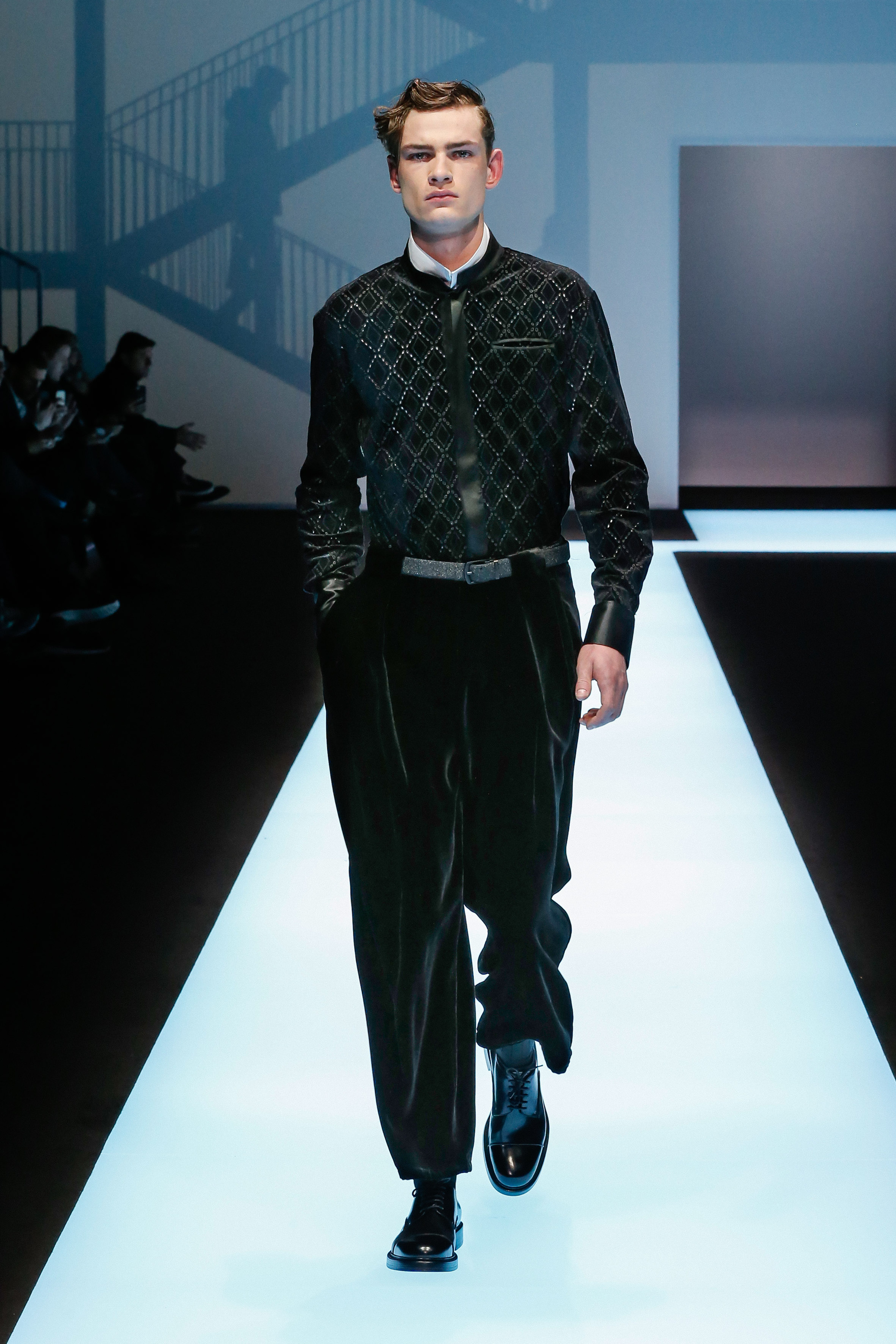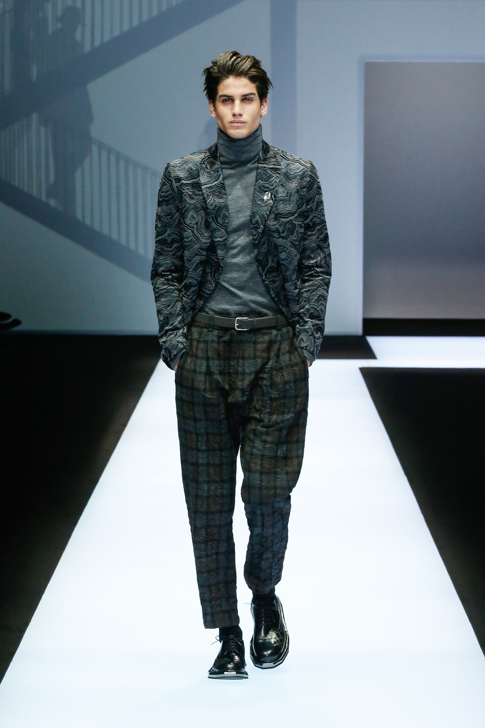 Une succession de silhouettes androgynes, élancées et fines compose cette collection. Un mélange et une inspiration de plusieurs éléments, les fusionnant en une expression décontractée du style : des tons sombres et des motifs symétriques, des matières fluides.