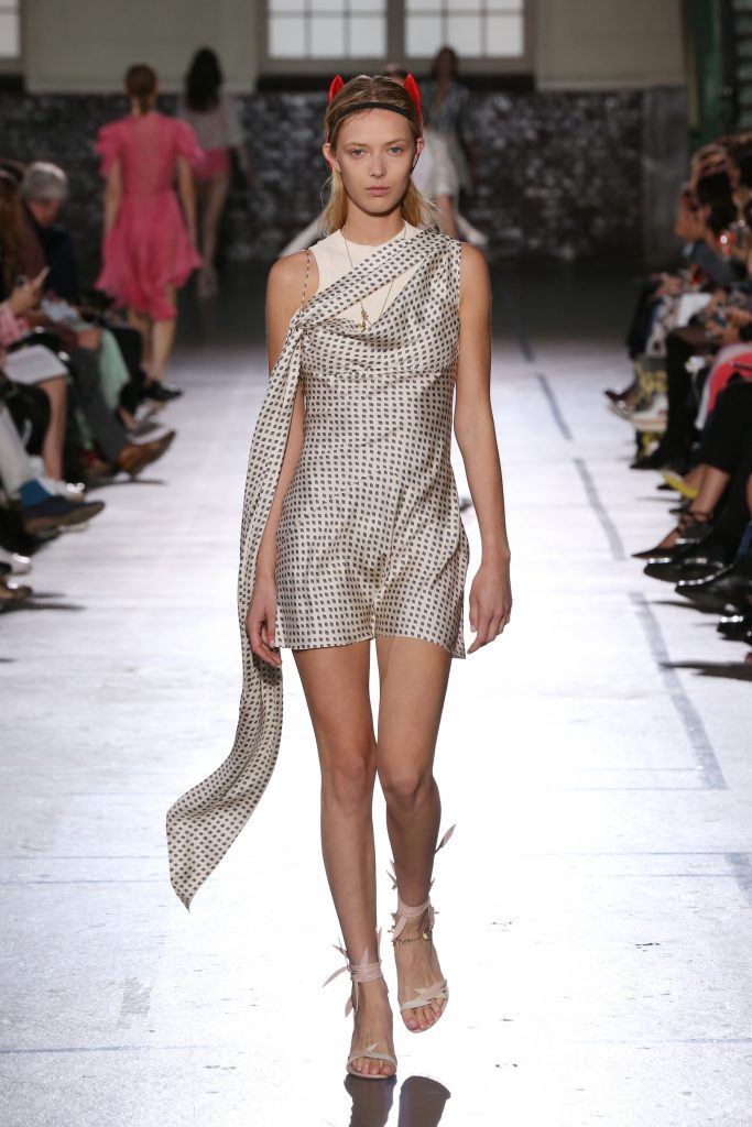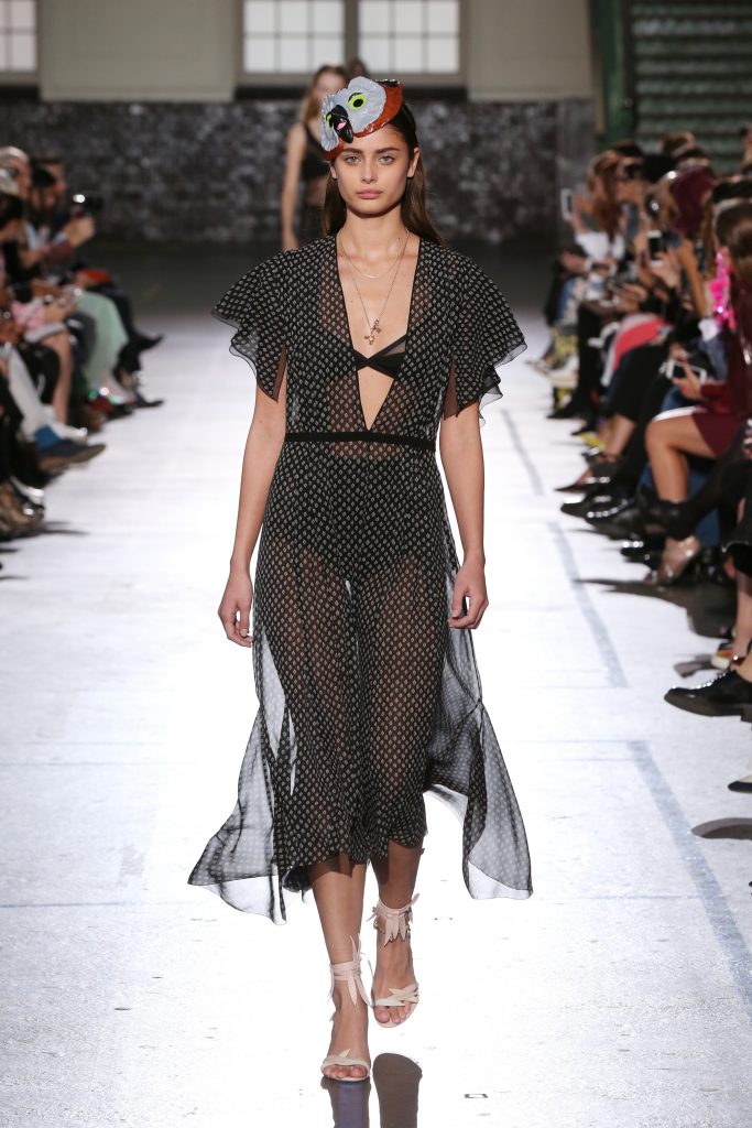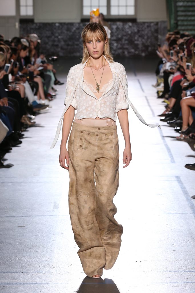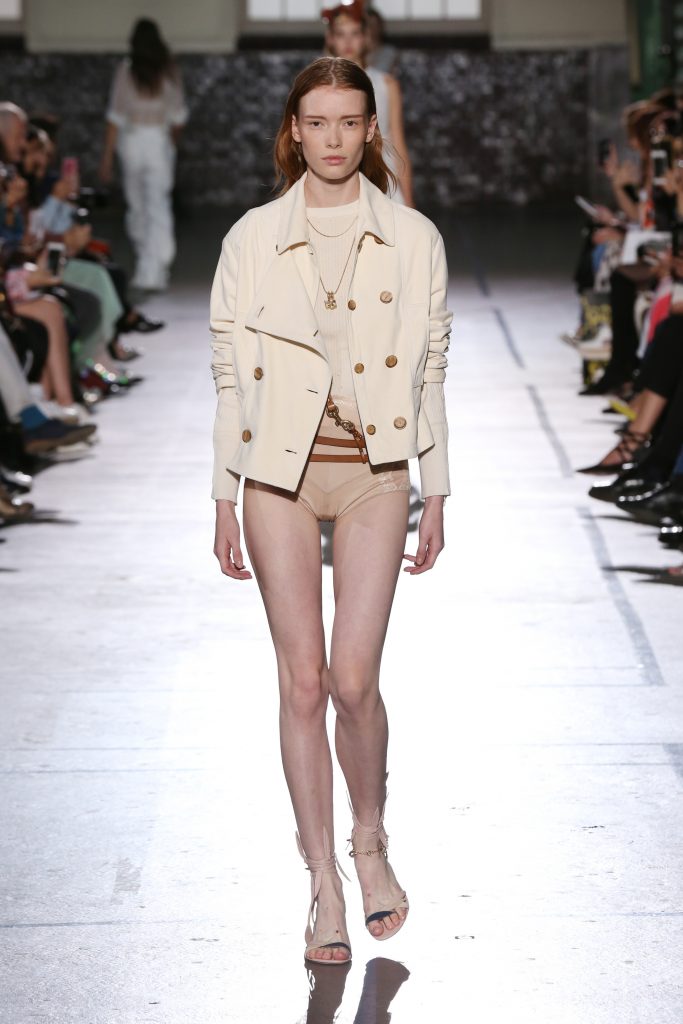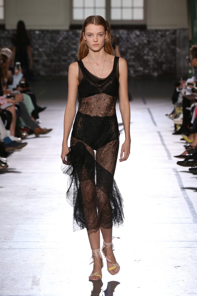 Délicatesse et transparence pour des robes fluides en mousseline. De la lingerie en transparence et de la broderie pour des robes du soir signature maison. Des volants, rubans, ceintures en cuir autour de la taille.