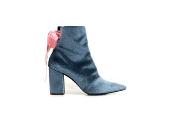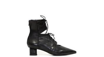La collaboration propose principalement des bottes à talons massifs, avec des boucles en cuir découpées, en détail des œillets métalliques et des rubans de gros grain que l’on retrouve tout au long de la collection ; Mélangeant ainsi le regard audacieux de Robert Clergerie la signature romantique de Self-Portrait.