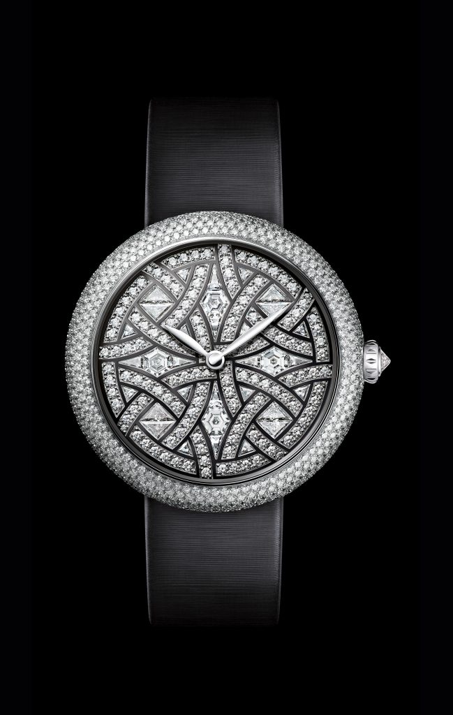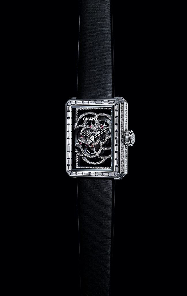 Ouvrant les portes de l’univers intime de Gabrielle Chanel, la collection de montres de joaillerie « Mademoiselle Privé » est conçue comme un écrin dévoilant les symboles que Mademoiselle chérissait et les éléments dont elle aimait s’entourer. Sous les doigts des plus grands artisans émailleurs, graveurs, ciseleurs, sertisseurs, cette collection écrit ainsi une nouvelle page de l’histoire créative de CHANEL et devient le territoire d’expression des savoir-faire d’excellence des Métiers d’Art de l’Horlogerie et de la Haute Joaillerie.