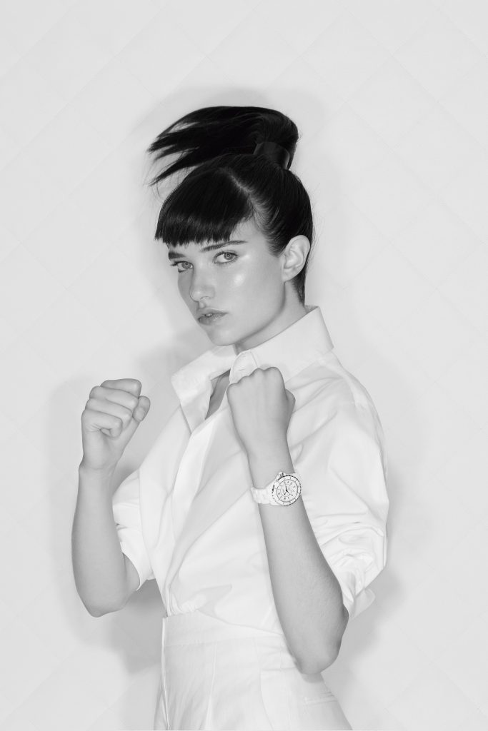 En 2000, année de son lancement, la J12 est la première montre à oser métamorphoser la céramique high-tech en matière précieuse. En noir éclatant d’abord puis, en blanc immaculé en 2003, le chiffre 12 devient ainsi un des numéros fétiches de la Maison.
