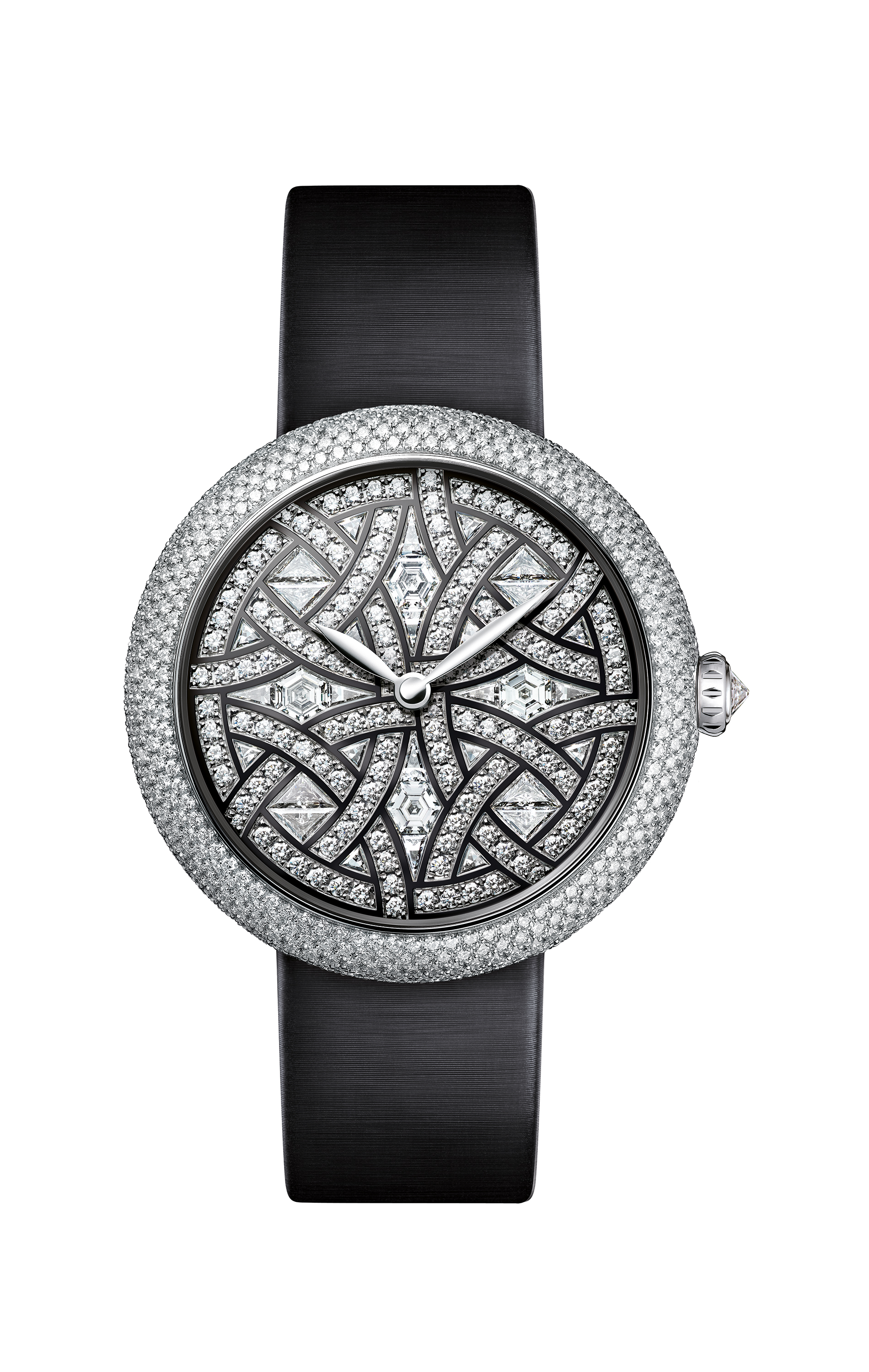 Ouvrant les portes de l’univers intime de Gabrielle Chanel, la collection de montres de joaillerie « Mademoiselle Privé » est conçue comme un écrin dévoilant les symboles que Mademoiselle chérissait et les éléments dont elle aimait s’entourer. Sous les doigts des plus grands artisans émailleurs, graveurs, ciseleurs, sertisseurs, cette collection écrit ainsi une nouvelle page de l’histoire créative de CHANEL et devient le territoire d’expression des savoir-faire d’excellence des Métiers d’Art de l’Horlogerie et de la Haute Joaillerie.