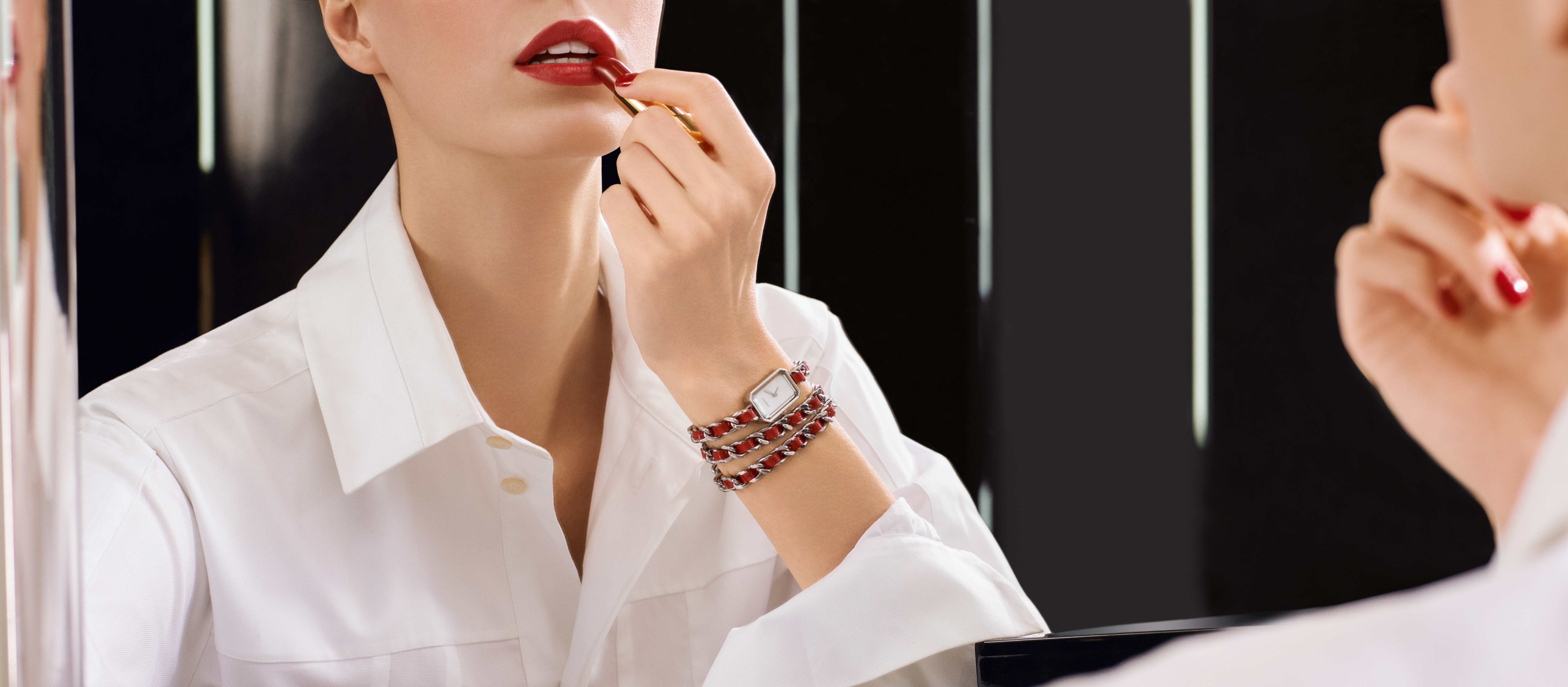 Première montre créée exclusivement pour les femmes par CHANEL en 1987, inspirée de la forme octogonale du bouchon du flacon du N°5 et de celle la place Vendôme, la Première est une icône depuis 30 ans.