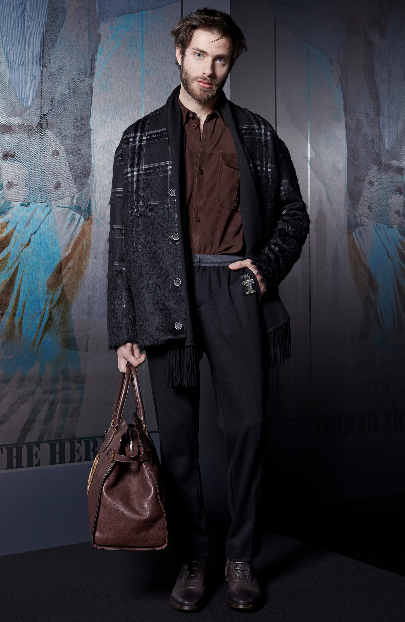 2017-18, Trussardi présente une série de pièces iconiques de la grande tradition de la maison, synthétisées par